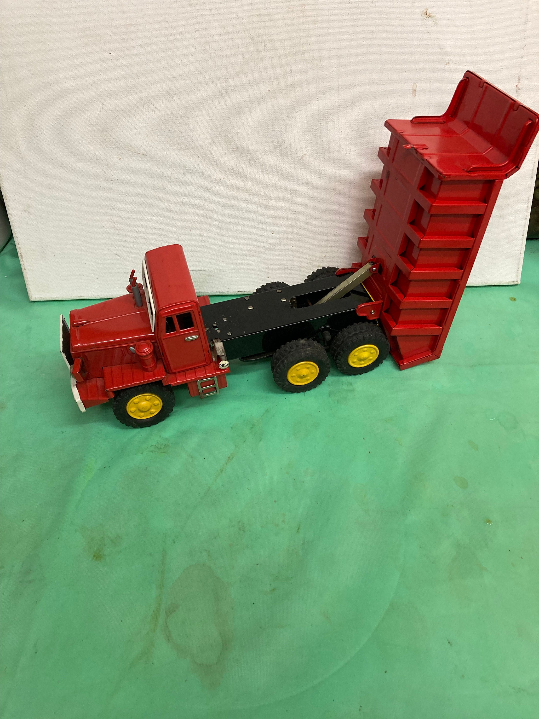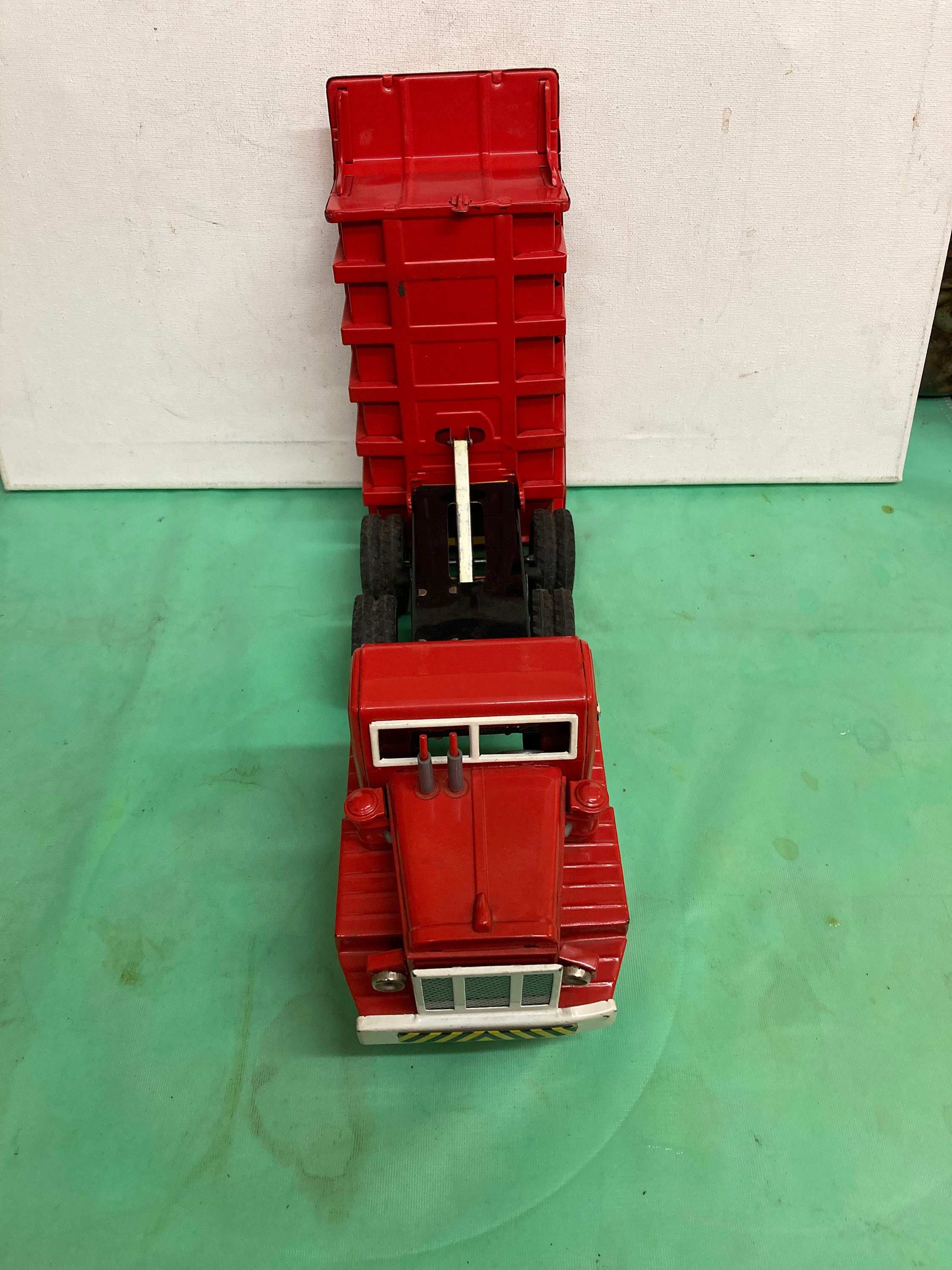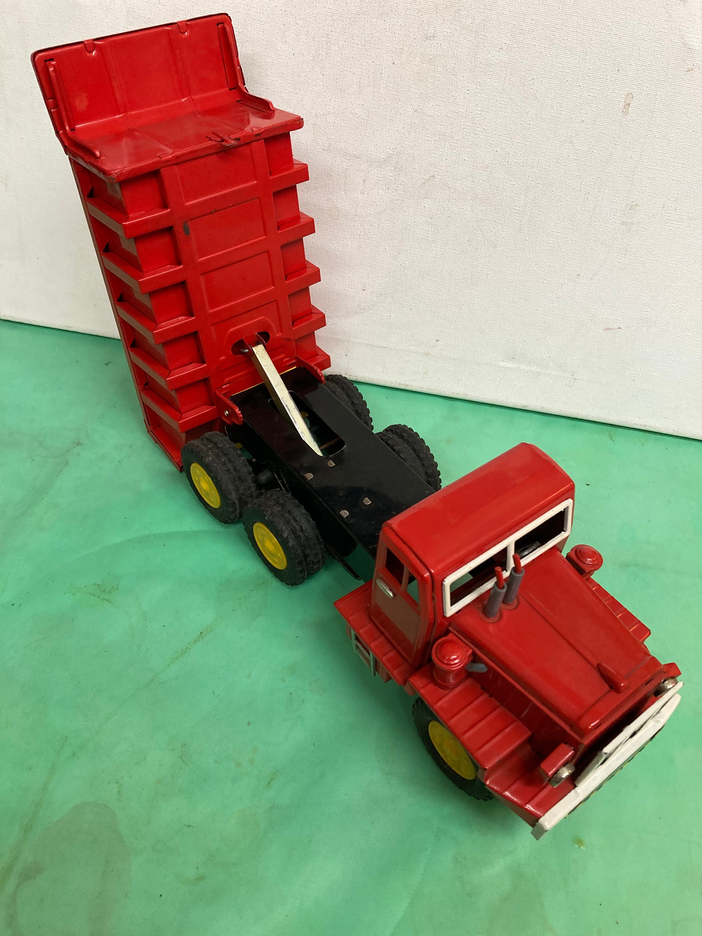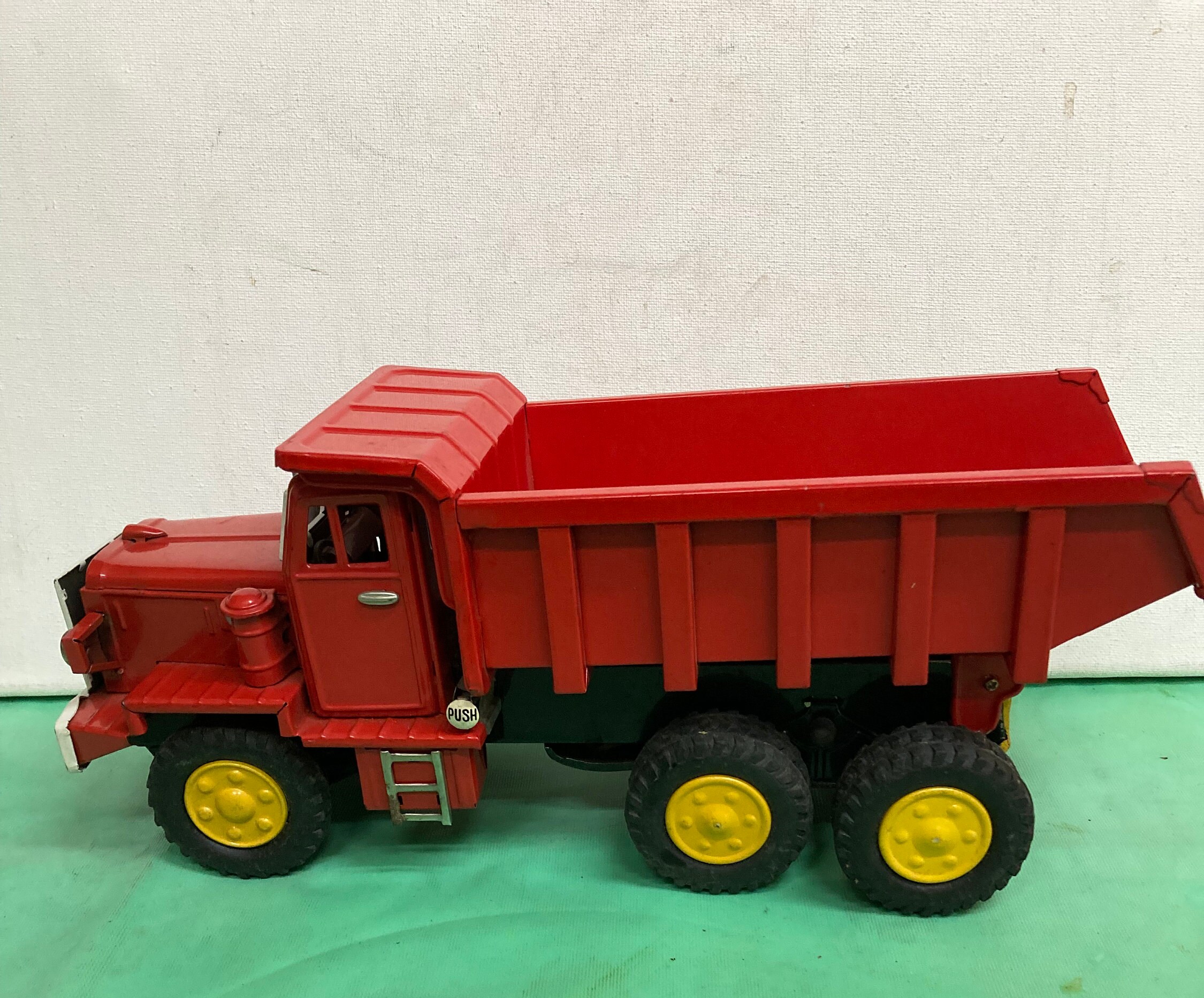Vintage Tin "SSS International" Red Dump Truck S-3840Made In Japan, Appears to be in Good Vintage Condition,Mechanical DumpVintage Toys Red Step side Dumpster Truck, Rare Find12w x 5t x 4d