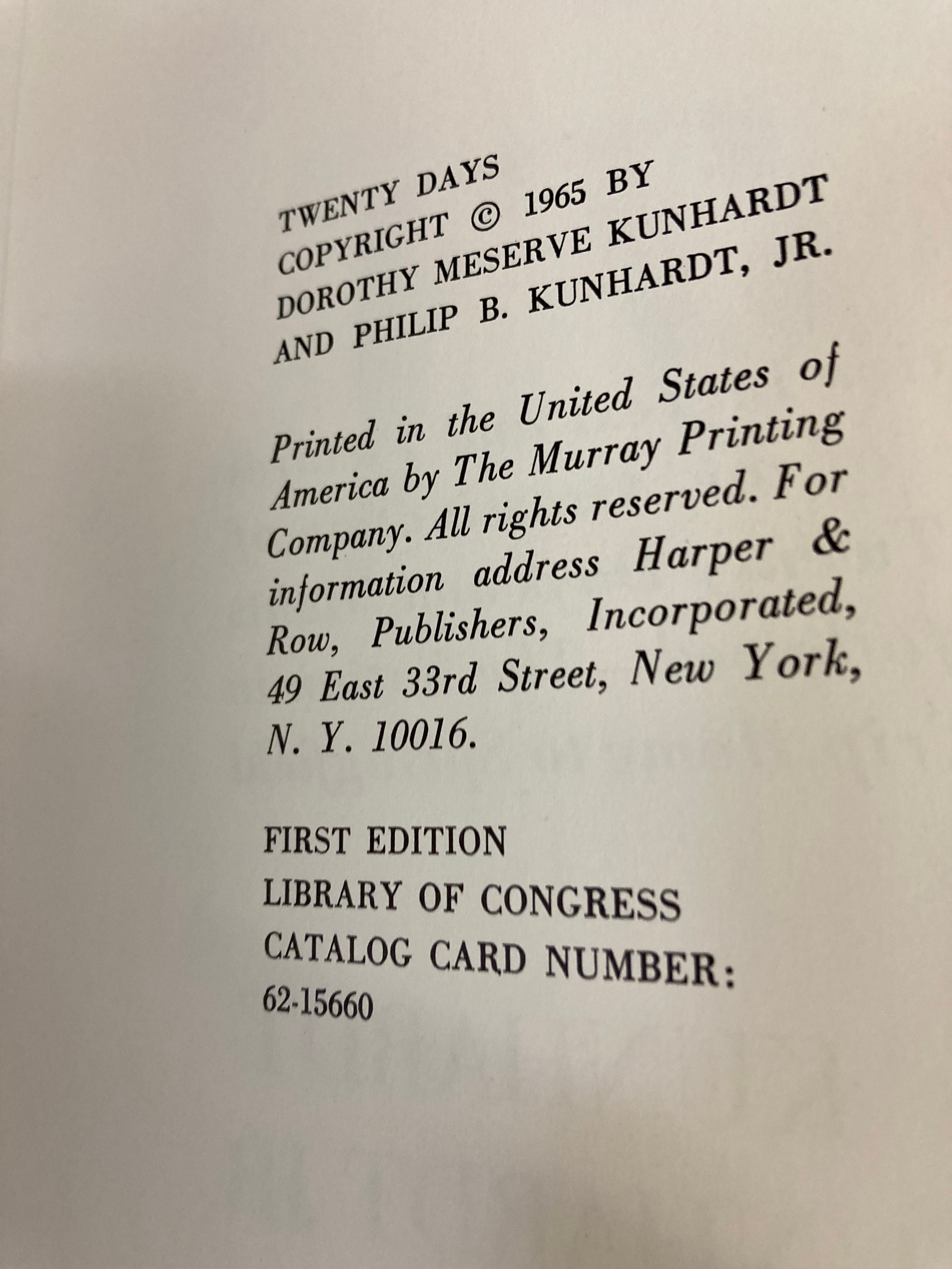 WELCOME!"TWENTY DAYS"by Dorothy Meserve Kunhardt and Philip B, Kunhardt Jr."A NARRATIVE IN TEXT AND PICTURES OF THE ASSASSINATION OF ABRAHAM LINCOLN AND THE TWENTY DAYS AND NIGHTS THAT FOLLOWED - THE NATION IN MOURNING, THE LONG TRIP HOME TO SPRINGFIELD"
