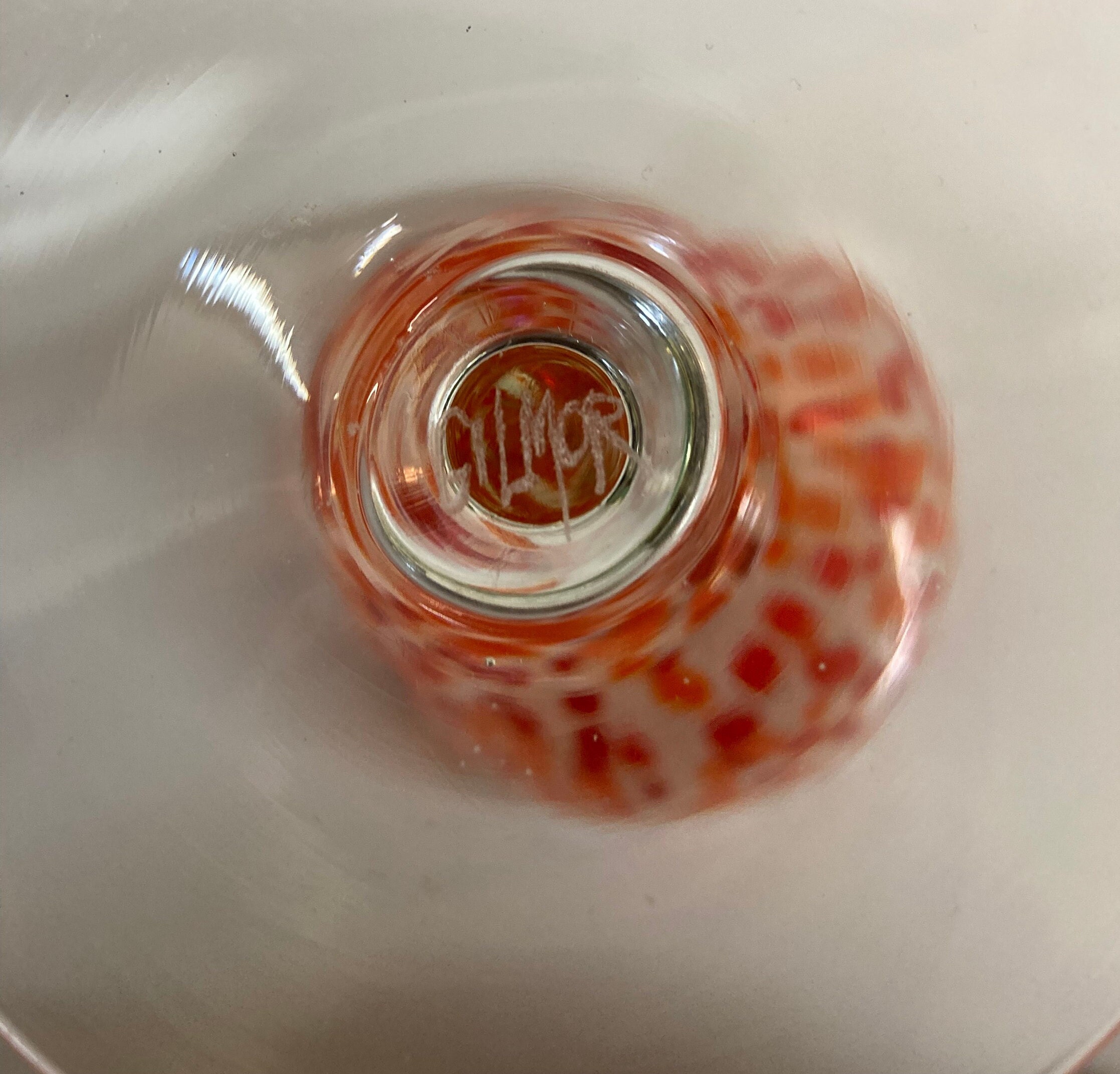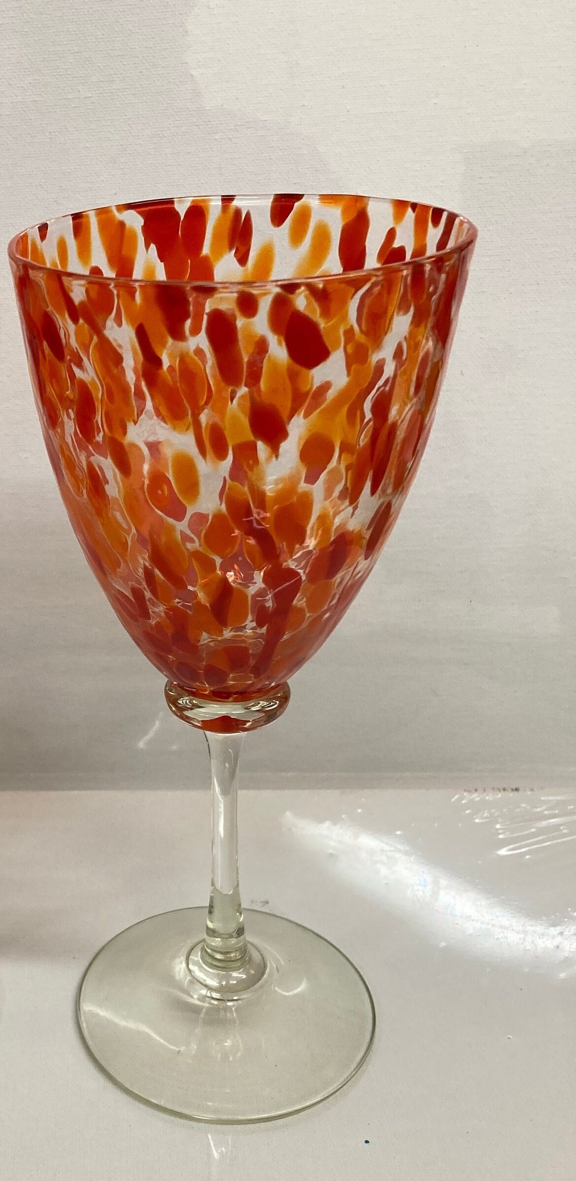 Vintage Handmade Gilmore Wine GlassIn perfect Condition with no damage ,chip or cracks8 3/4 " tall33/4 " wide ,opening3 1/4 " BaseHandmade