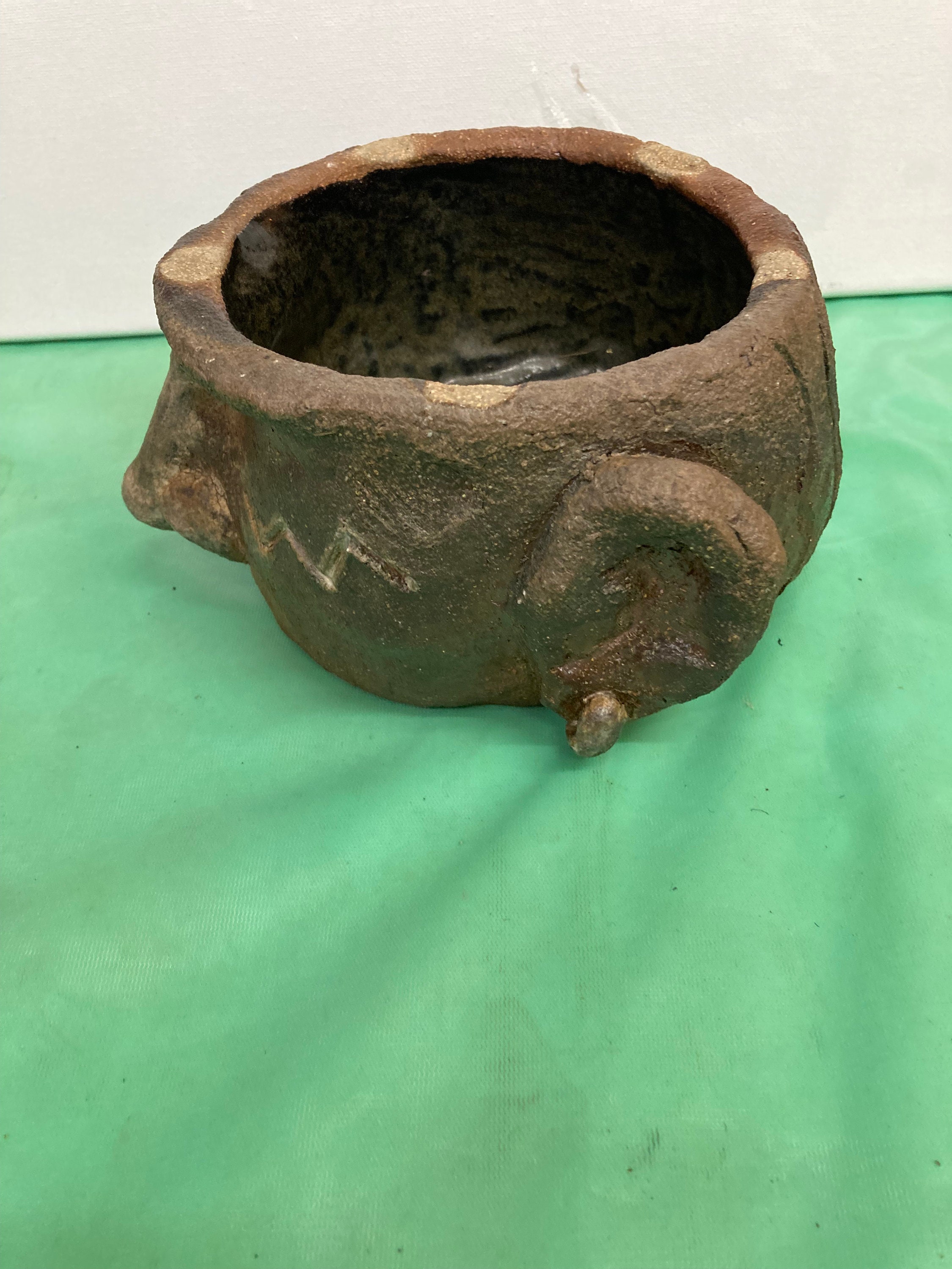 Handmade Bowl with Facial Impression .Made of Stone