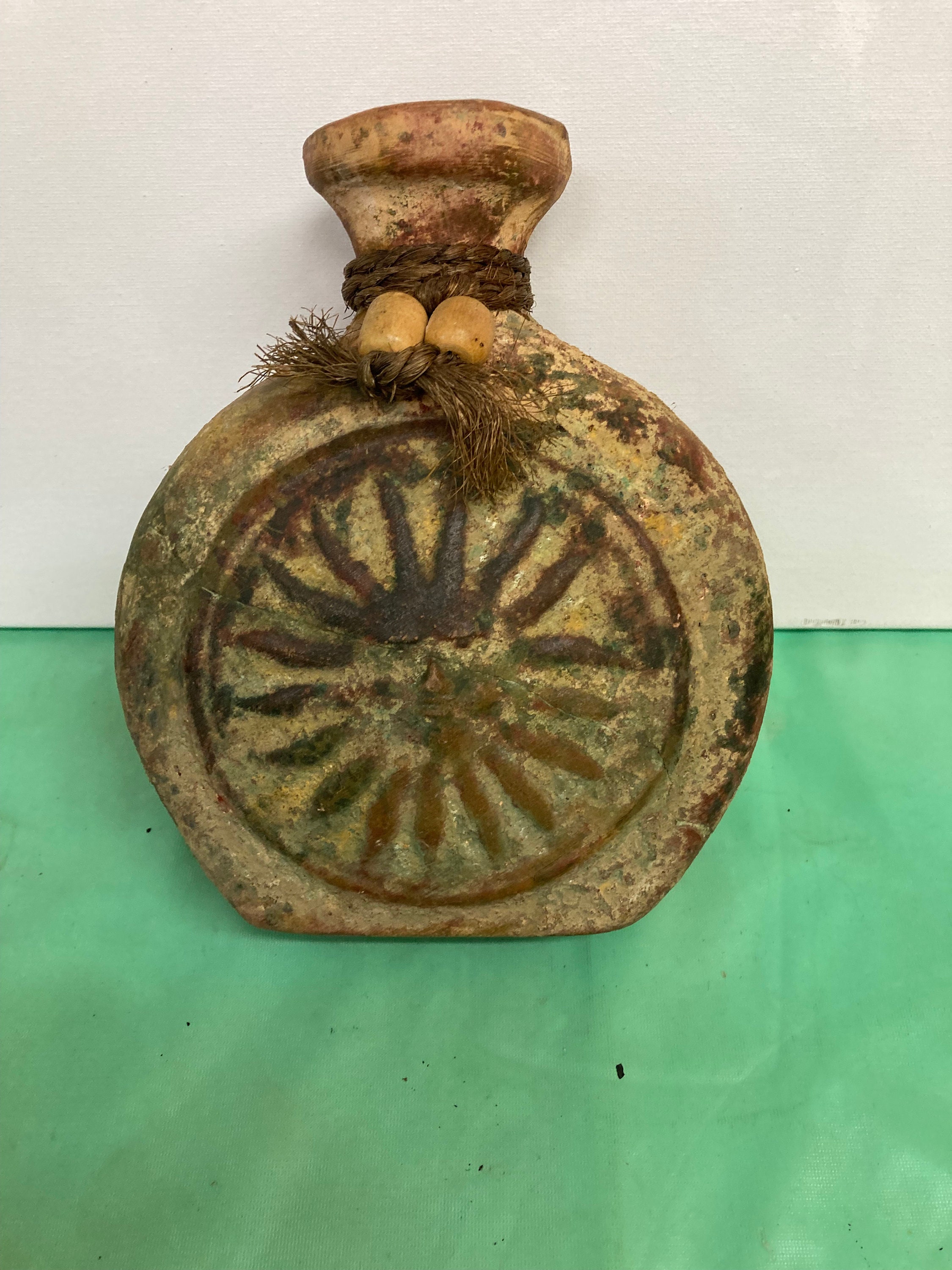Handmade Vase with Impression of Sun ,Made of Clay