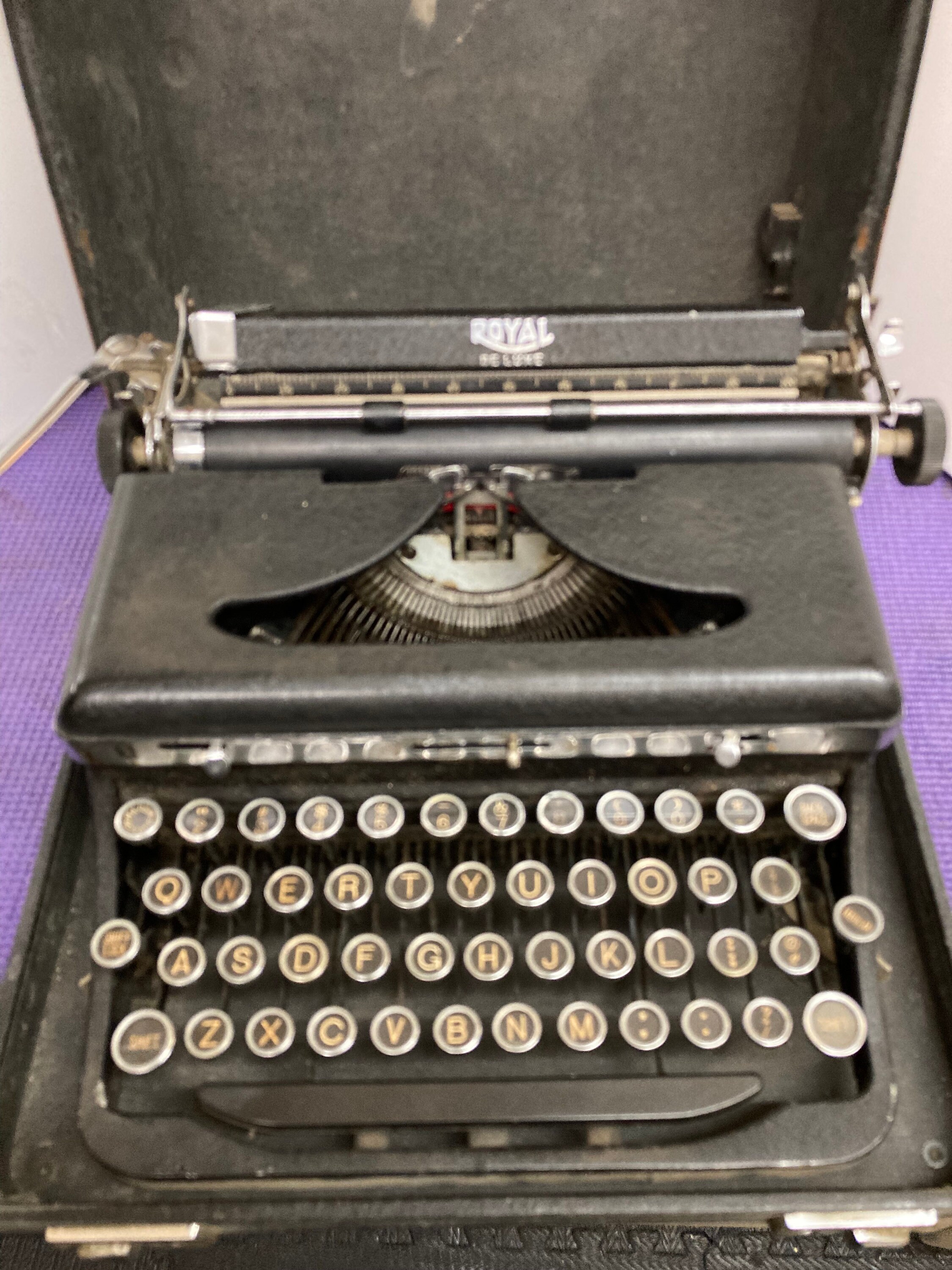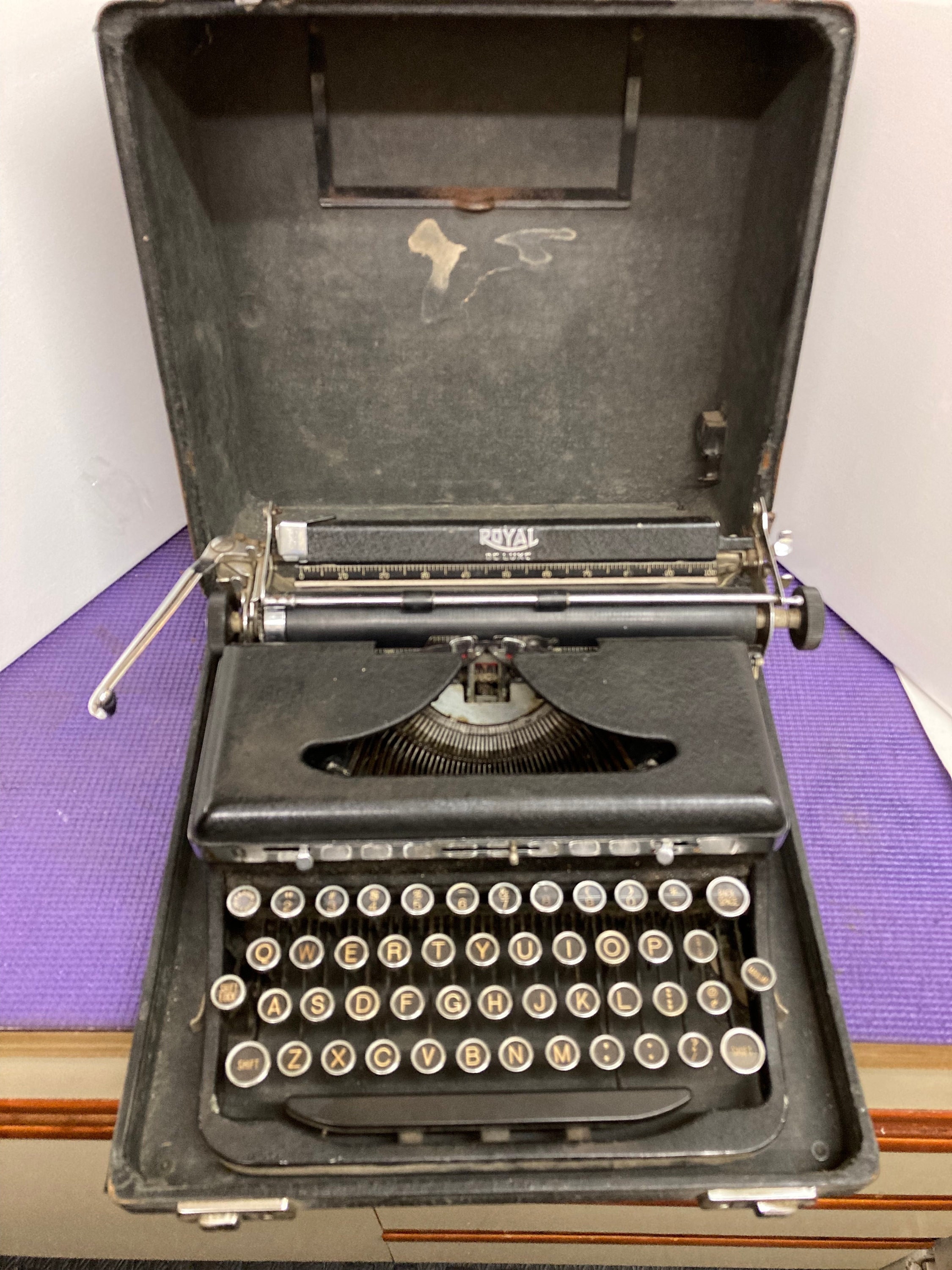 This is a very nice 30s Royal Deluxe Touch Control manual typewriter in sweet vintage condition with original Case.