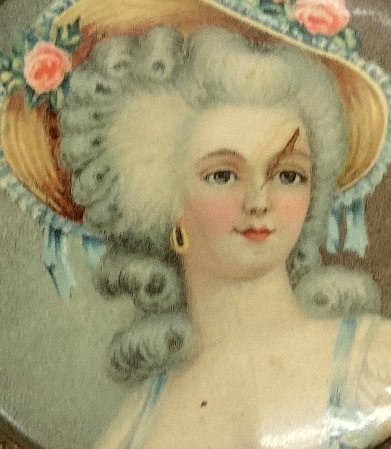 Item : Antique French Hand Mirror W/ Hand Painted Miniature