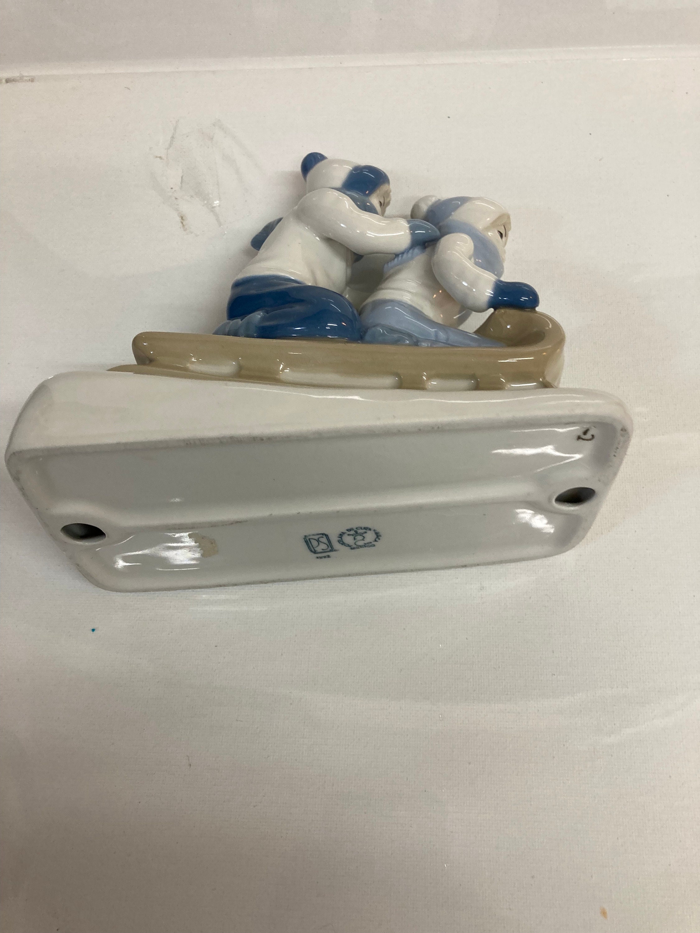Large Figurine Children Sliding On A Toboggan Mexico Porcelana De Cuernavaca in Excellent Condition