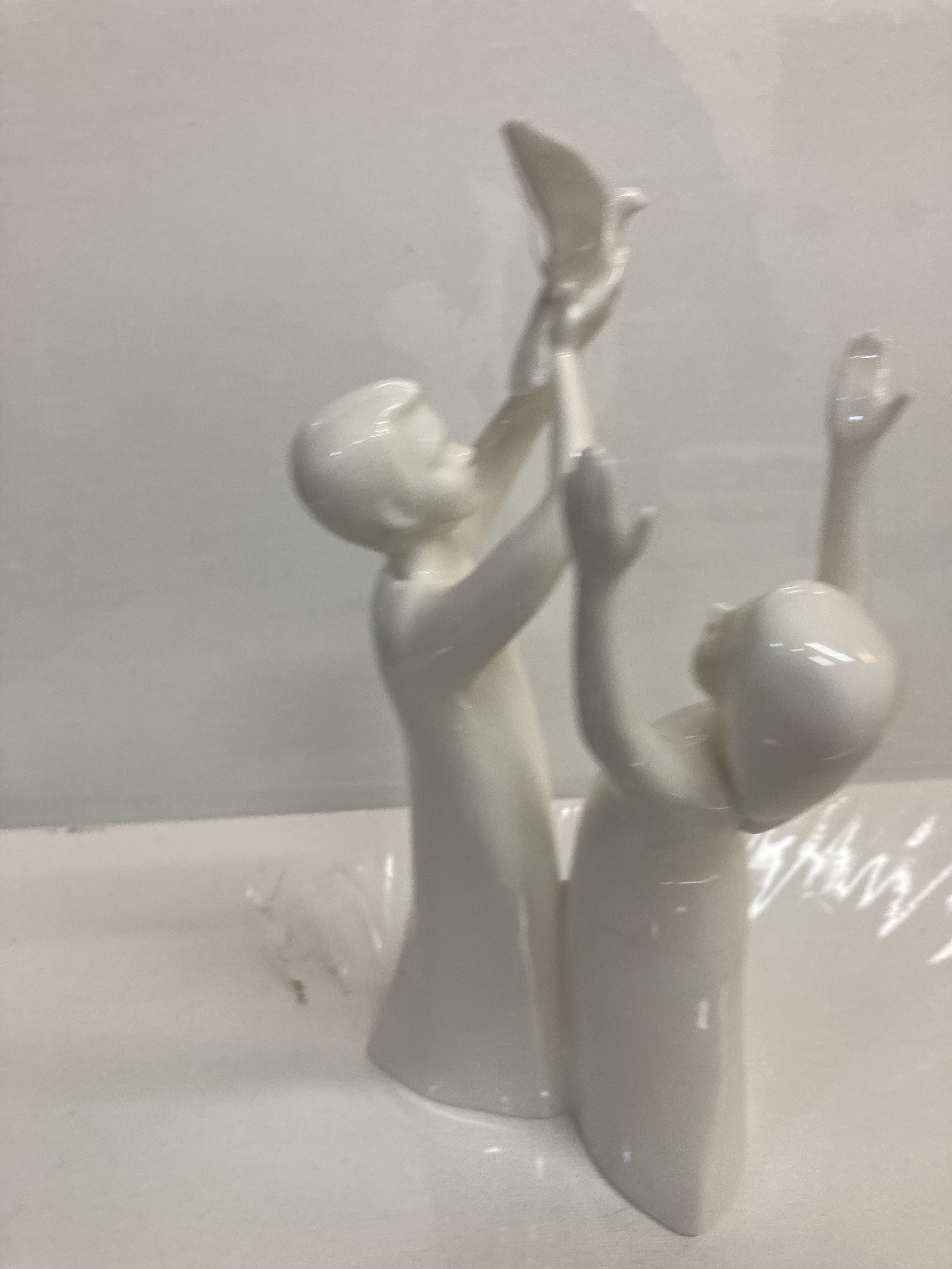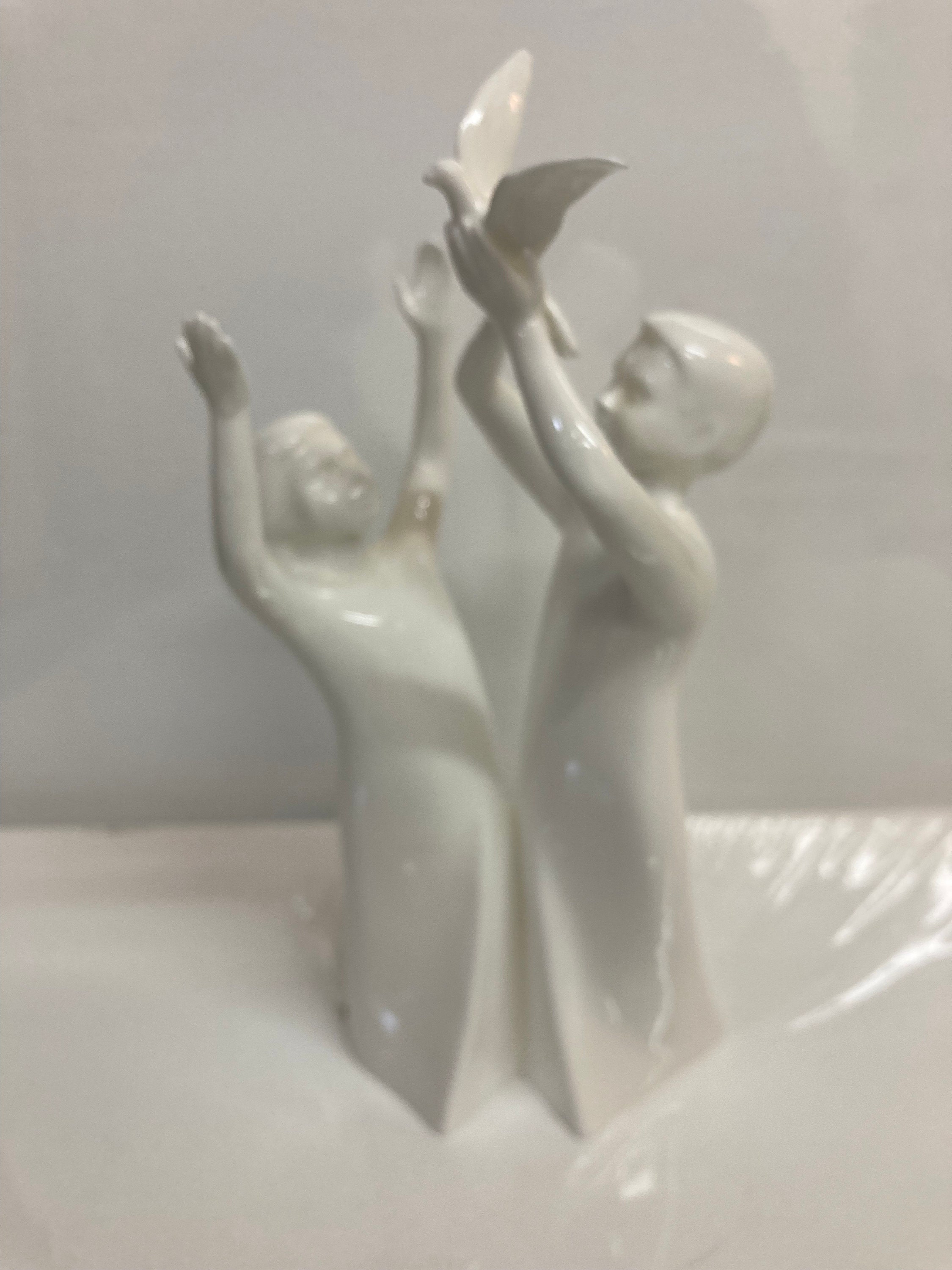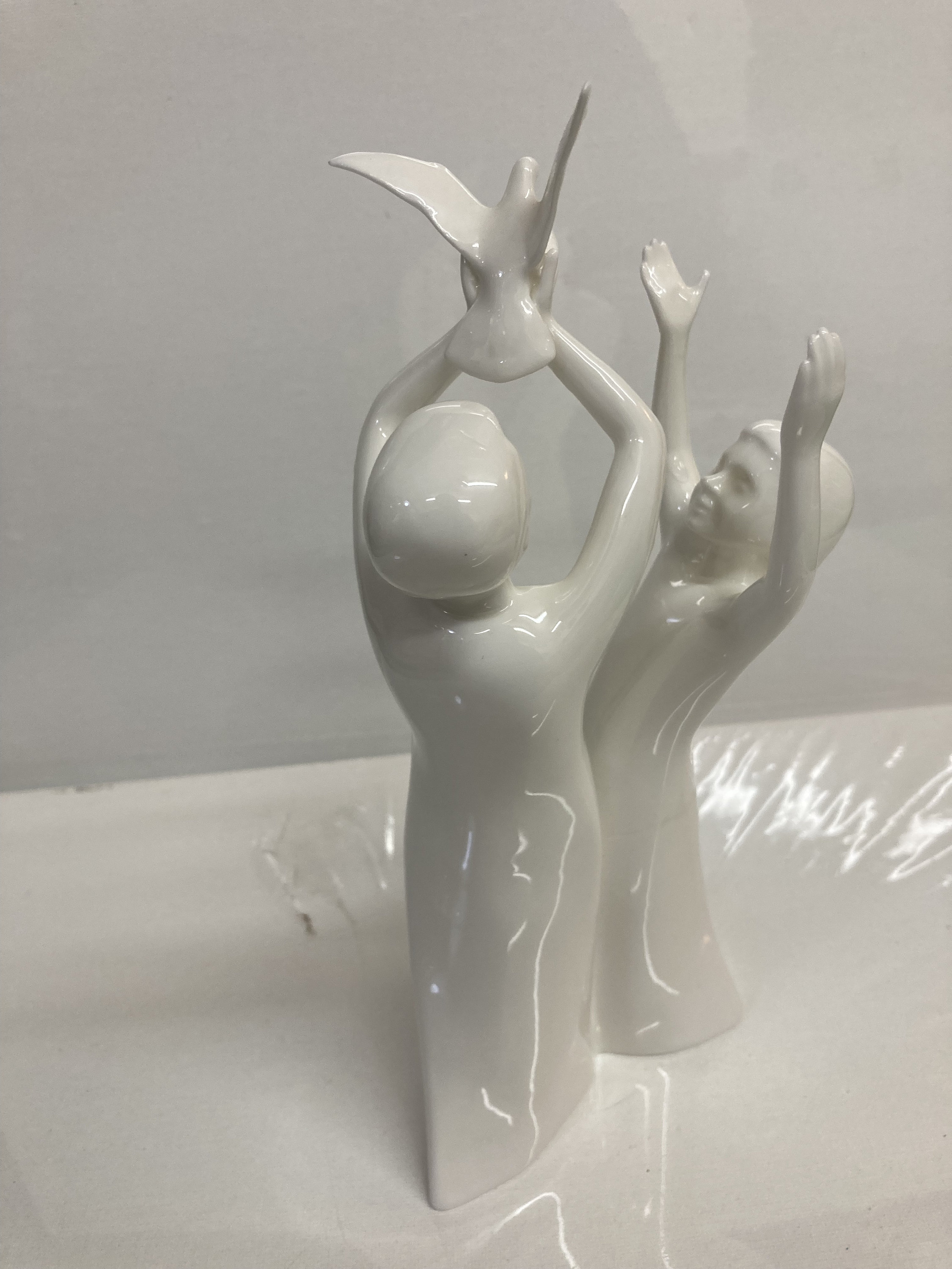 Royal Dalton Peace Figurine , Girl and Boy with Dove In Glazed Bone China