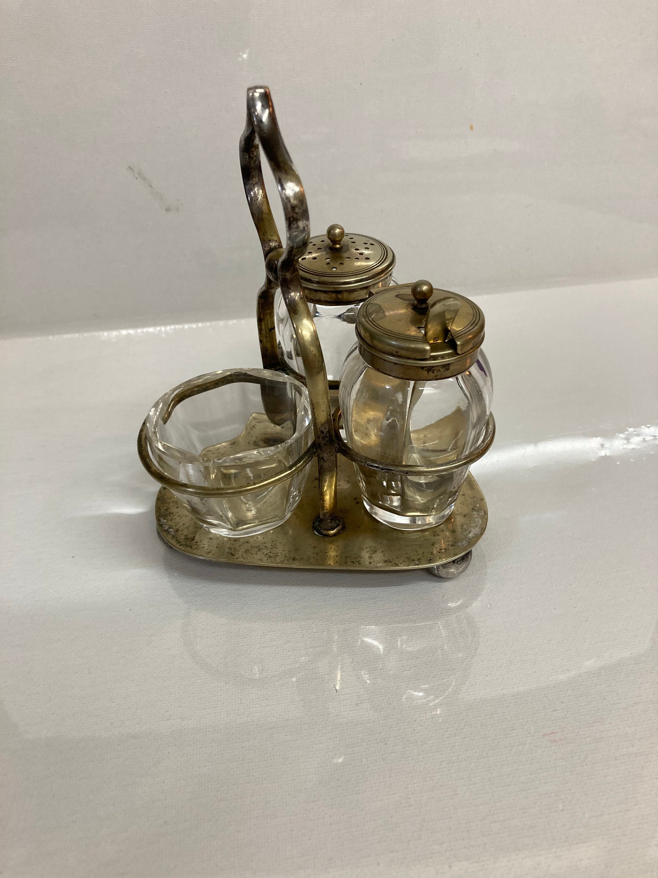 Set of 3 Condiments in glass and plated pieces