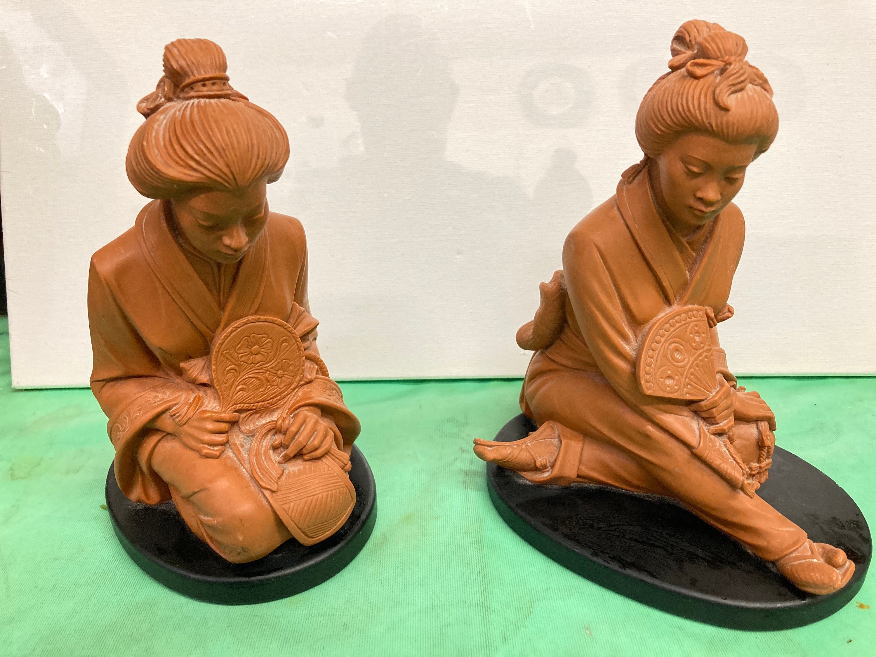 Great pair of vintage Chinese terracotta sculptures of Chinese women.