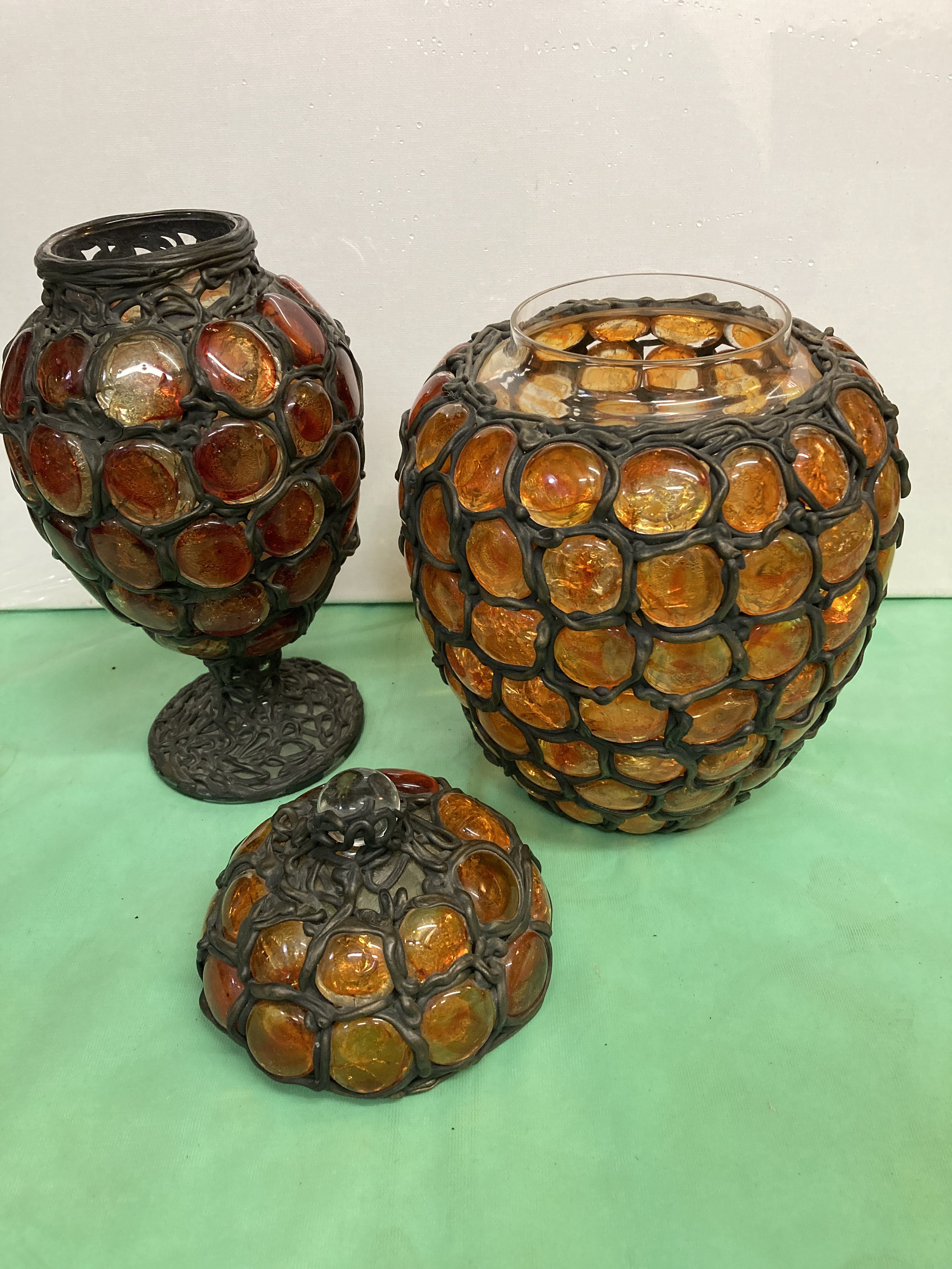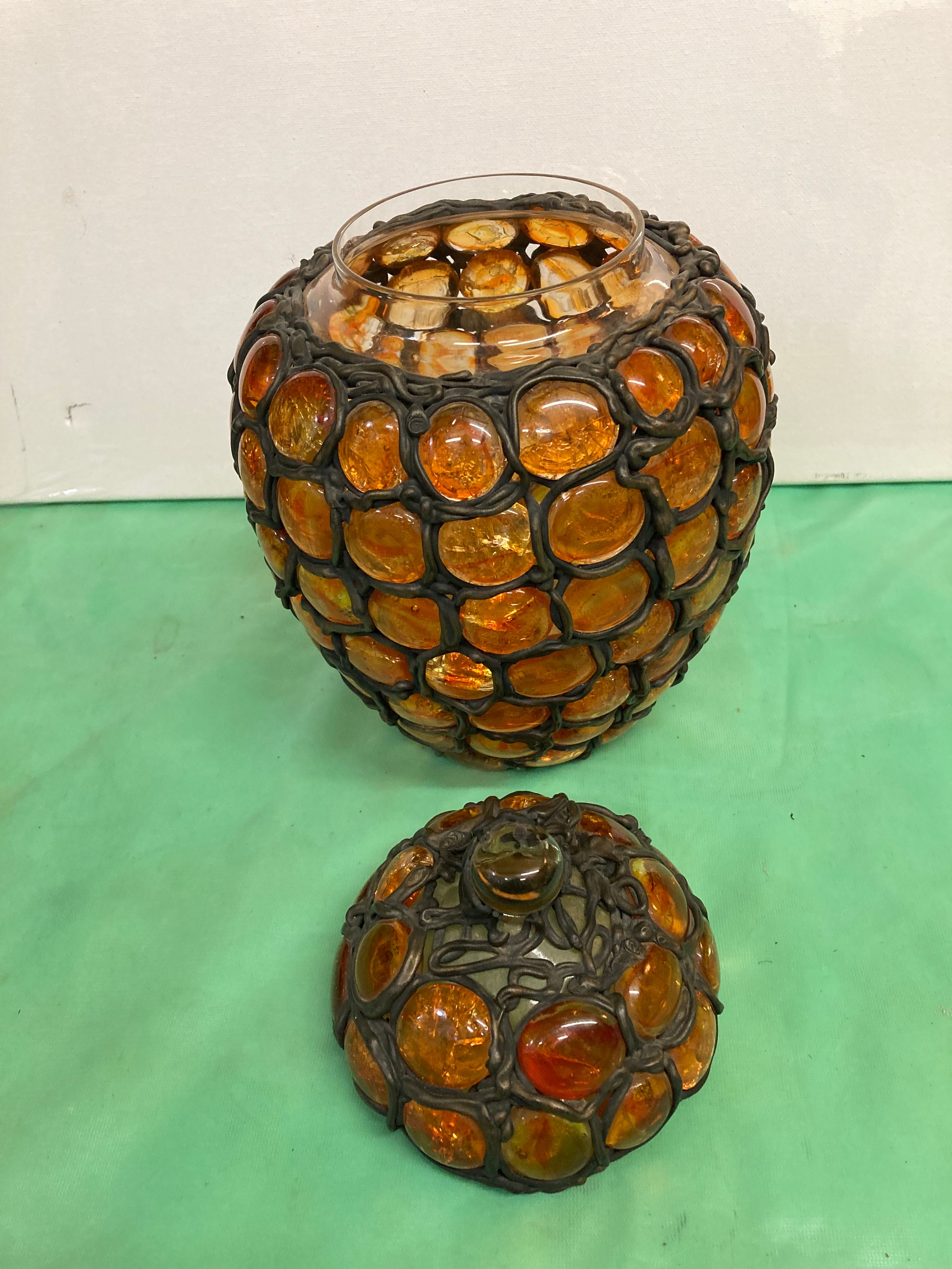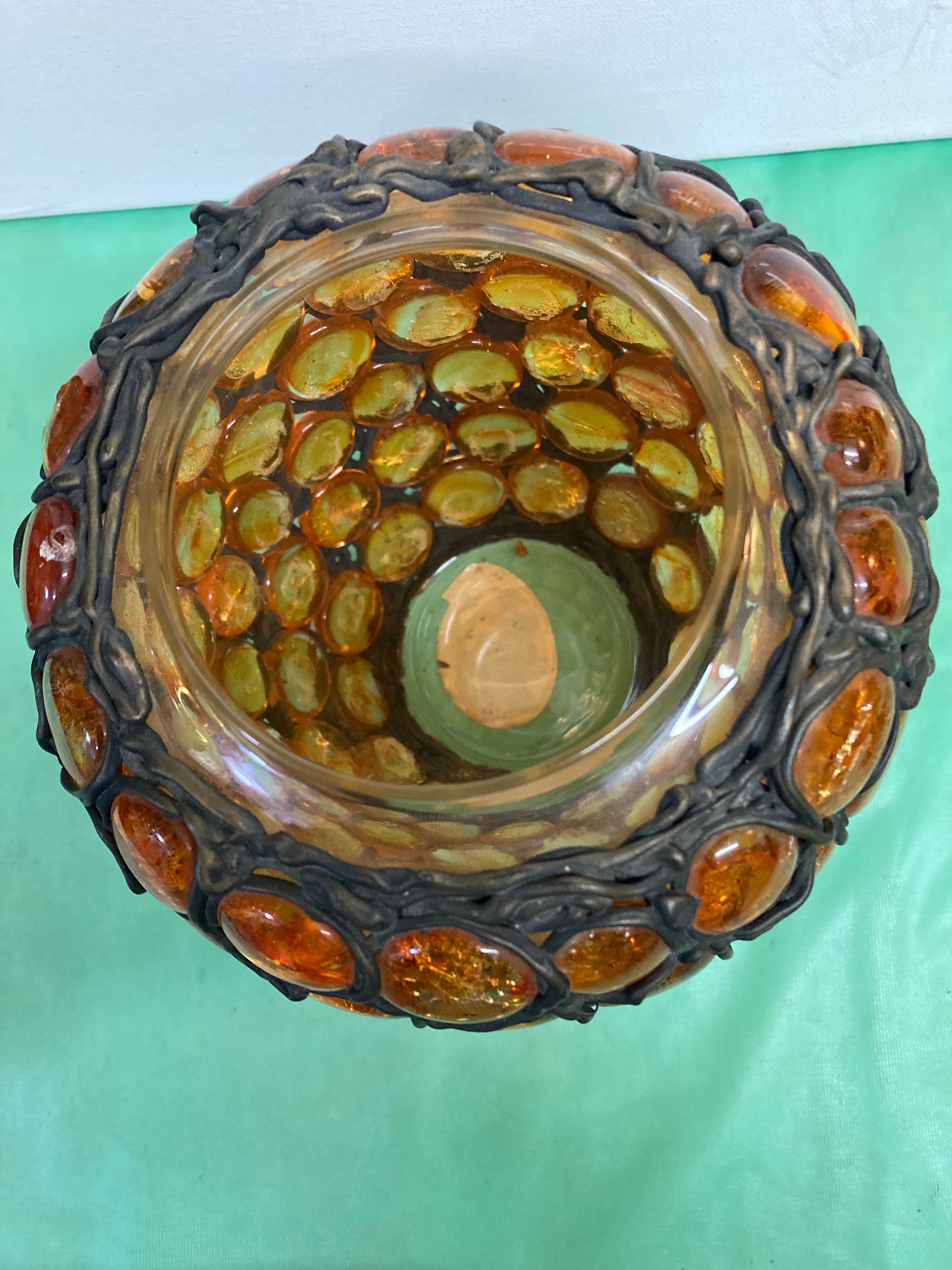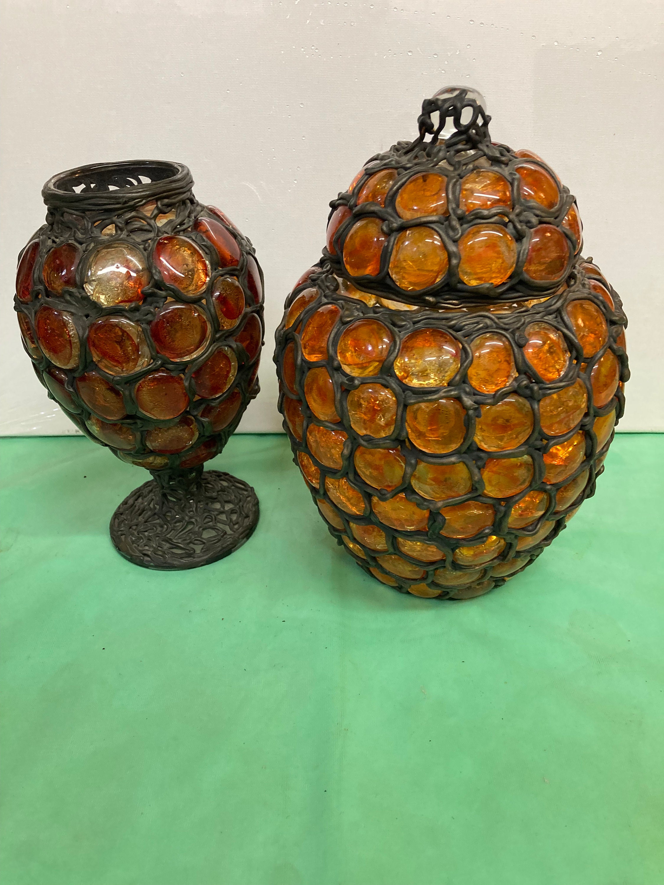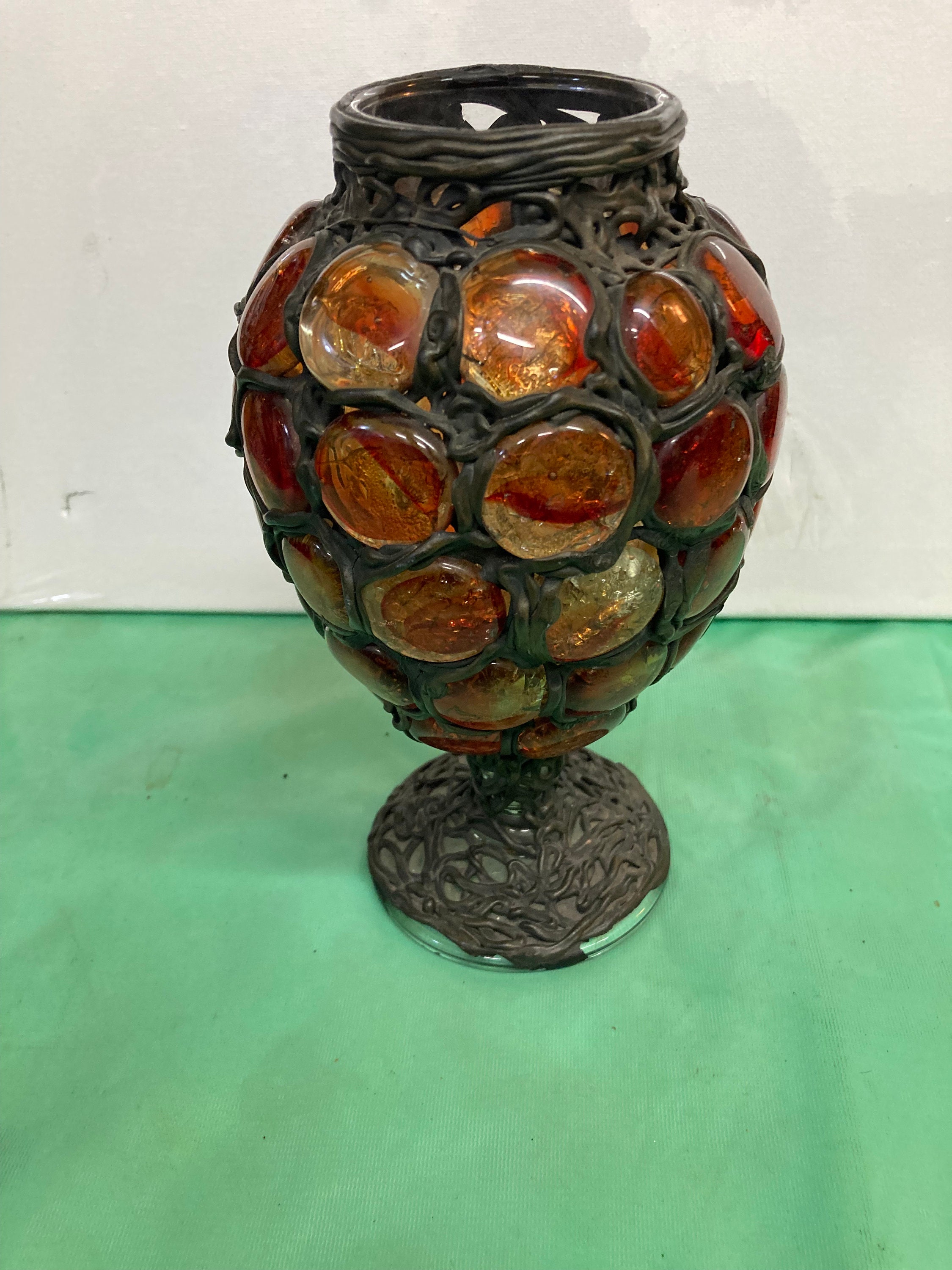 Two Bertino's Originals Handcrafted Vases . Glass and Metal