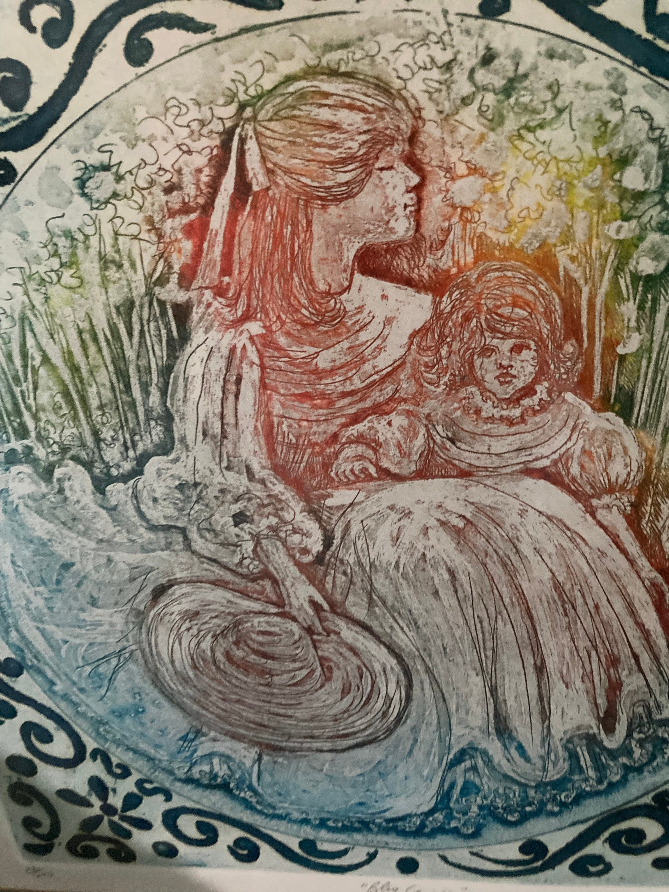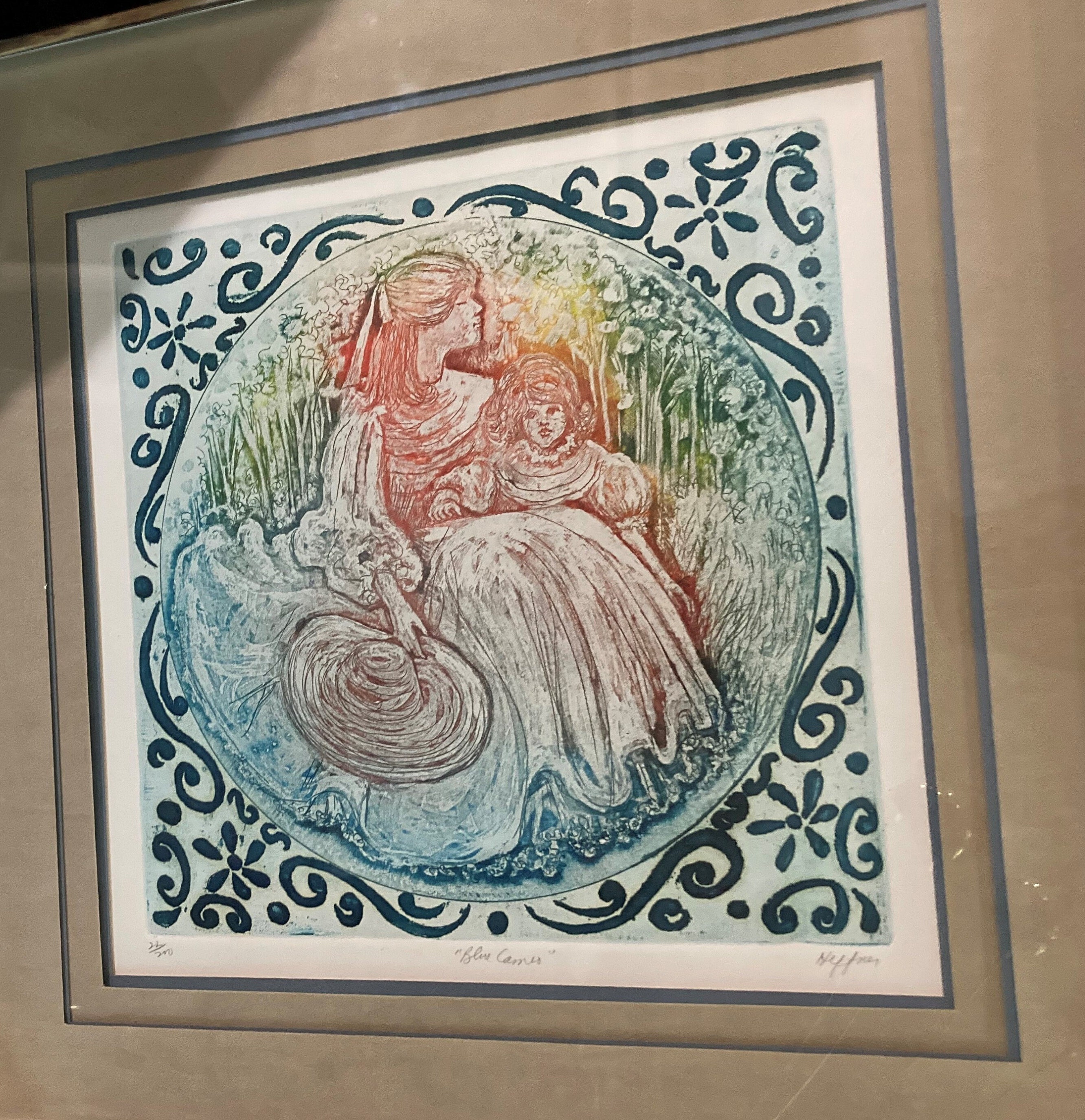 Signed and Numbered Blue Cameos Drawing by HeffnerScene of Sisters In a Field of FlowersMeasurements:Not Framed 13 " x 13 " LimitedSigned by Artist : HeffnerName : Blue CameoNumber:22/200