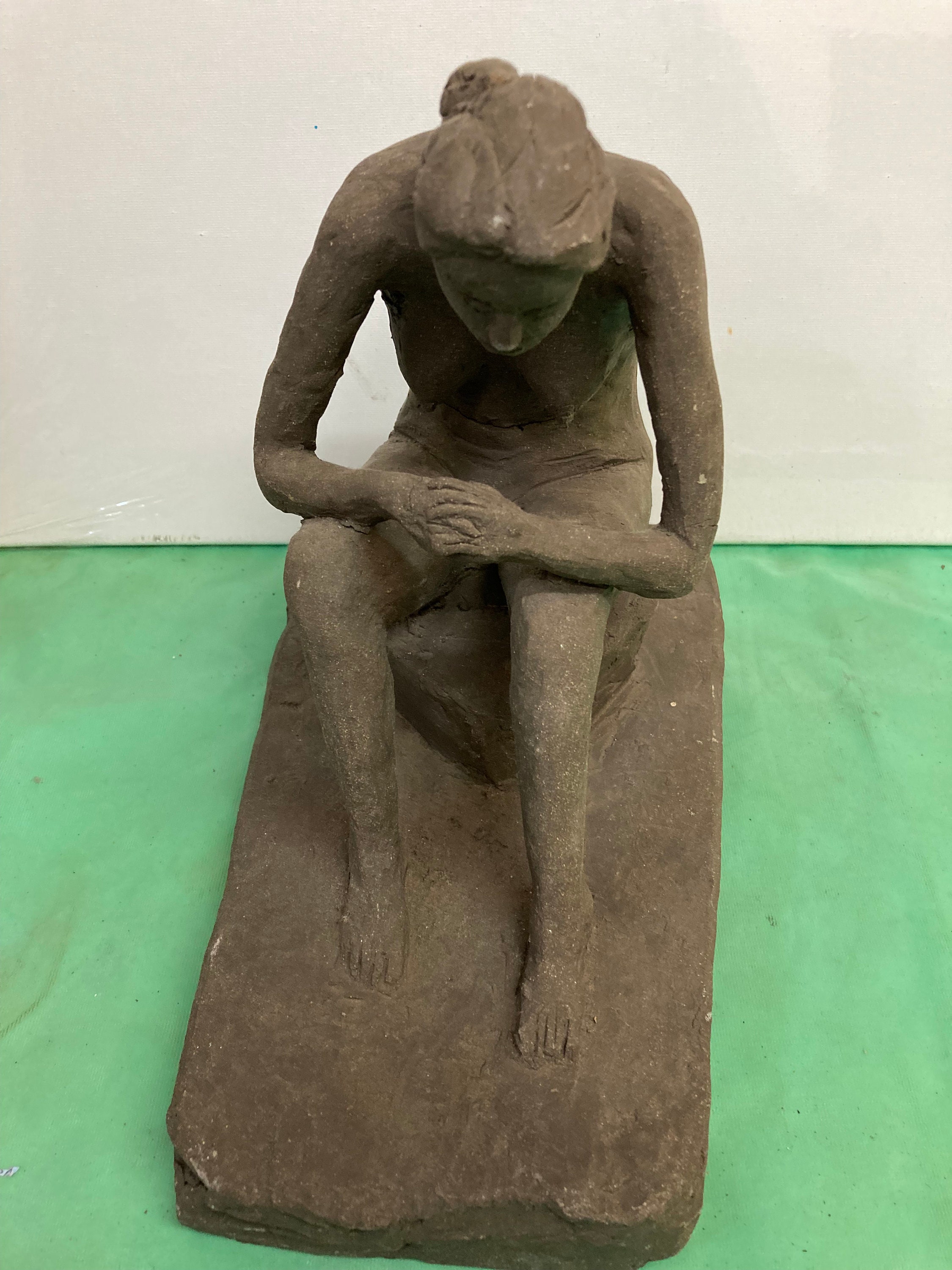 Vintage Sandstone Staue of A Woman9.5 ' Tall,6.5 " wide,10 " deep, weights 10 lbsHandmadeSigned , Initials, E.B.No Flaws, Damages,Chips or CracksREDUCED $50 plus additional 10 %