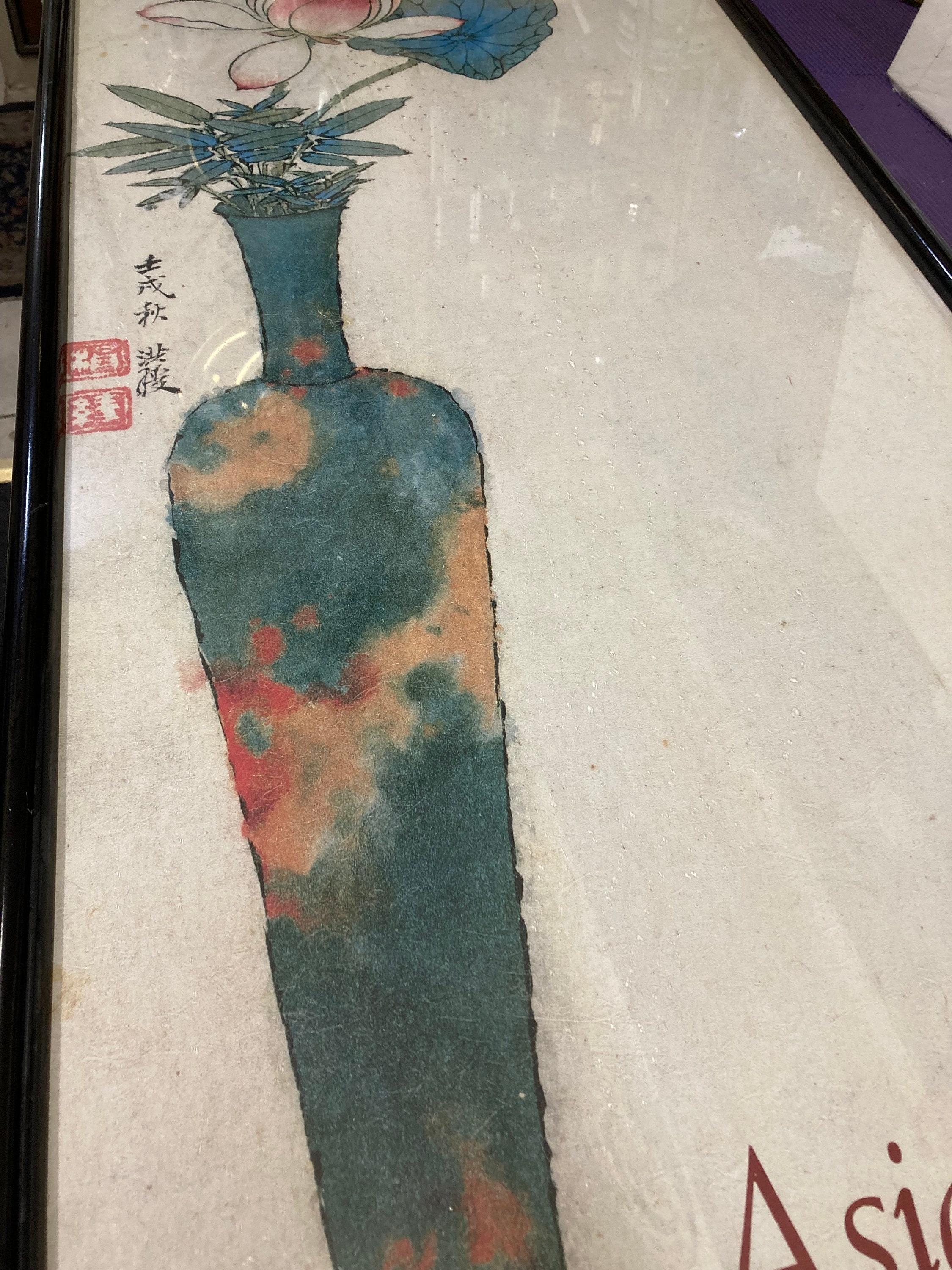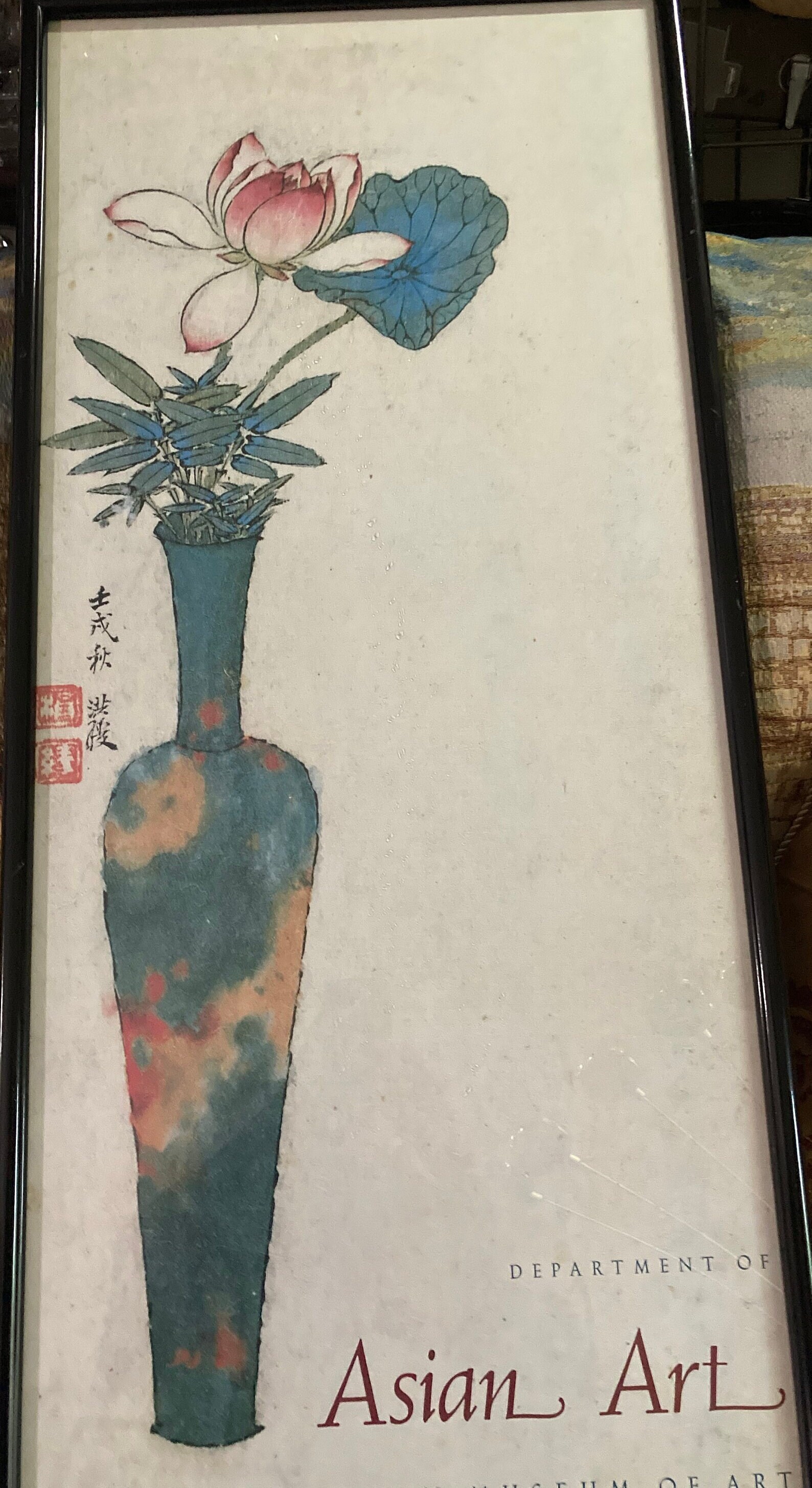 Asian Art, 1986 Musuem Of Art PosterLotus in Bronze Vase print Perfect ConditionNo DamagesNicely Framed.