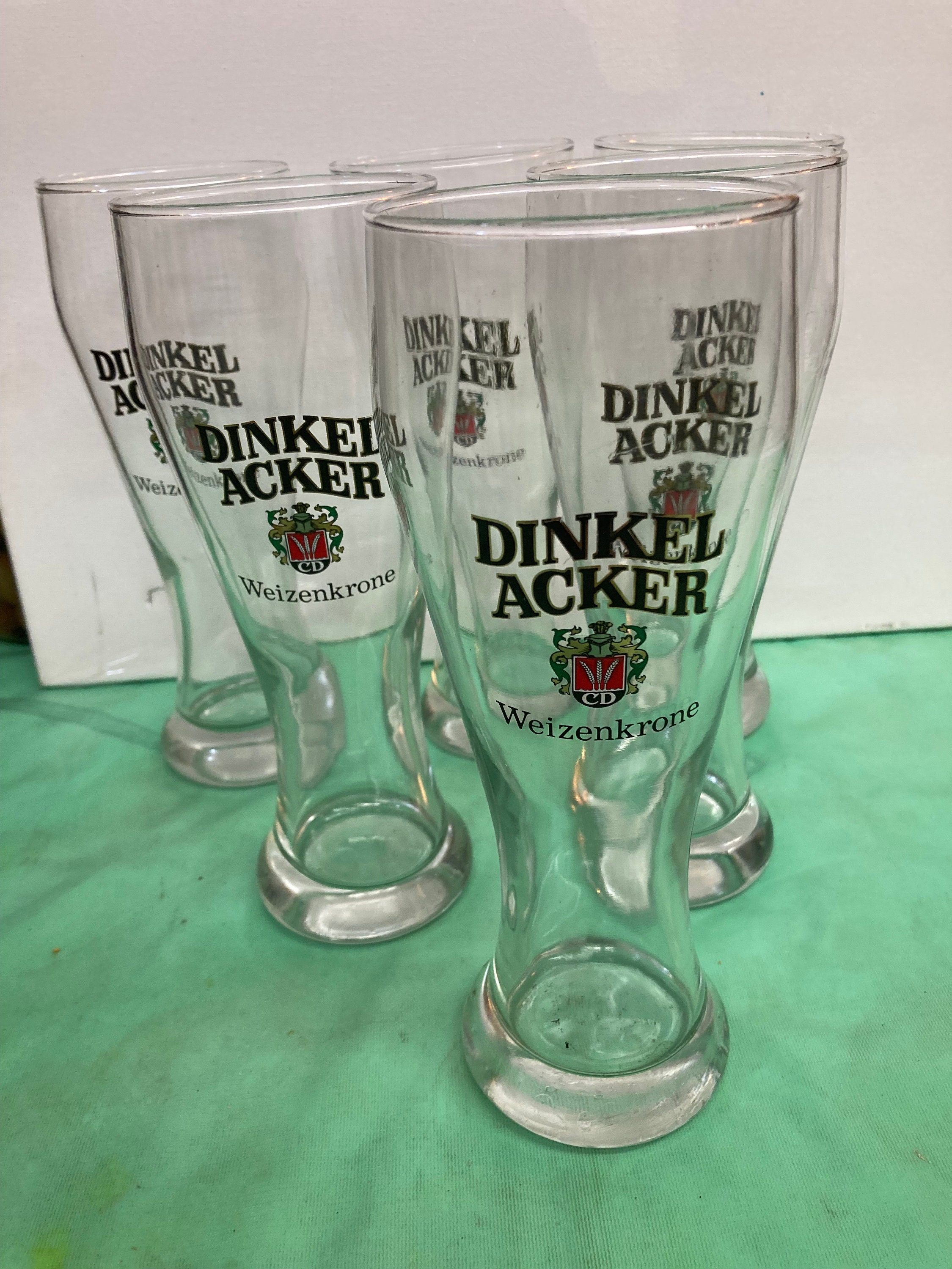 Dinkel Acker Pilsner Glass 8" Tall 0.3 Liter German BeerVintage 9 " tall.31 Litter Capacity Perfect condition ,like newNo damges, cracks or chips