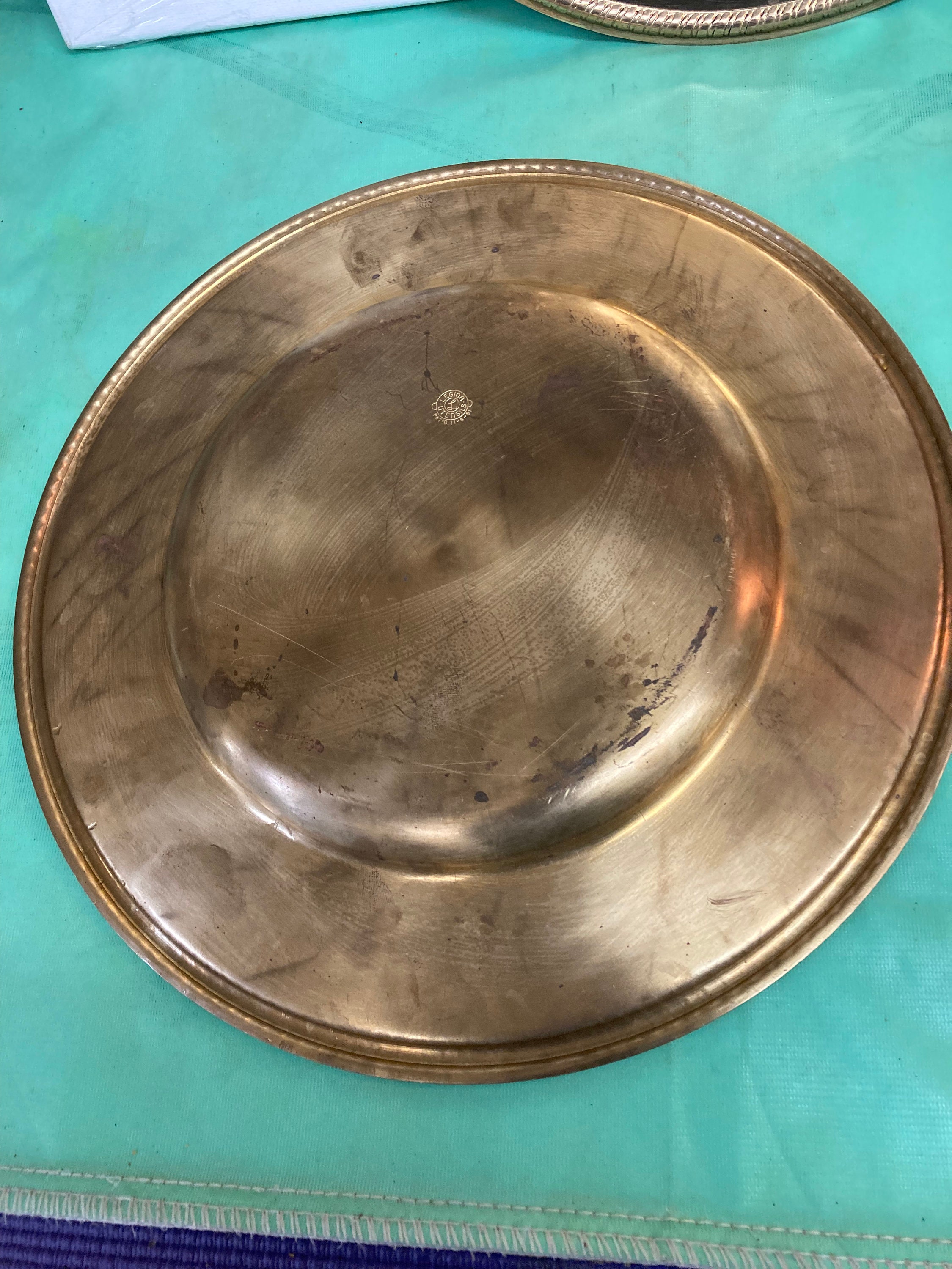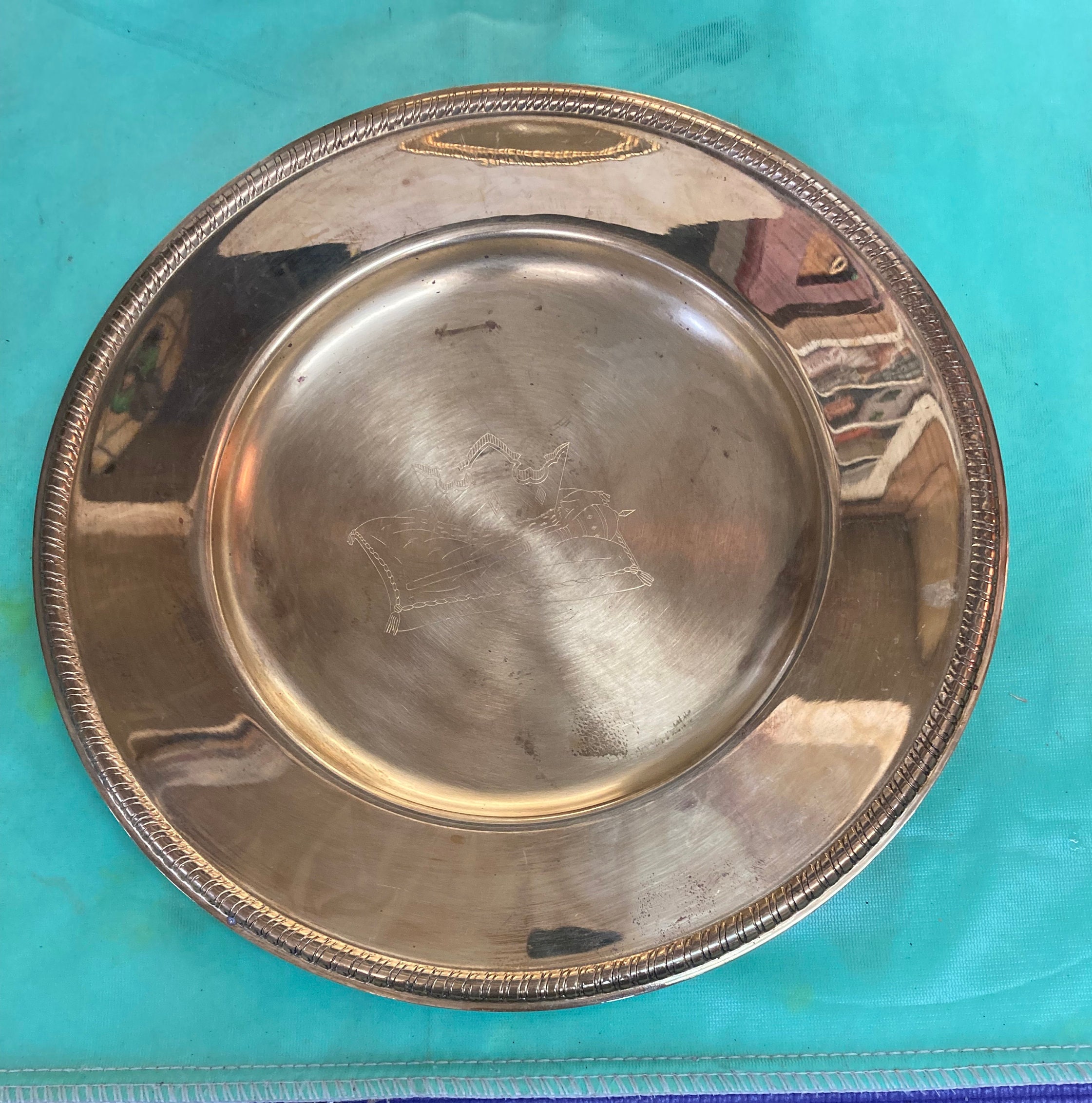Two Vintage 1951 LEGION UTENSILS 11”Heavy Stainless Steel Round TrayPAT.D 11-6-51 SIZE": 11"HEAVY : 1 3/4 lbCondition : UsedWear and Tear CondotionPlease see Photos