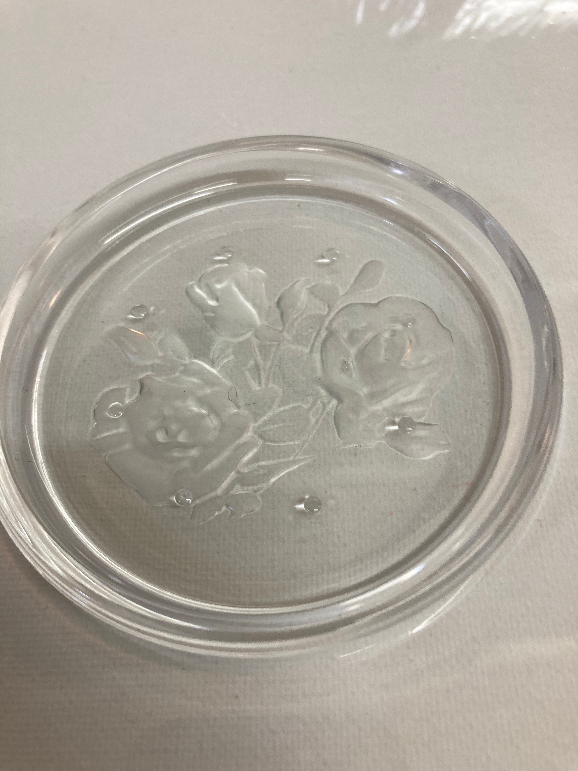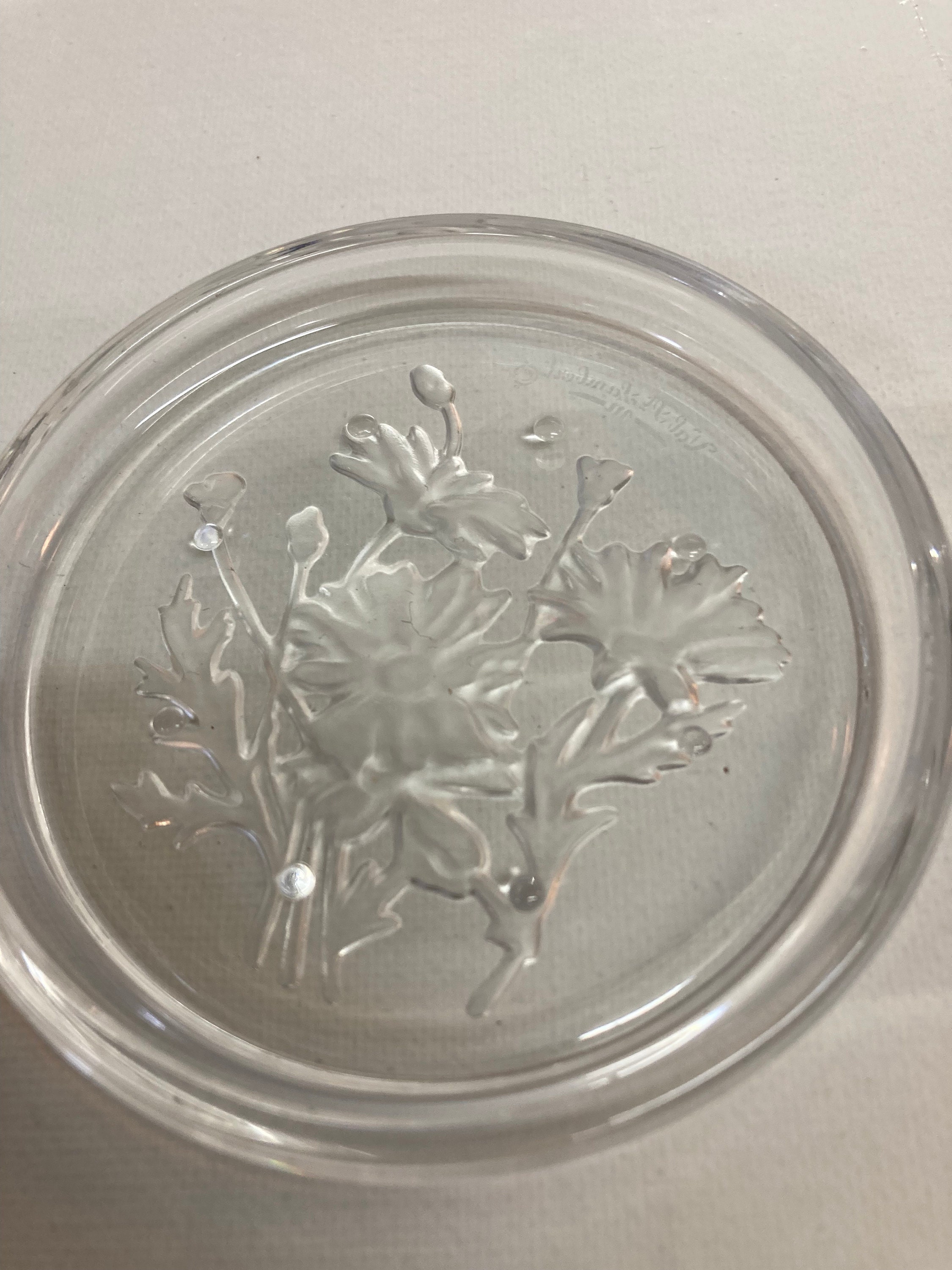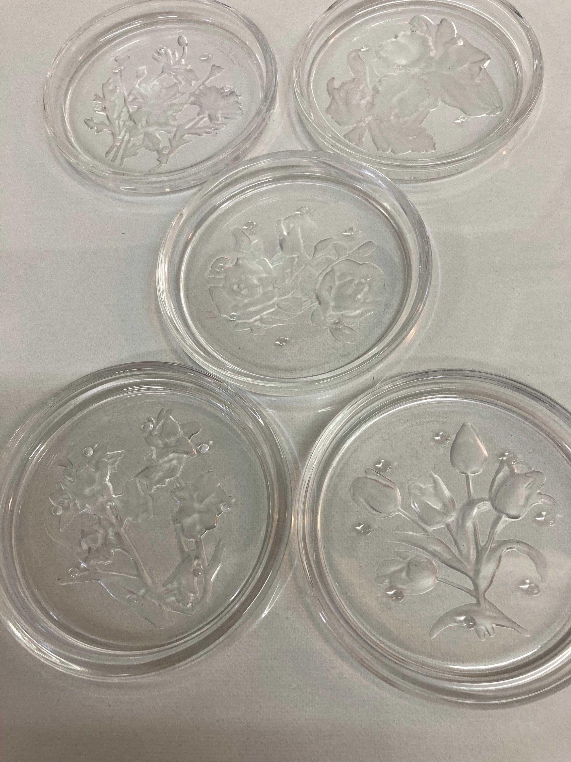 5 elegants coasters of the Val-Saint-Lambert crystal shop on the theme of flowers,