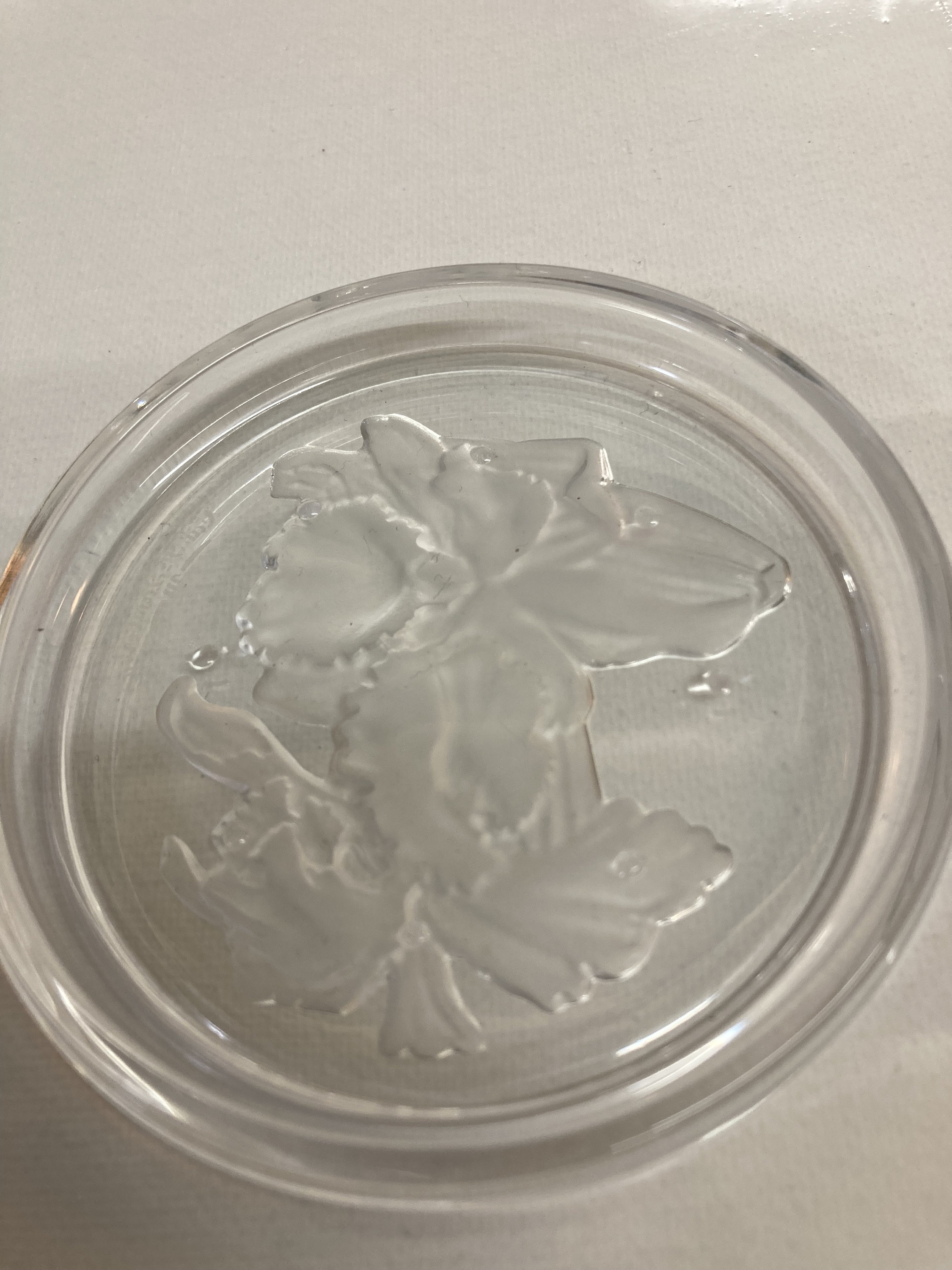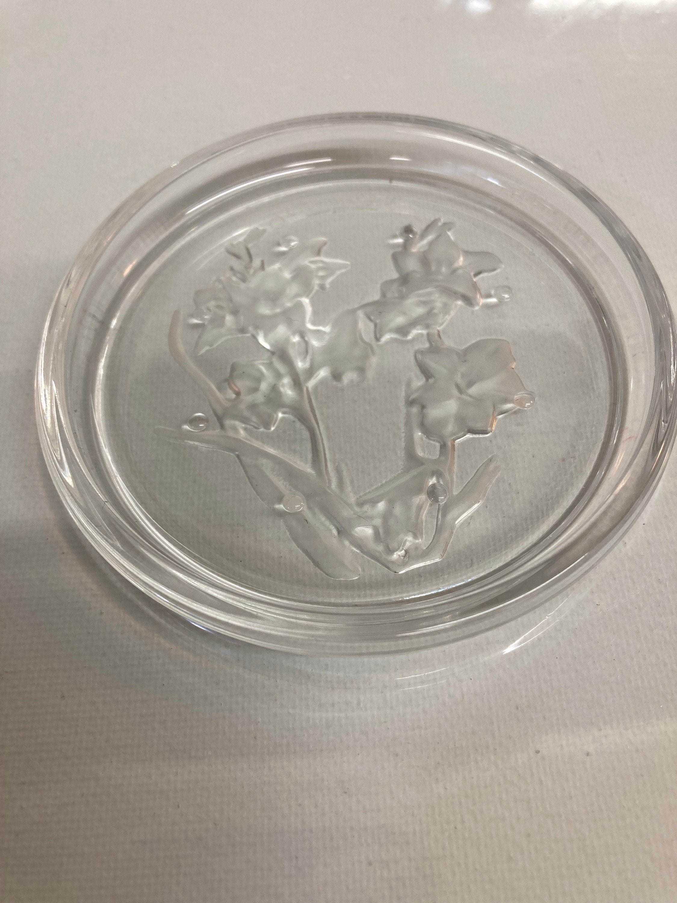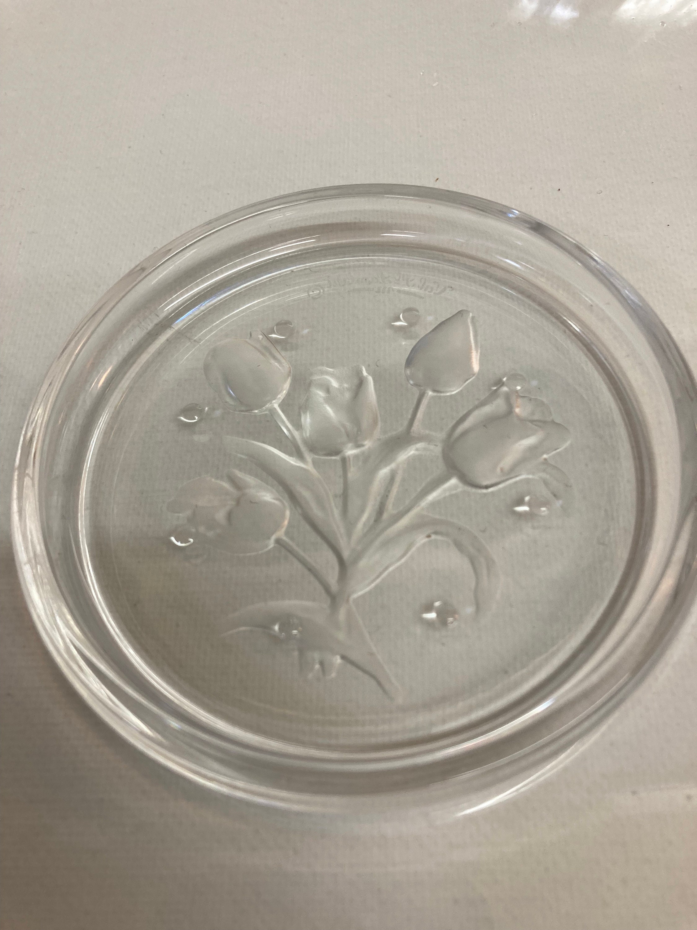5 elegants coasters of the Val-Saint-Lambert crystal shop on the theme of flowers,