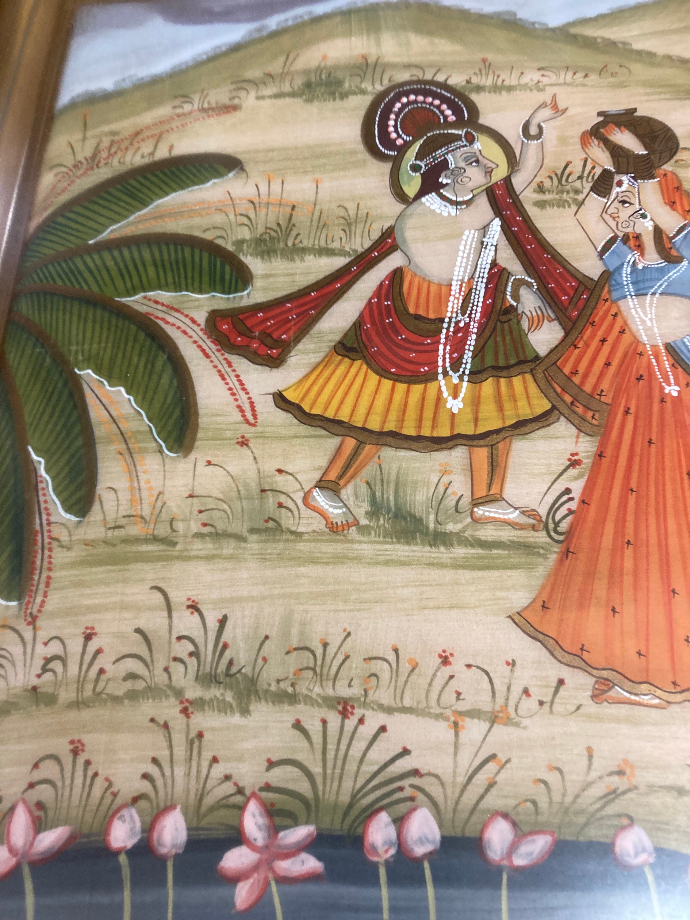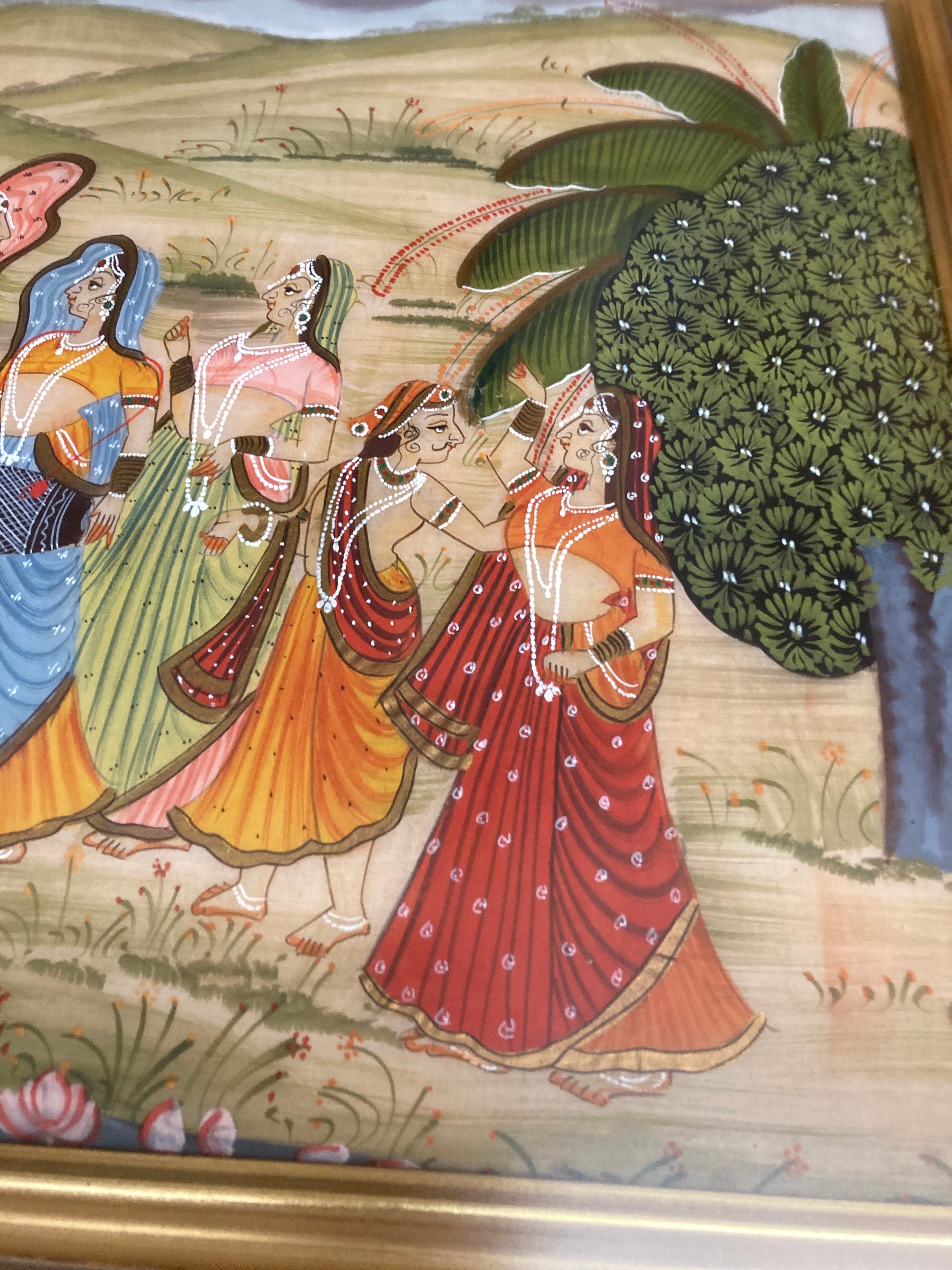 From an estate Sale.Painted on cloth, ( as per owner , Silk )