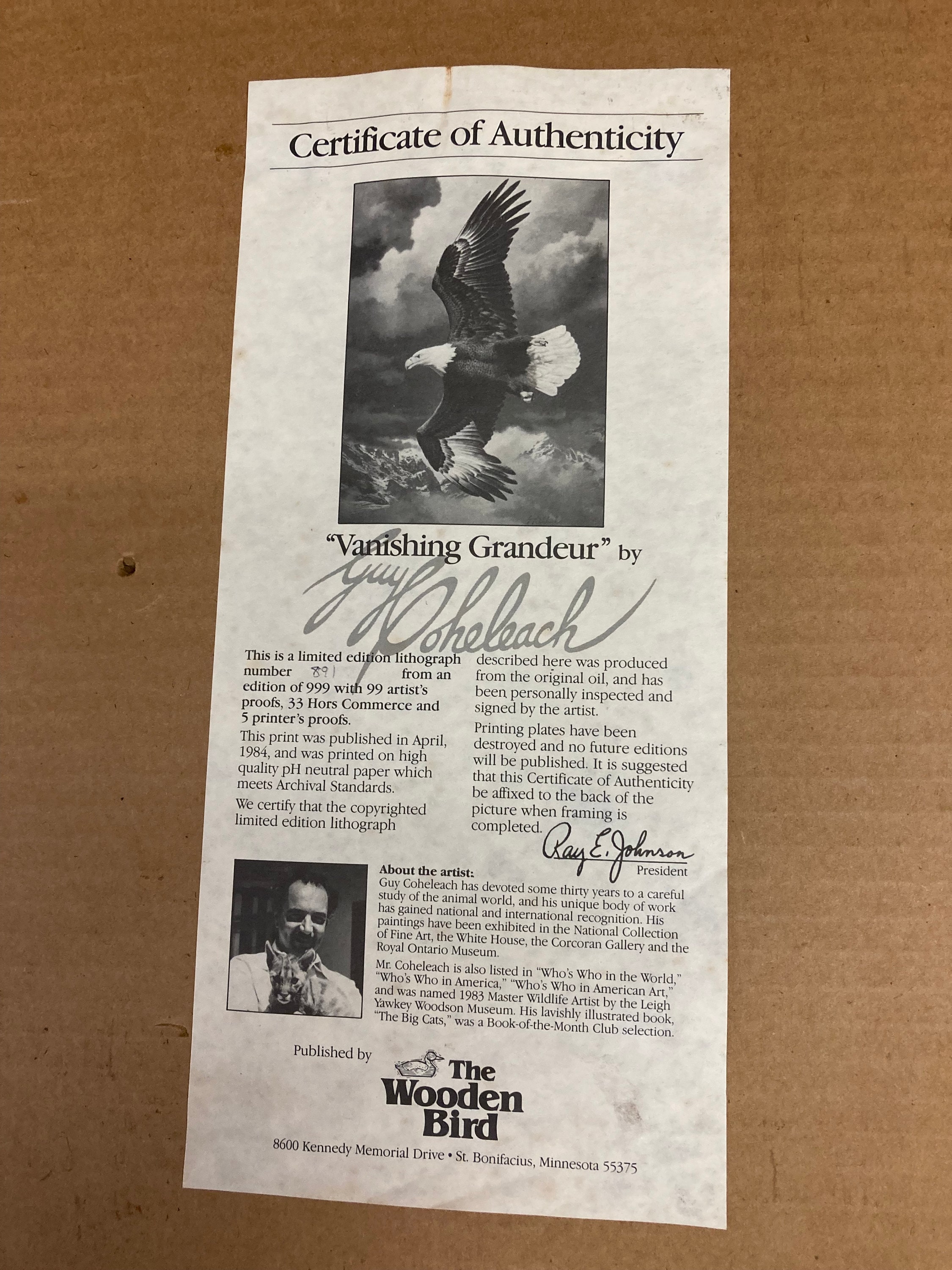 Numbered and Signed artist print “Vanishing Grandeur” by Guy Coheleach
