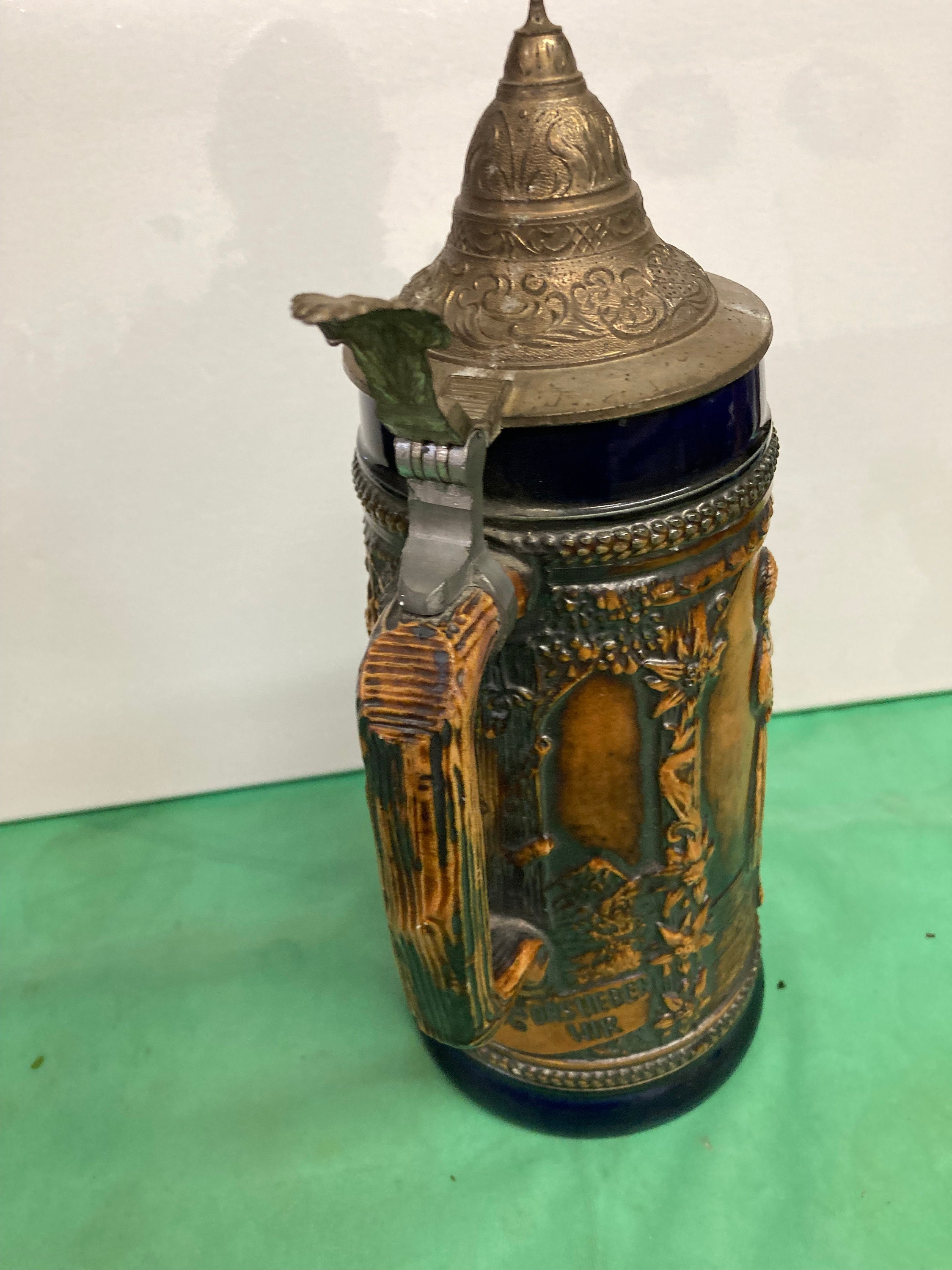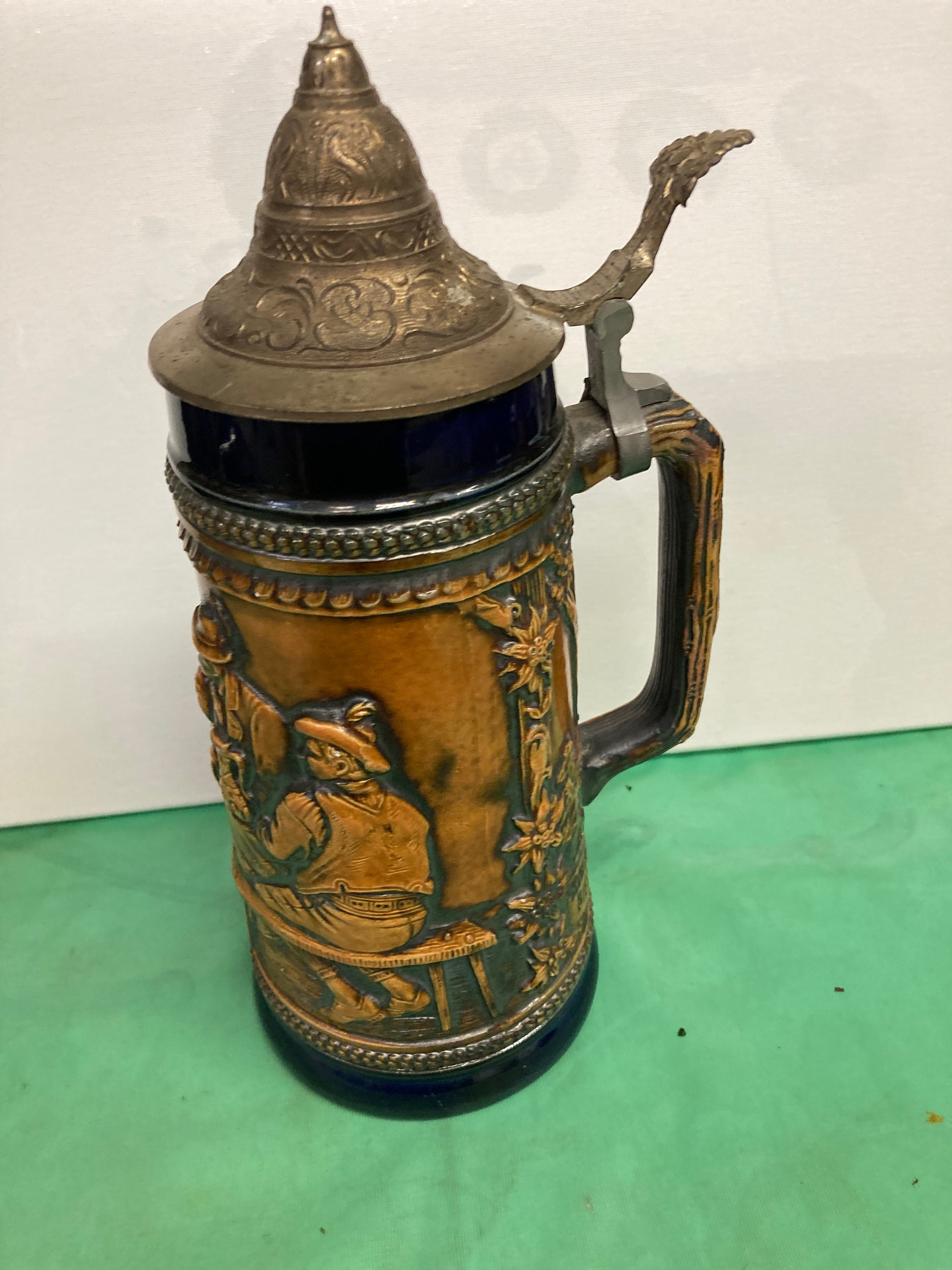 Vintage Stoneware Gerz W. Germany Hinged Lidded Beer Stein Raised Images Tavern.
