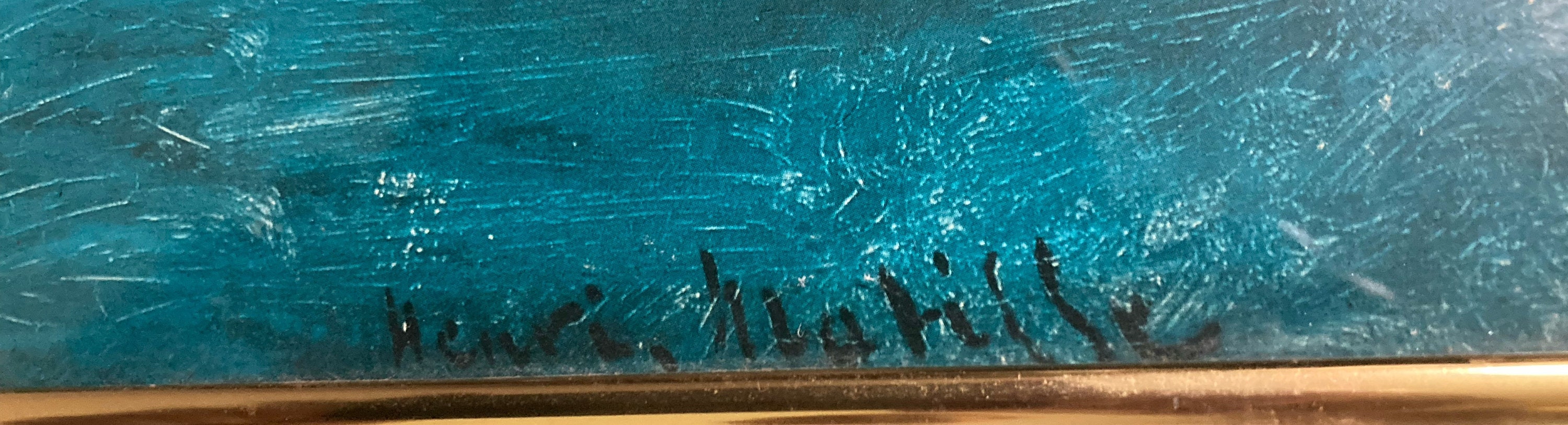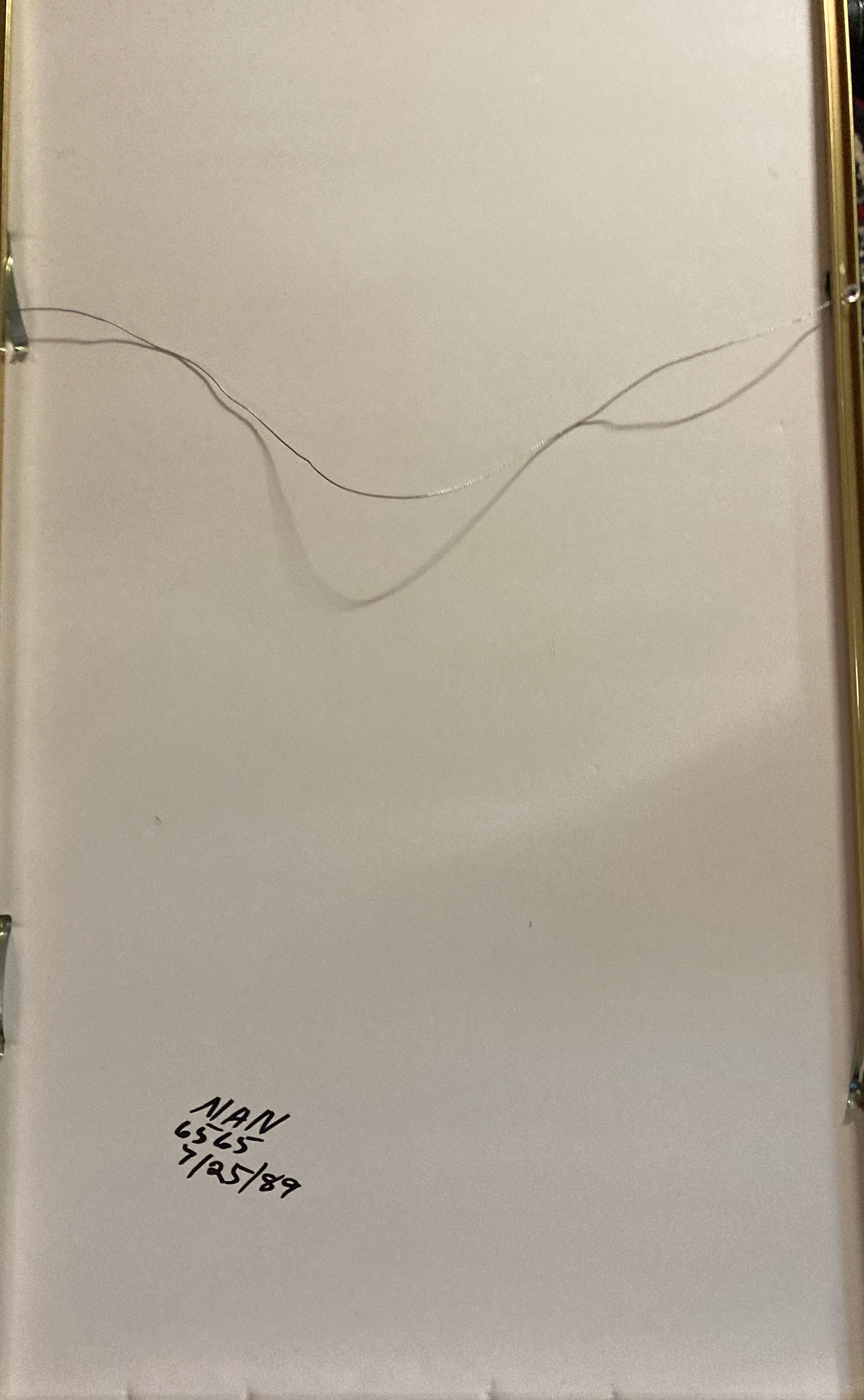 The back leg of the tripod sculpture stand appears to rest in the grass of the painting behind it.