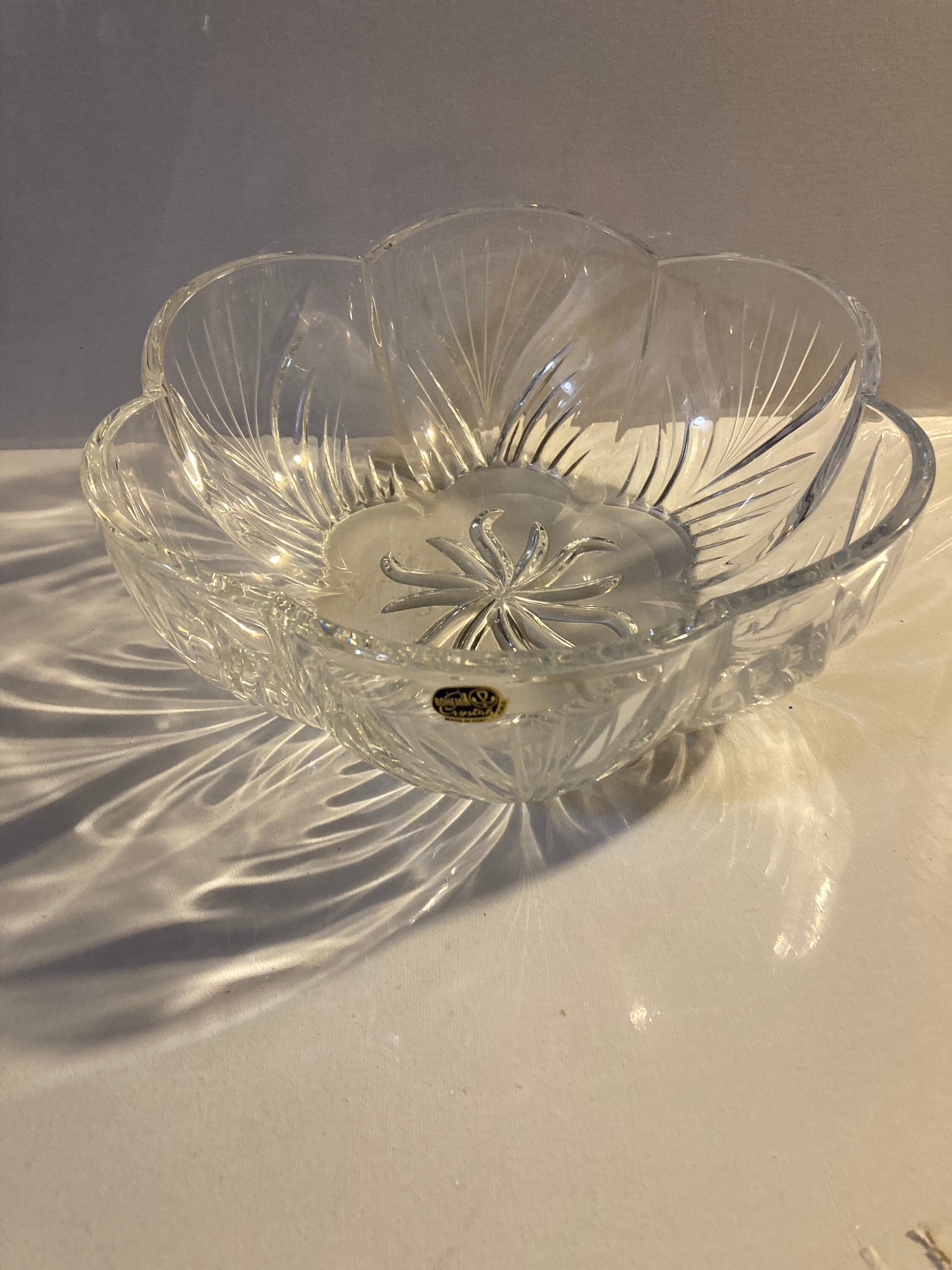 Gorgeous Vintage Bohemia Crystal Bowl with Scalloped Edge Made In Czech Republic.26cm wide, 13cm high. Located in BeenleighWeight : 5 1/49 3/4" in Diameter4 " TallScalop edge design