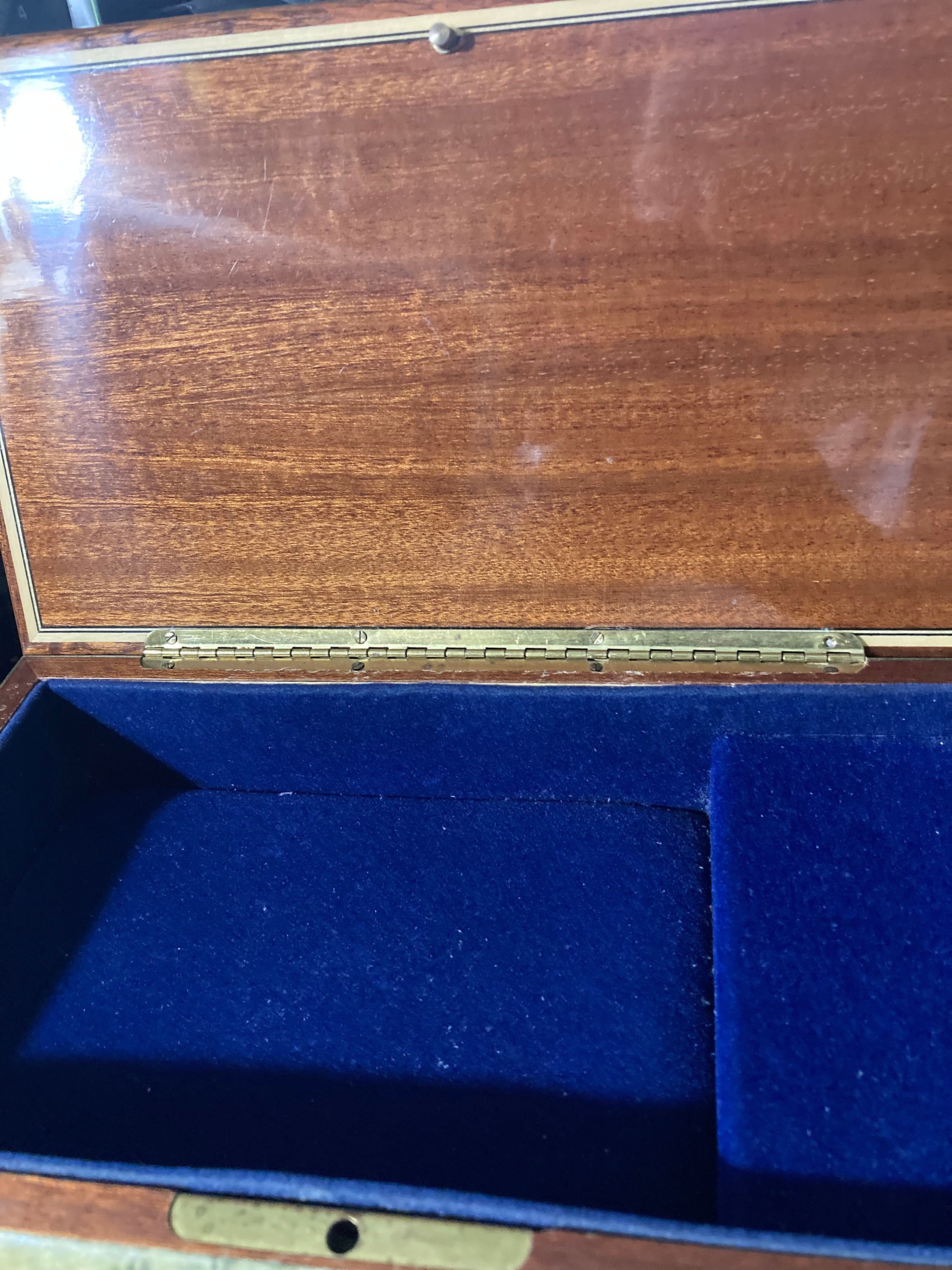 This is a lovely jewelry music box that is cobalt blue velvet lined and plays " Till The End Of Time