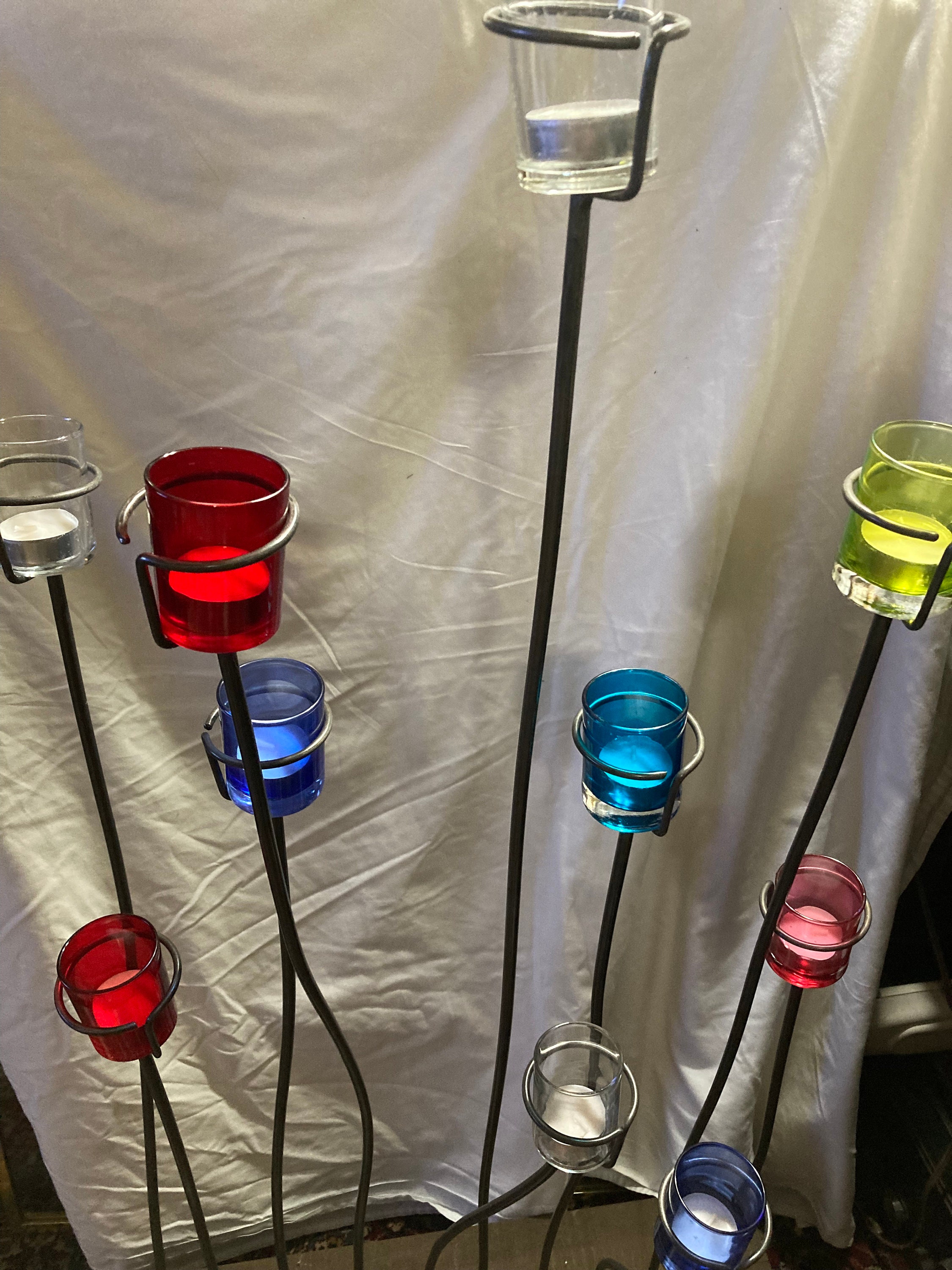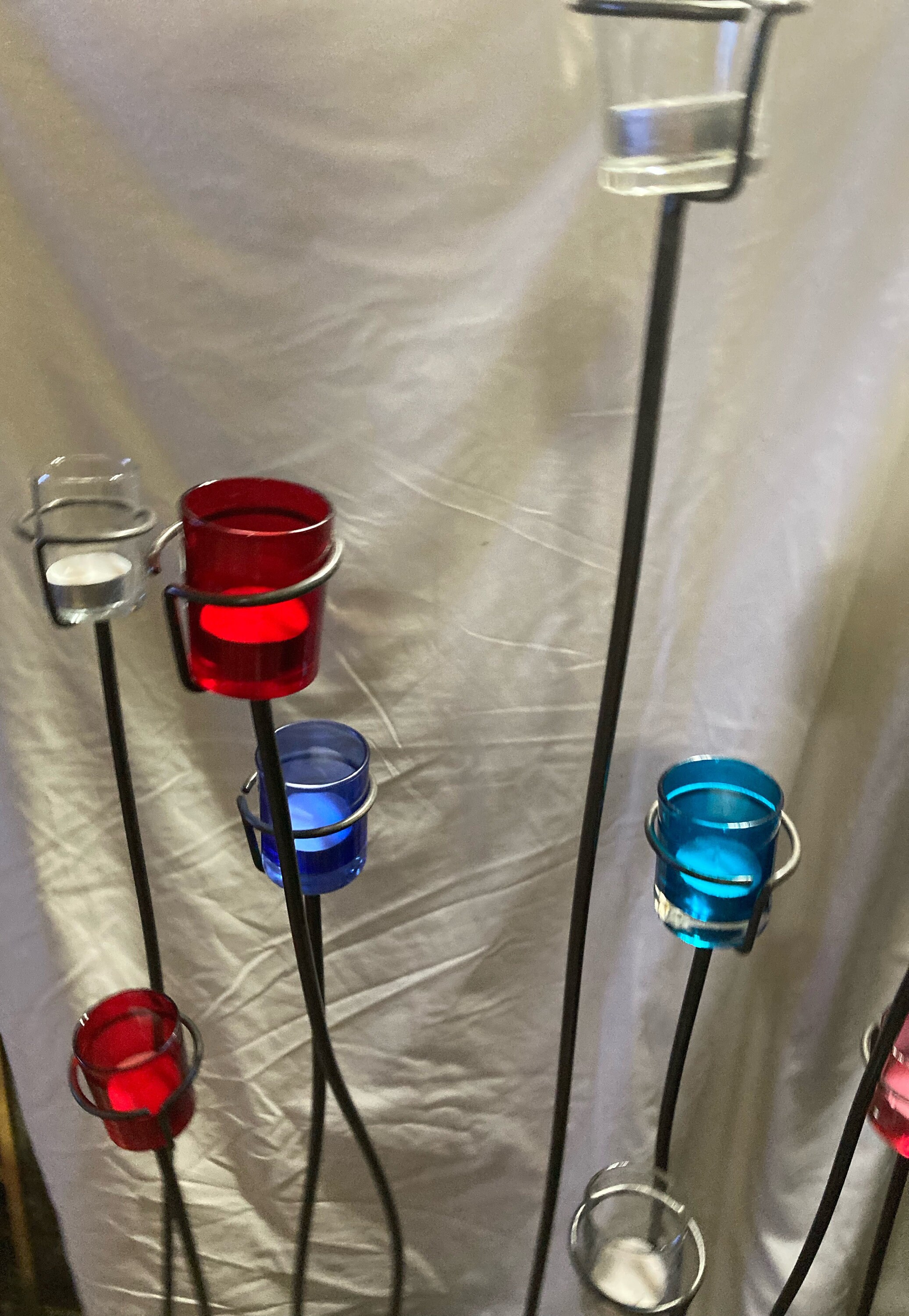 Light up the festivities with this unique and eye-catching Silver 45" Tall 10 Arm Candle Holder Candelabra Centerpiece.
