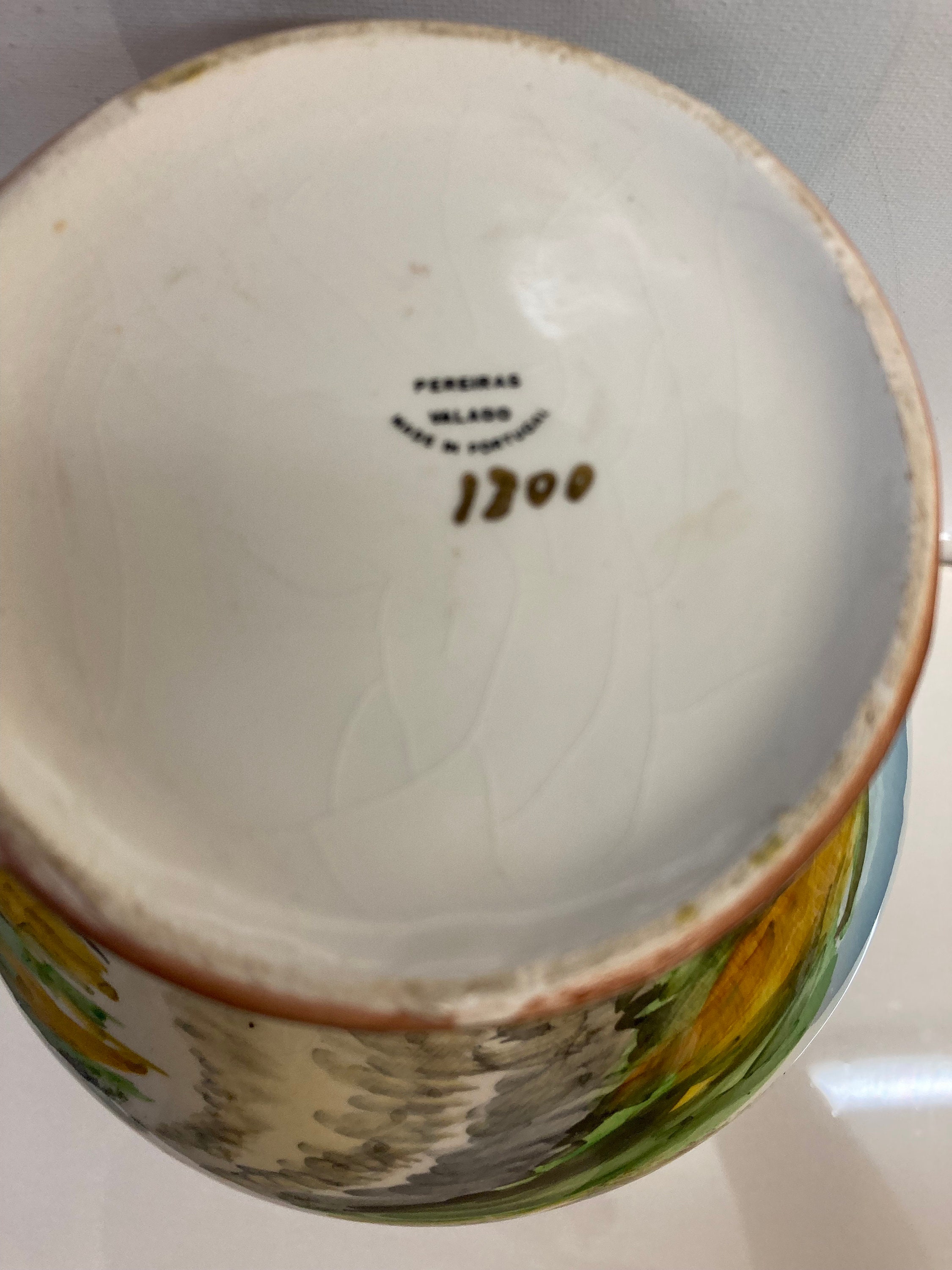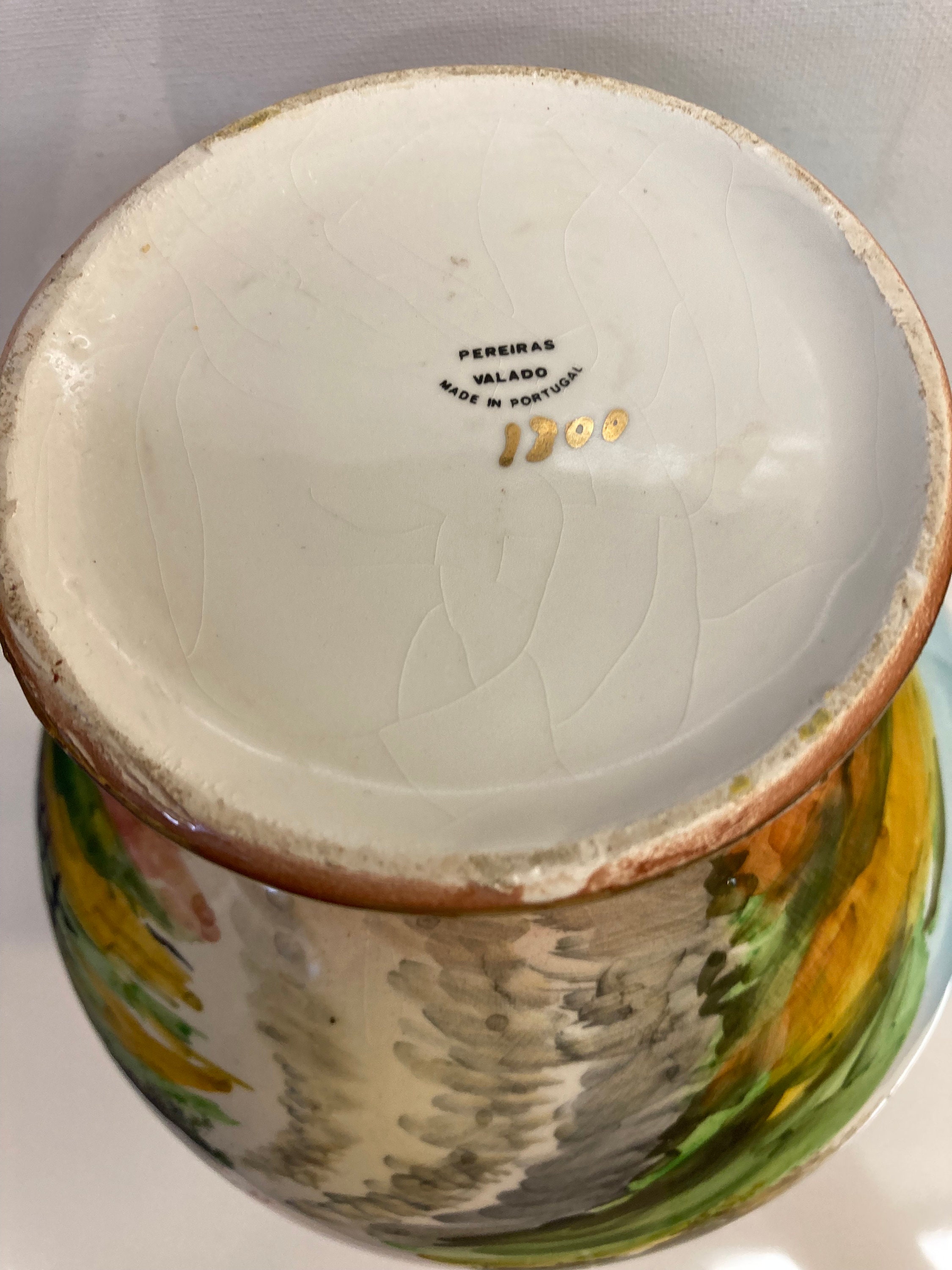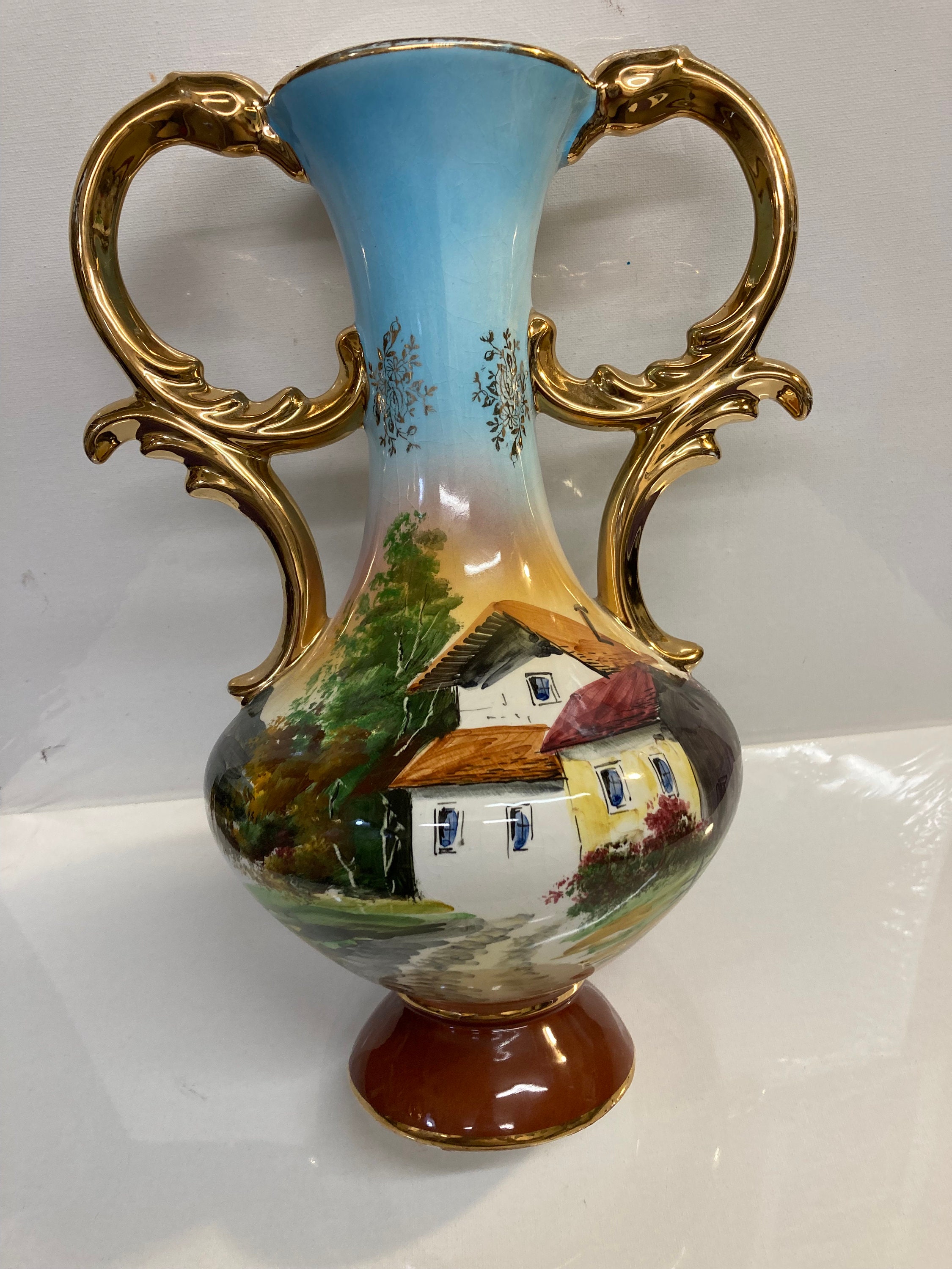 Portugal Hand Painted OCEAN Porcelain Vase Pereiras Valado GOLD DOUBLE HANDLE Made in Portugal Hand Painted Scenic View Porcelain Vase