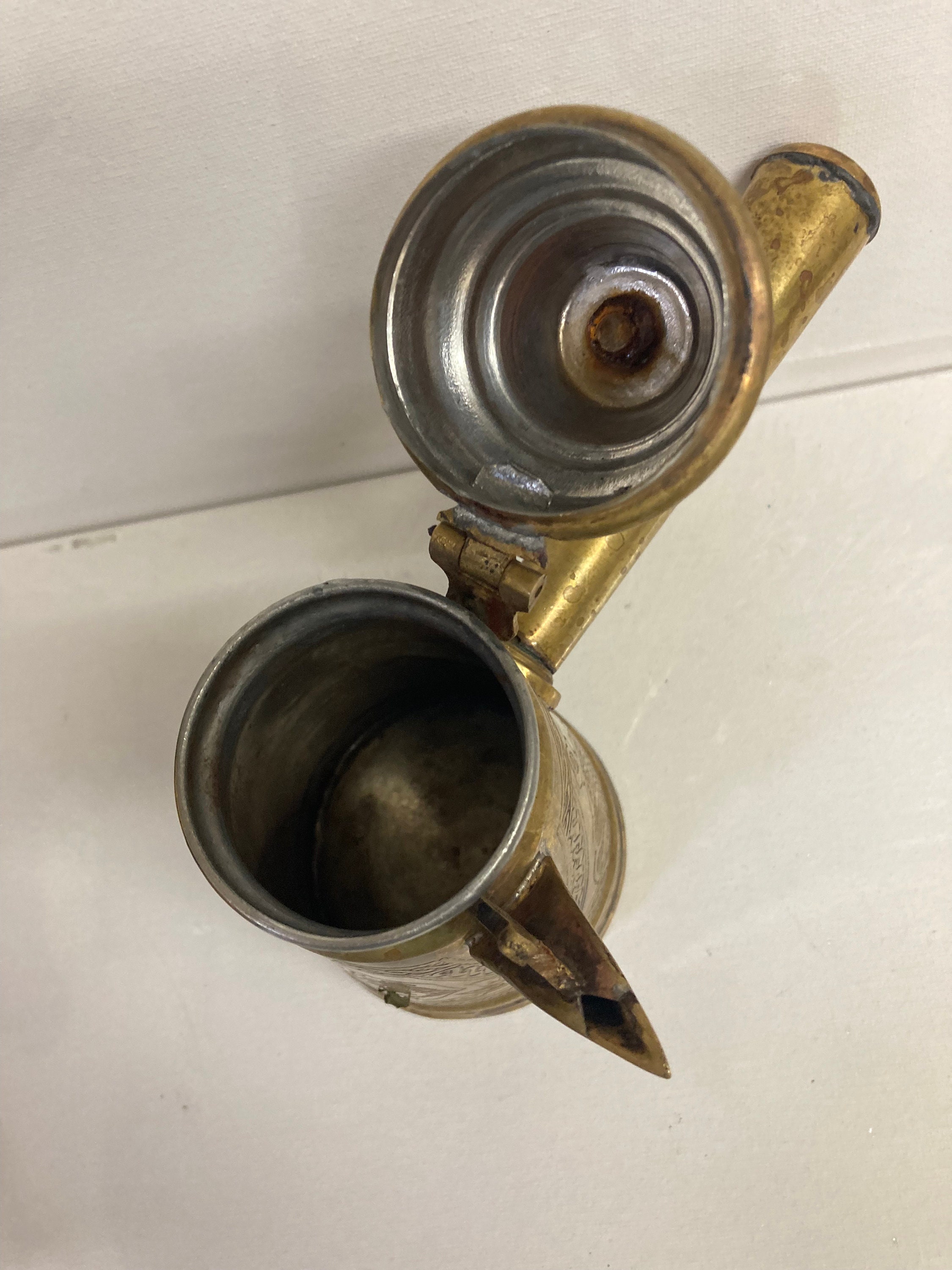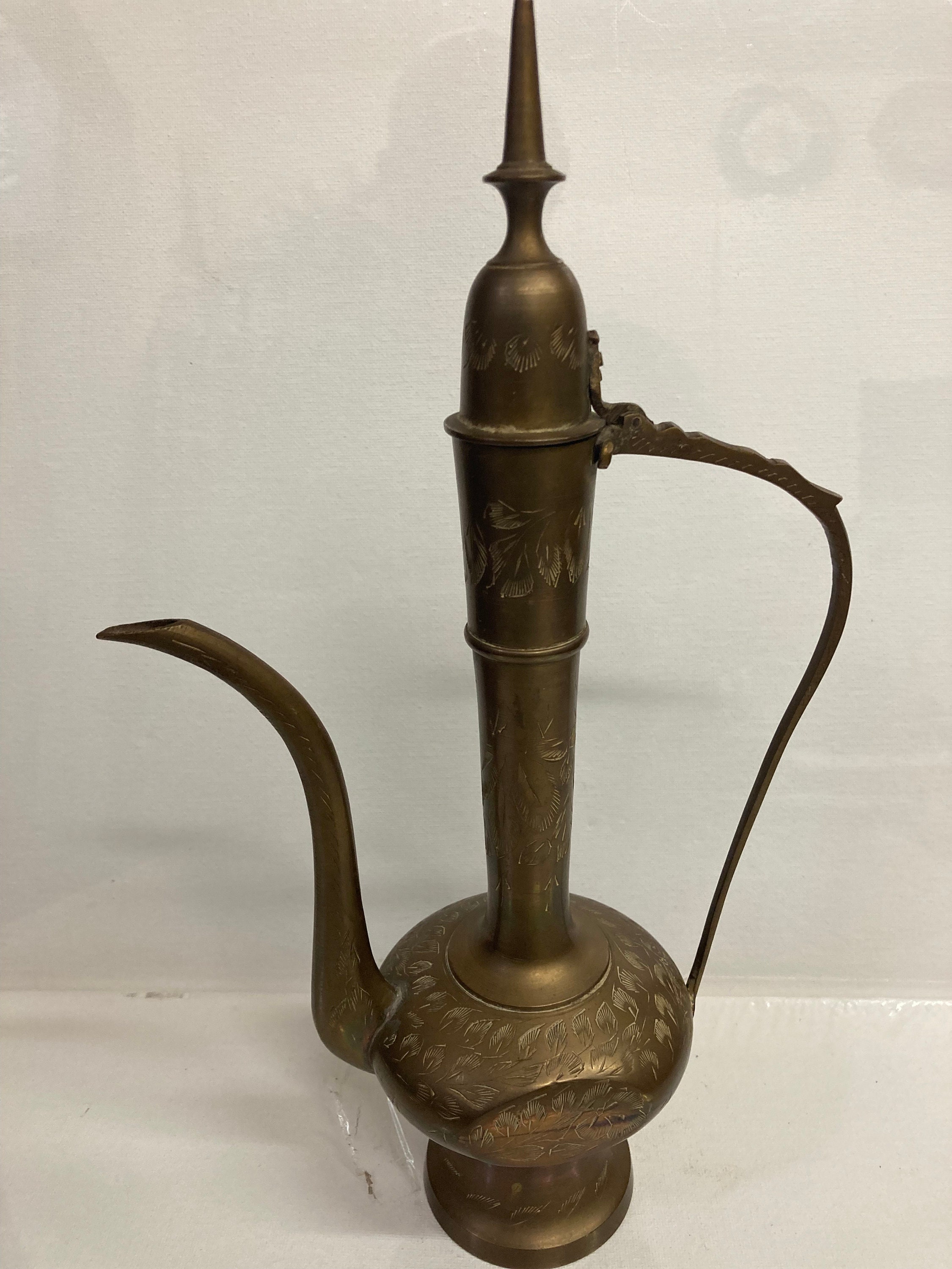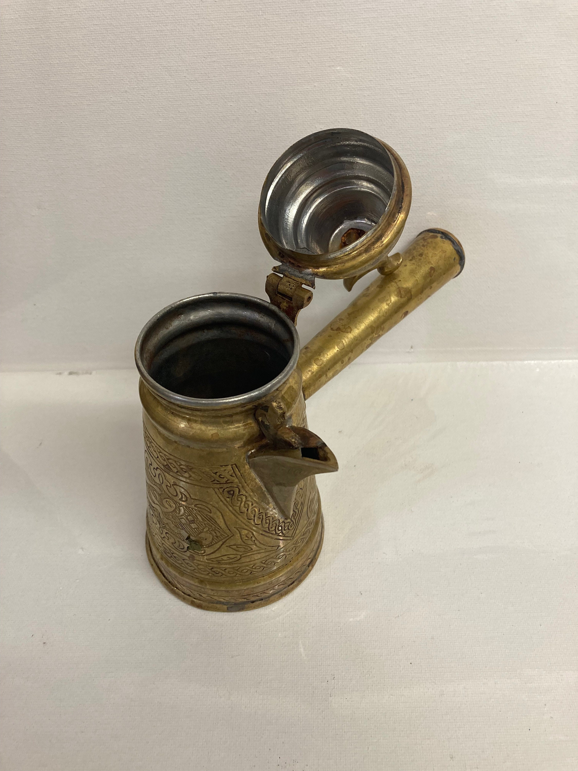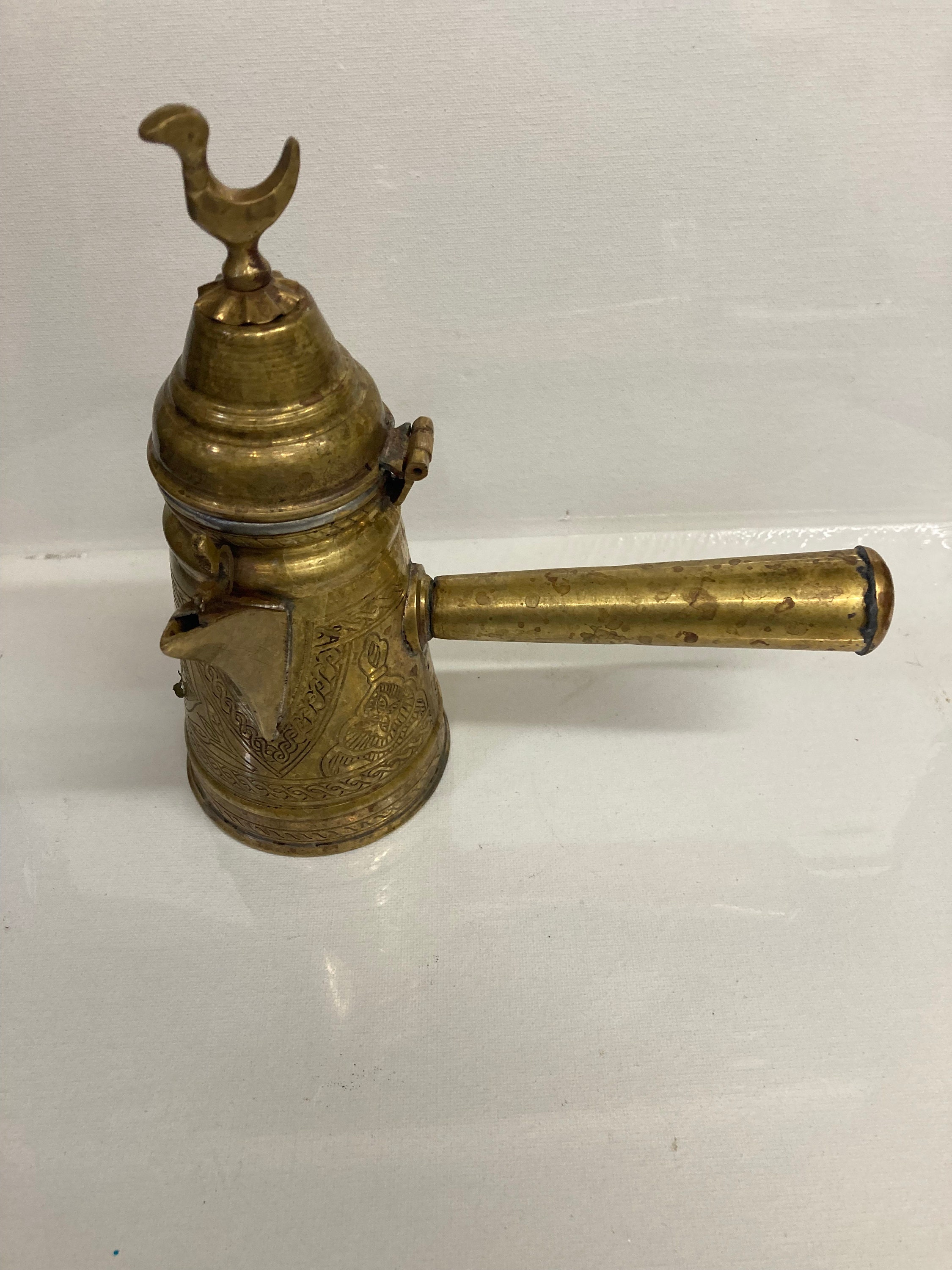 RARE Vintage Signed Islamic Middle Eastern Turkish Ornate Dallah Brass Tea Pot
