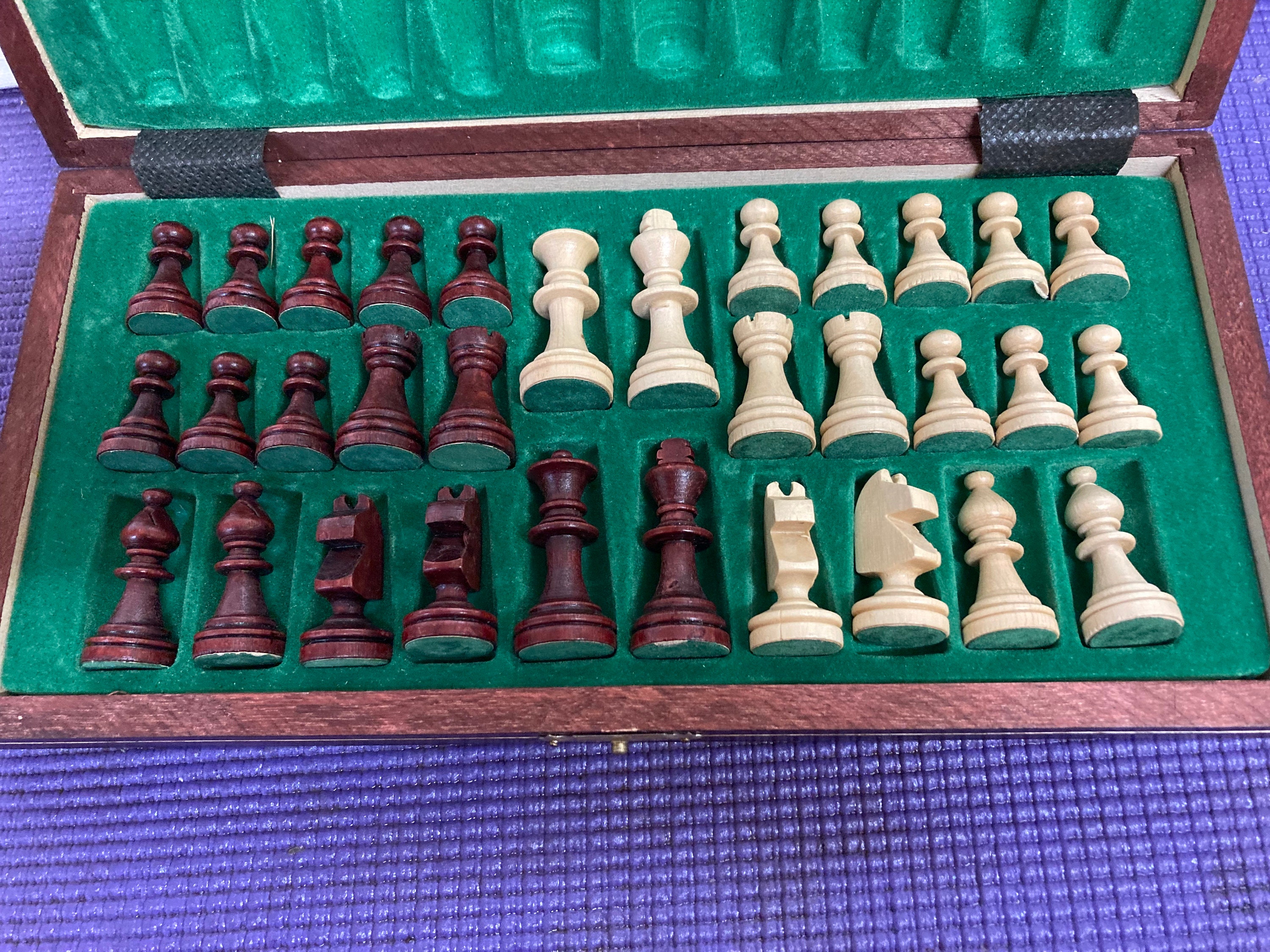Wooden Chess SetWalnut Chess Set 10.5'' x 10.5'' With Green Felted Game Board Interior for StorageChess Game for Child & AdultMaterial WoodOrigin UnknownHandmade