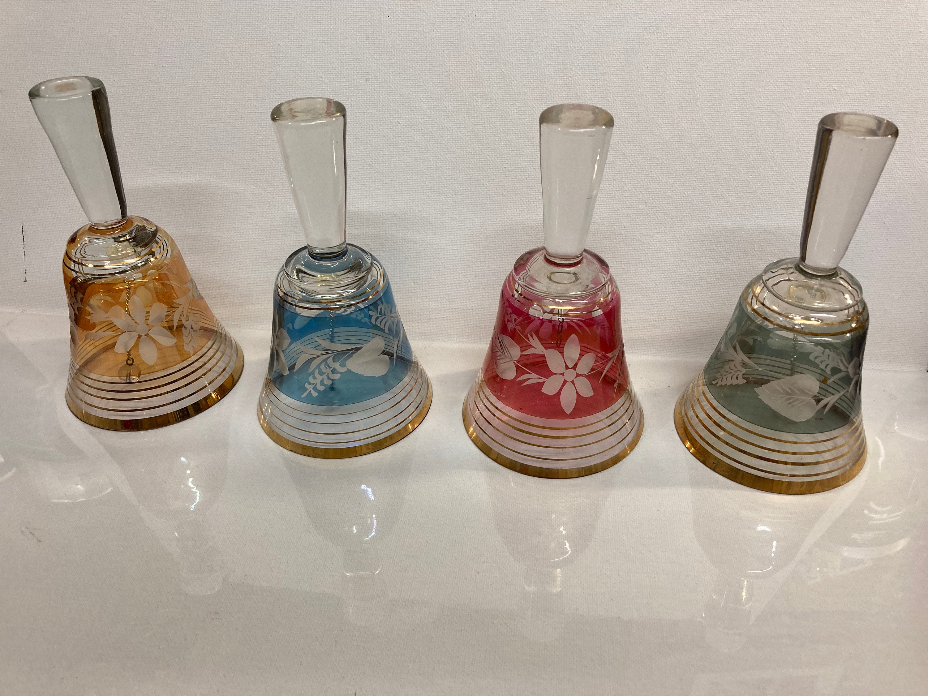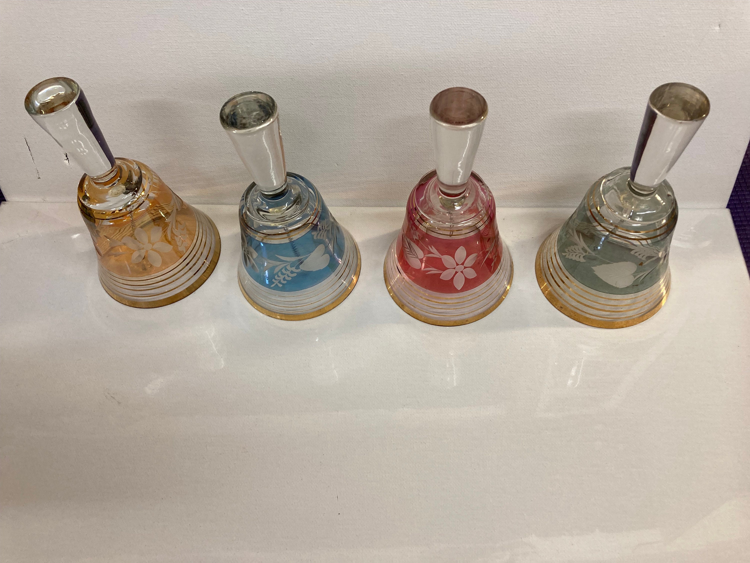 4 Vintage Bohemian Style Dinner Bells Assorted Colors ,Collectible Crystal Bells