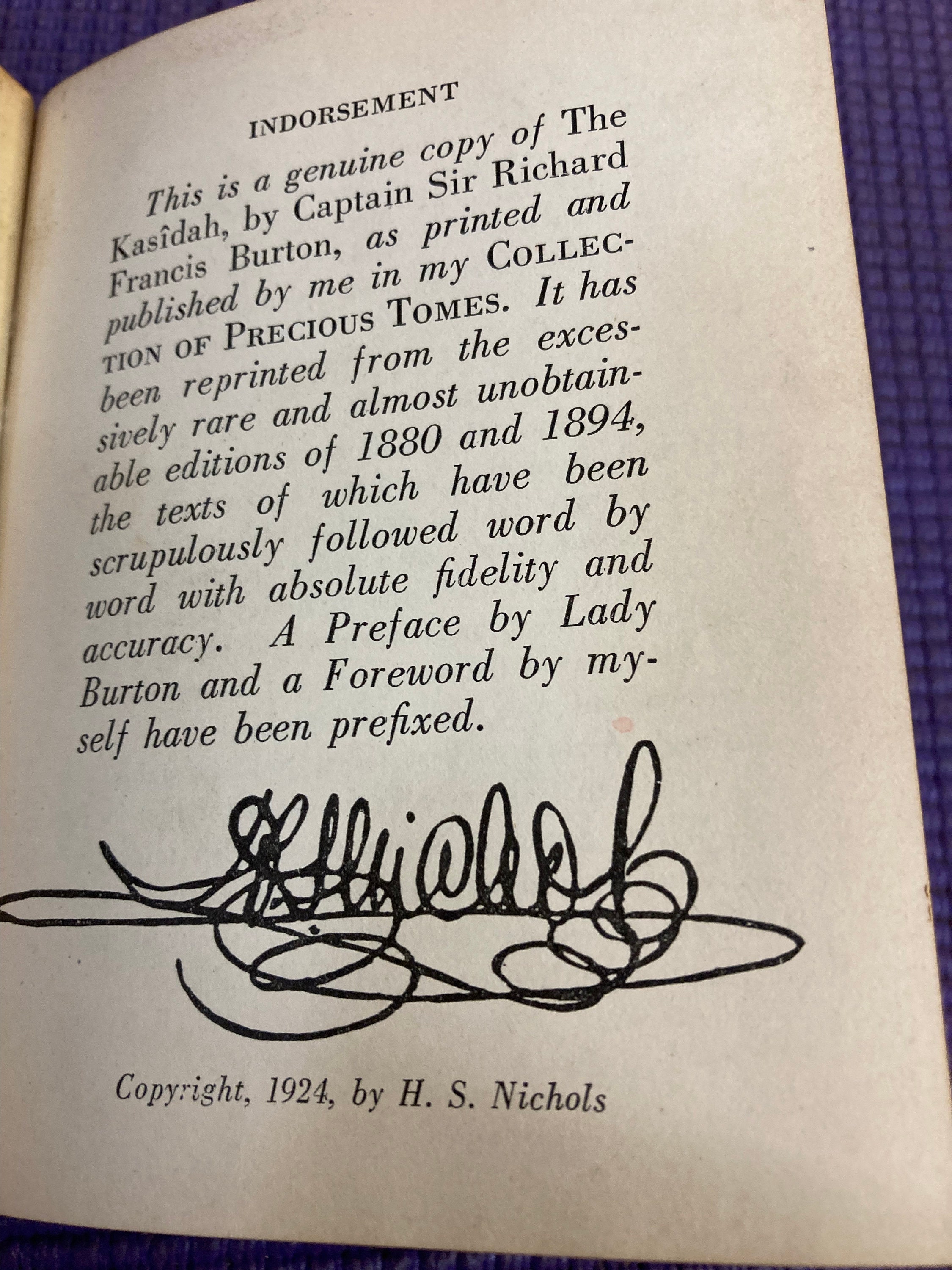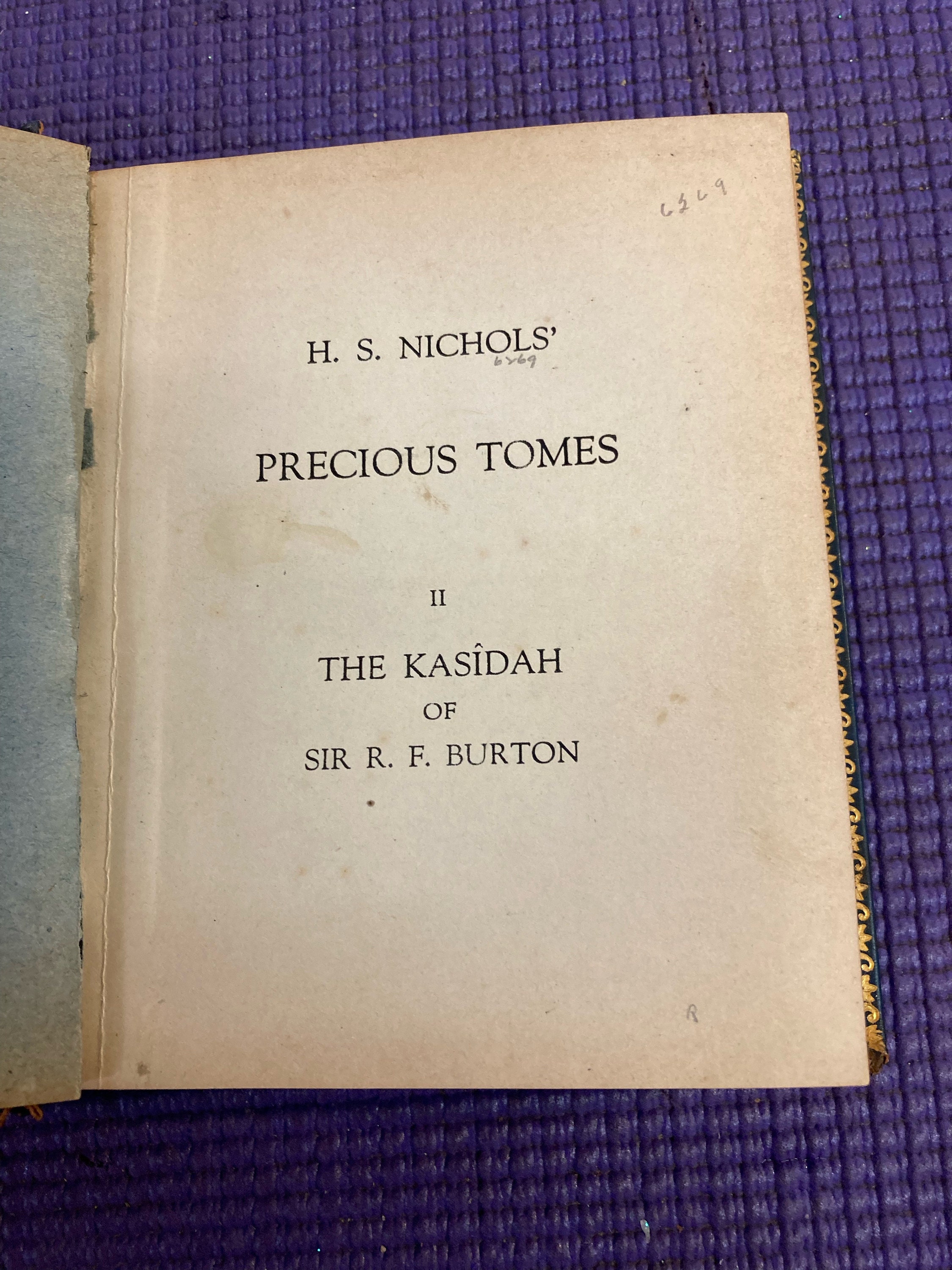 The Kasidah of Sir R. F. Burton Entitled By Him the lay of the Higher Law by Burton, Sir R.F.Burton .Copyright 19245 x 4 x 1Almost perfect condition except a small piece missing from top left corner in Binding