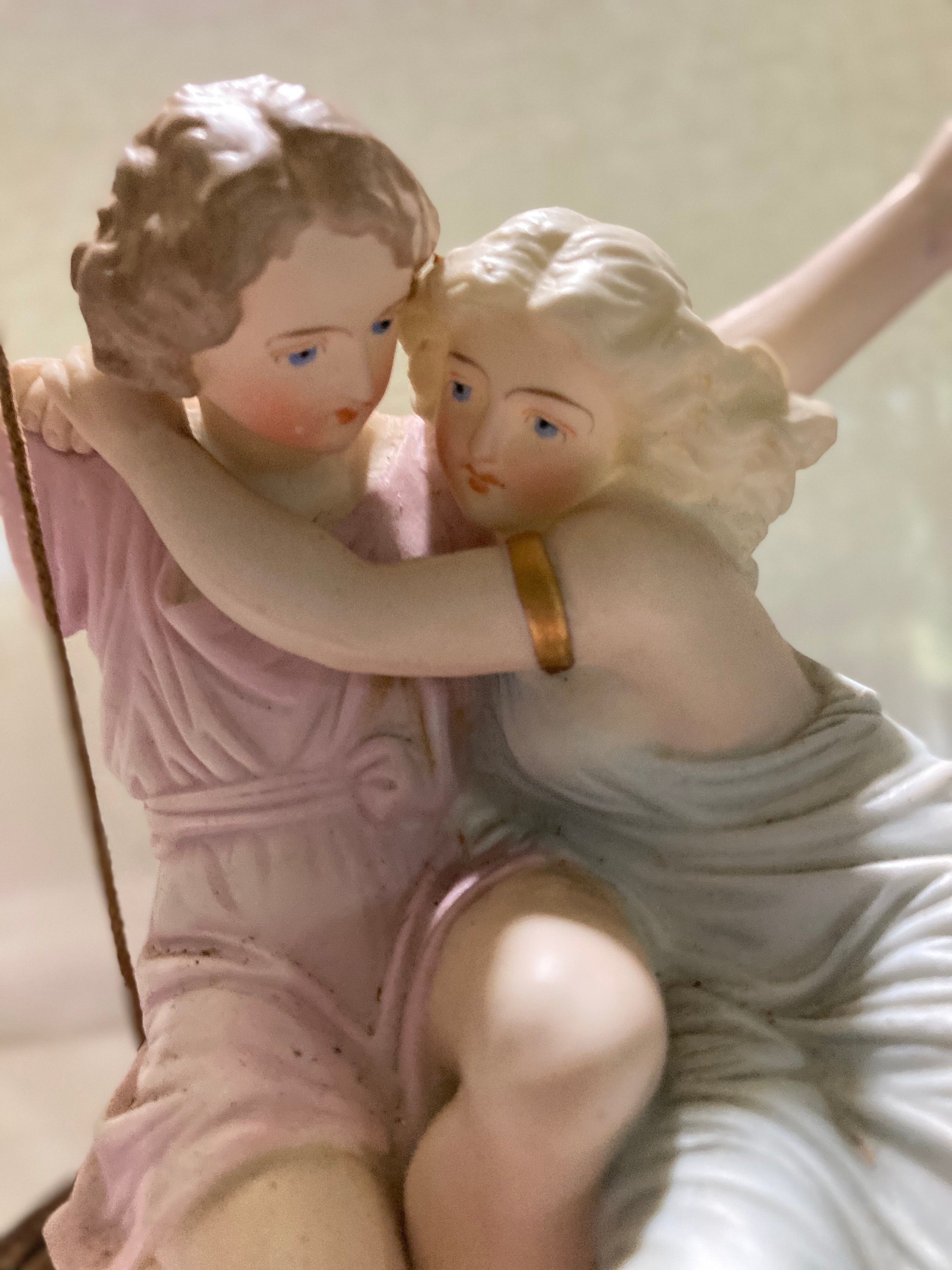 Absolutely stunning classical Porcelain statue of a pair of lovers on a swing