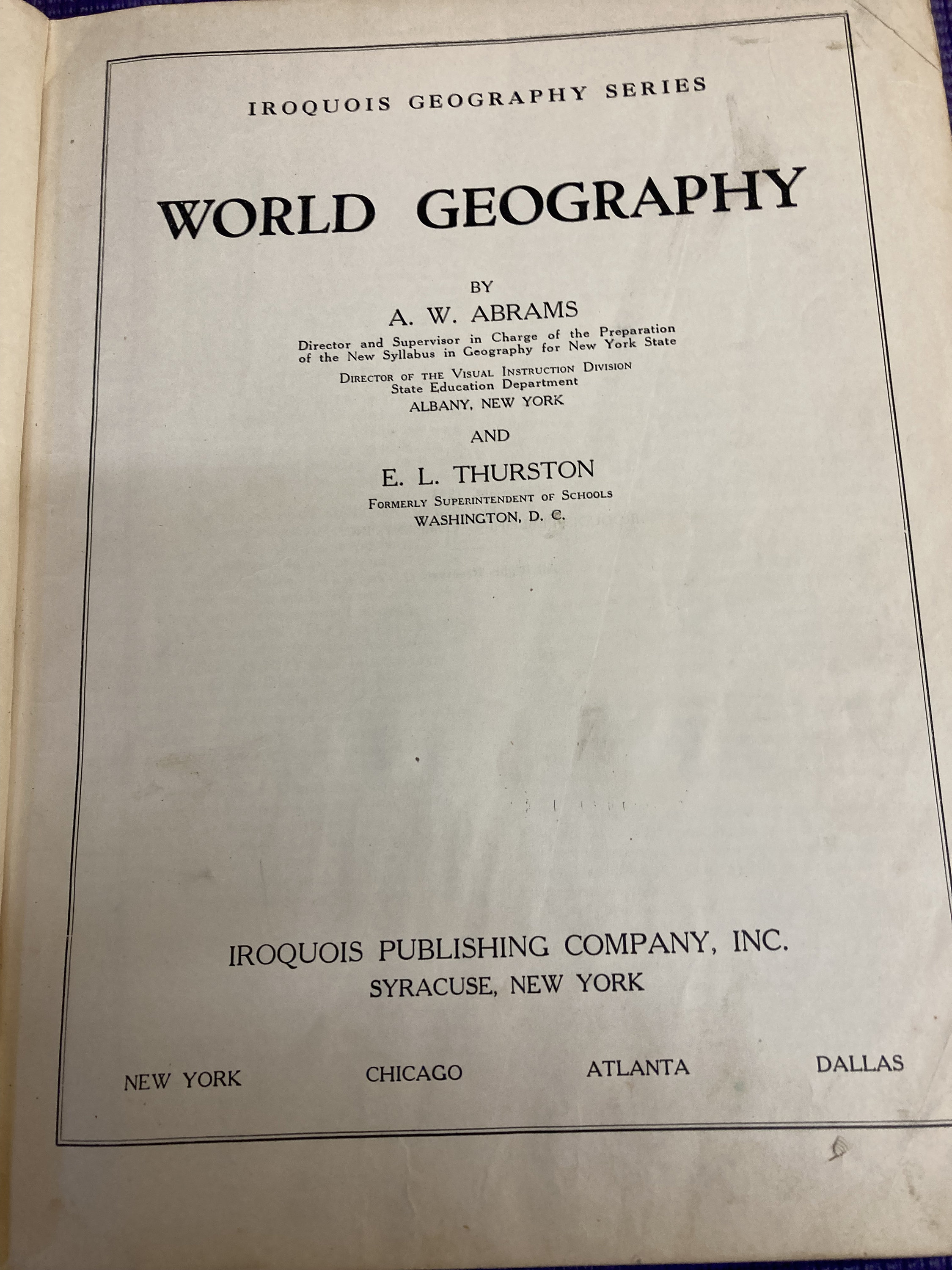 World geography,: By A.W. Abrams & E.L. Thurston (Iroquois geography series 1933