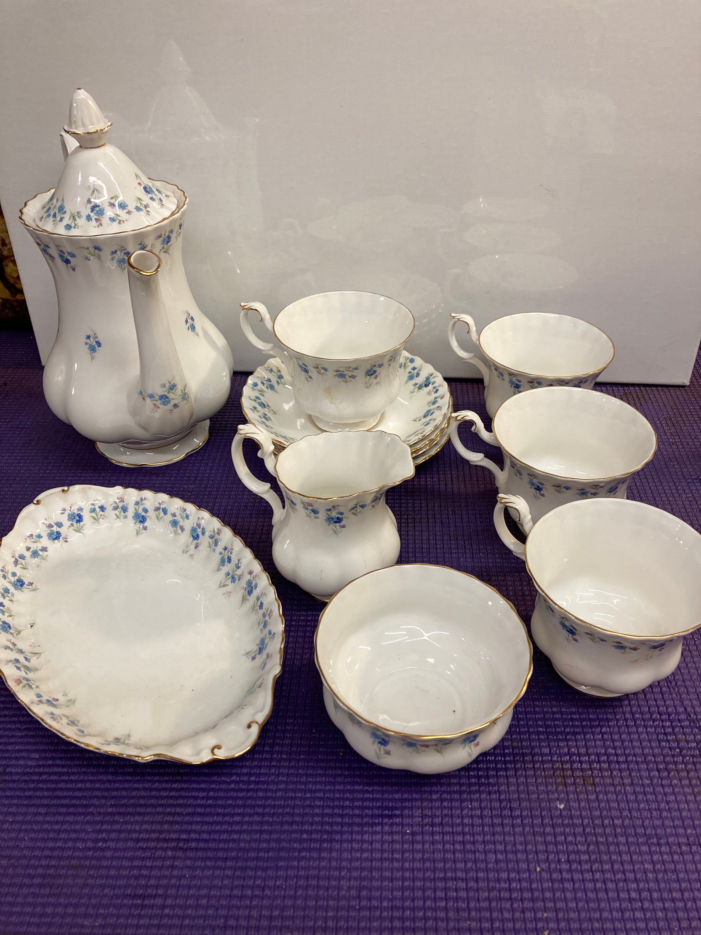 ROYAL ALBERT MEMORY LANE 13 PIECE EXPISO COFFEE SET.