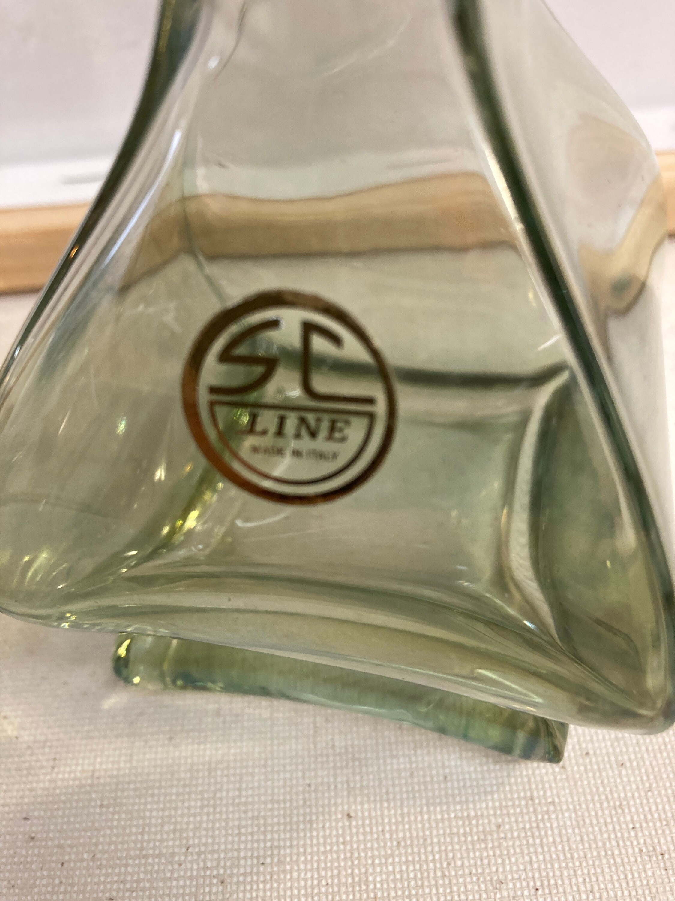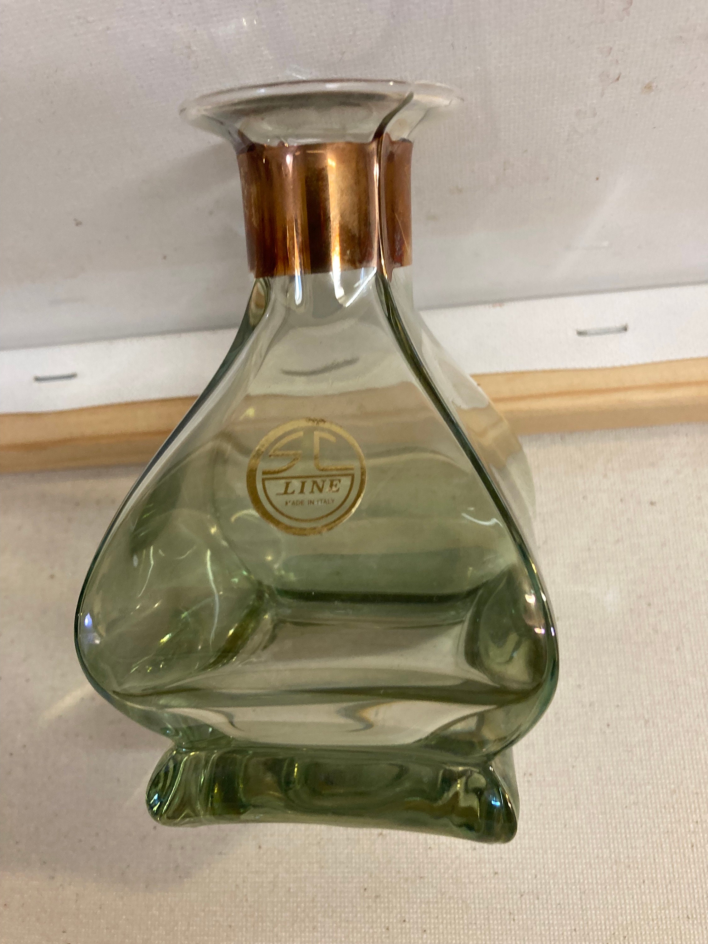 SC LINEVintage Italian SC Lead Crystal Perfume Bottle and Stopper .Gray /Gold Crystal .