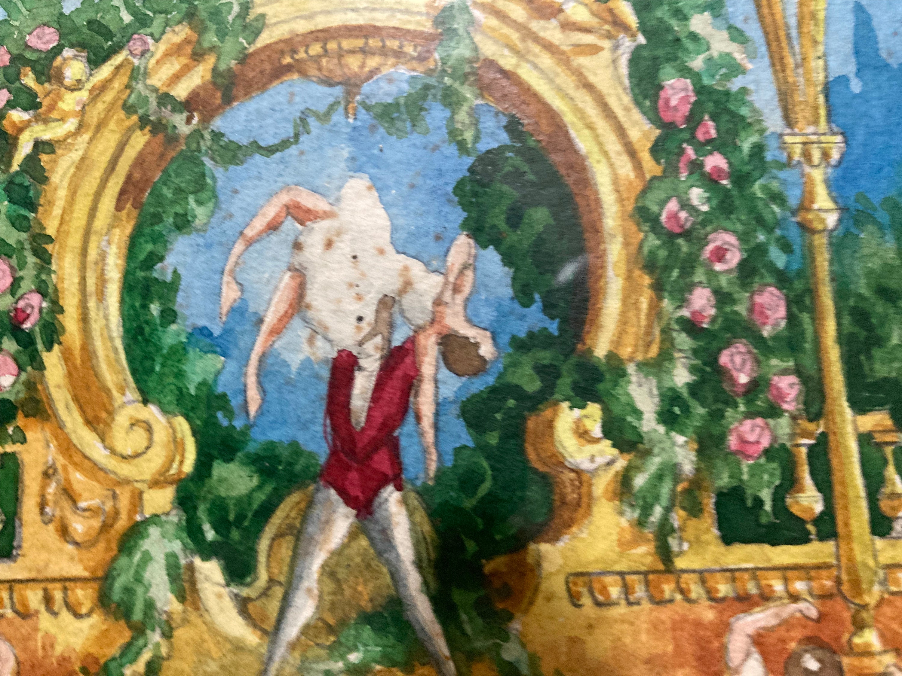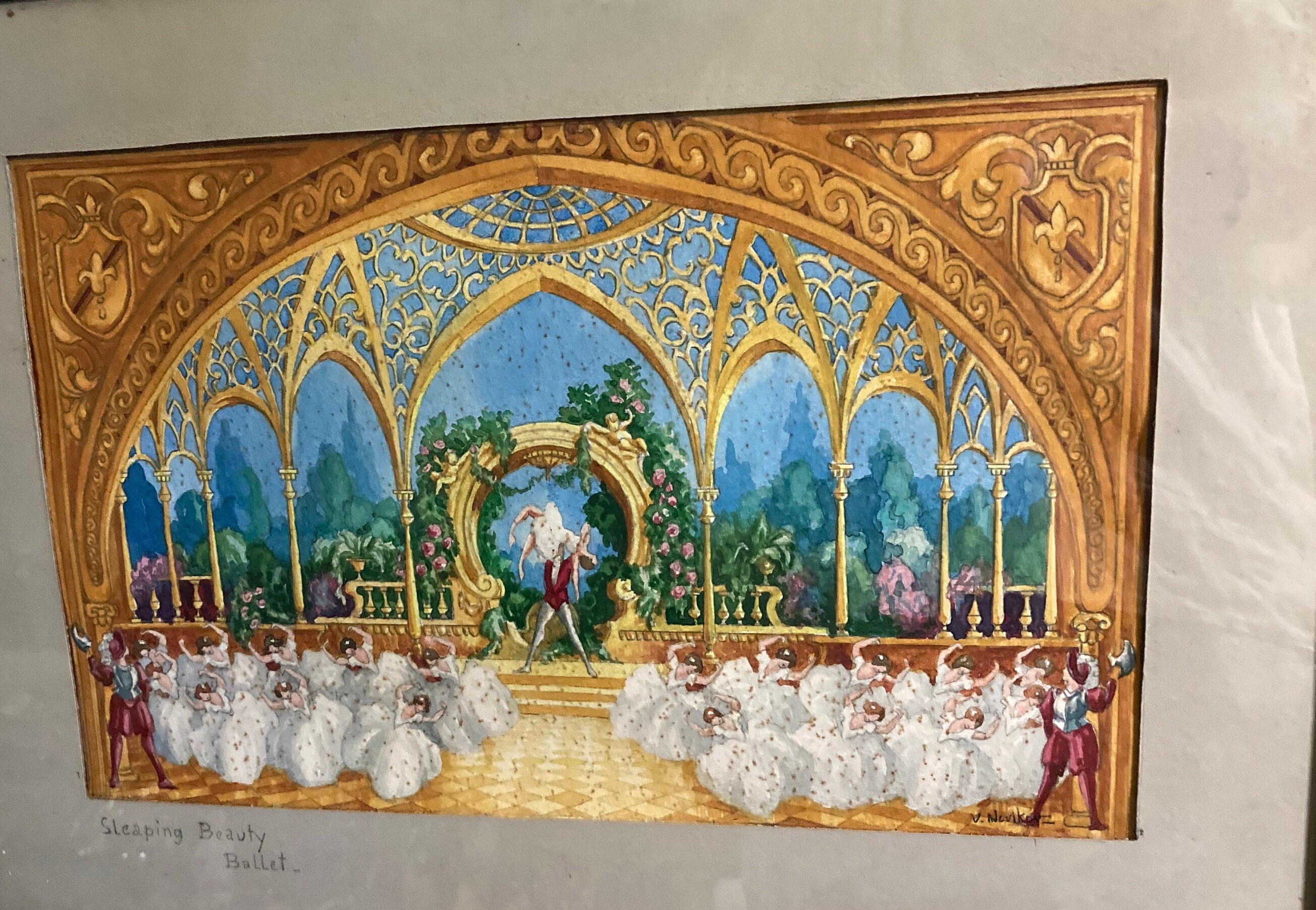 Watercolor Painting of "Sleeping Beauty Ballet "Framed Size 19.5 w x14" tPicture 14"w x 9"wPerfect in Frame , no damages