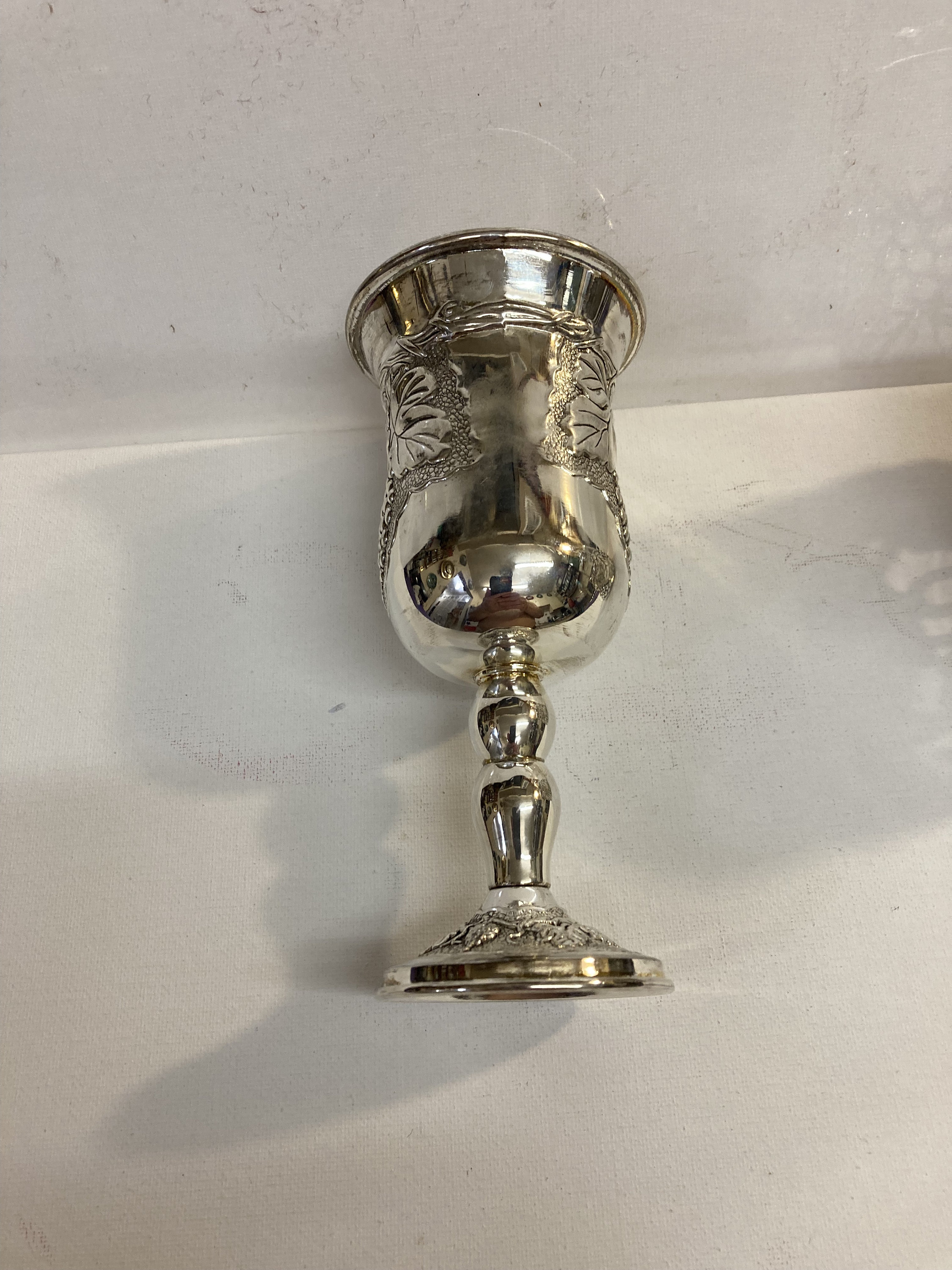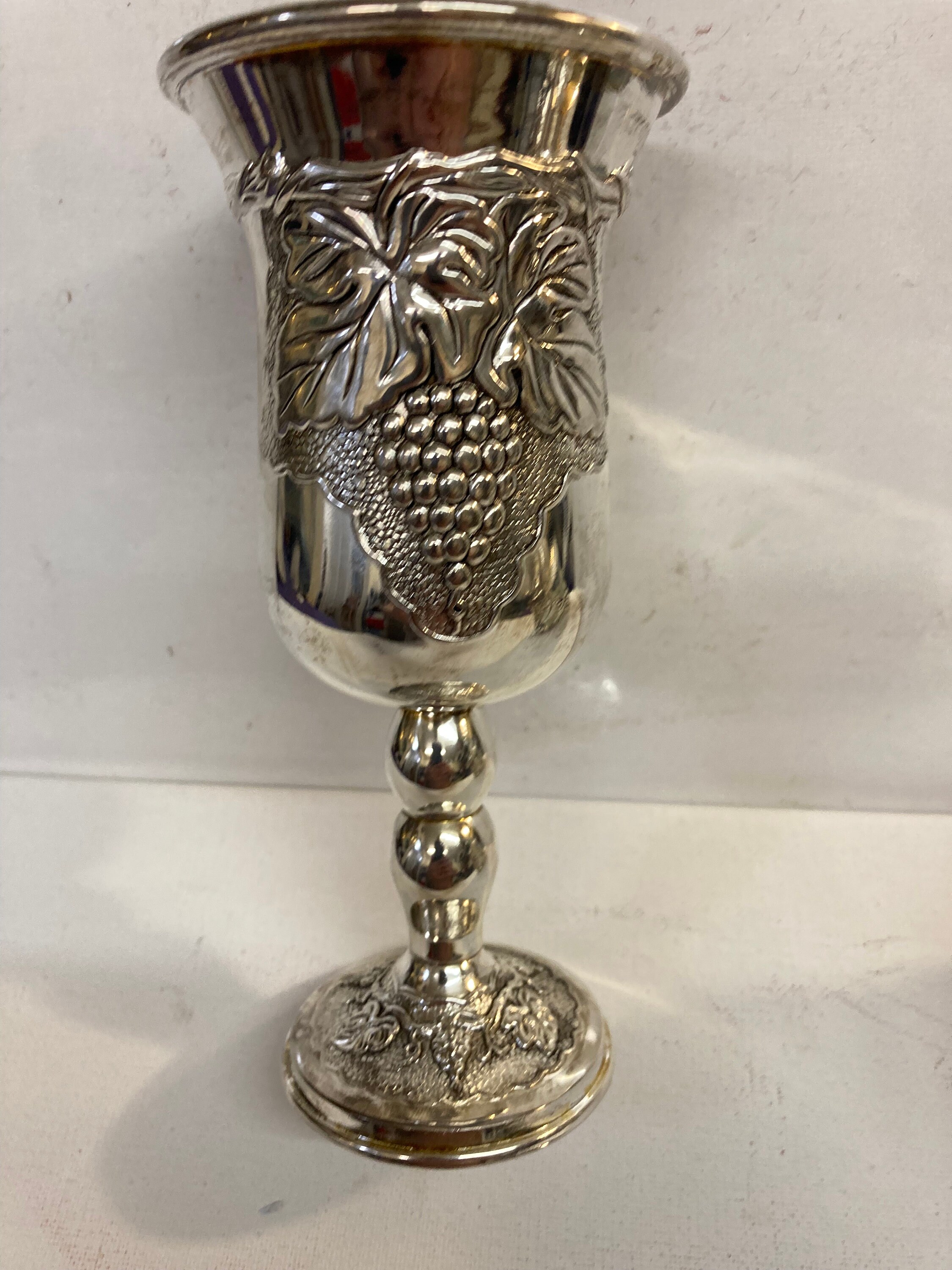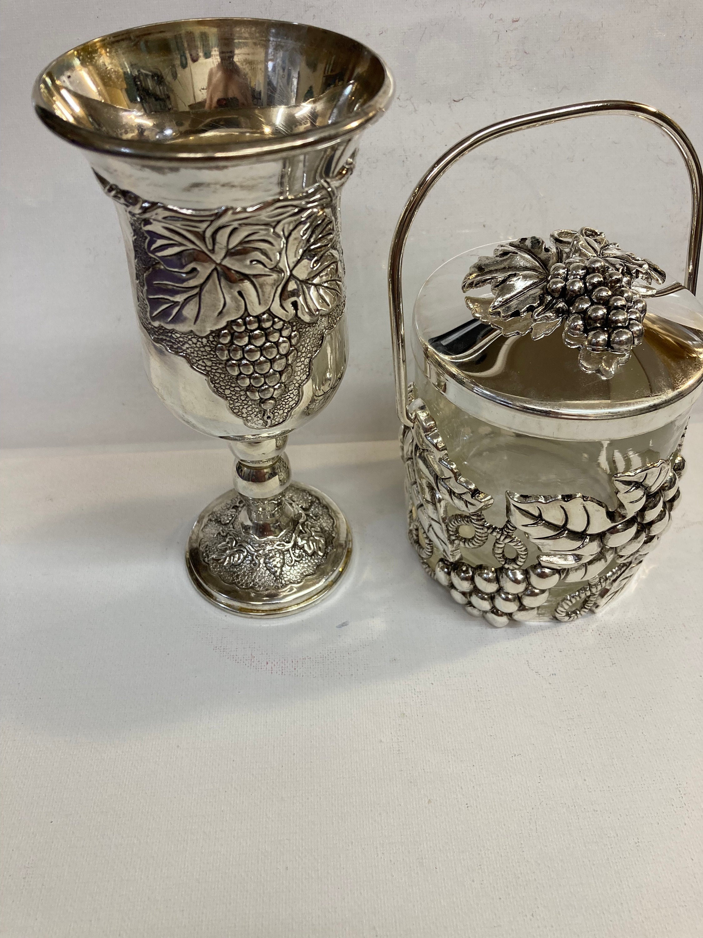 Judaica Antique wine Cup Grape Design Silver Signs BY KARSHI from Israel,with Matching Fruit Jar
