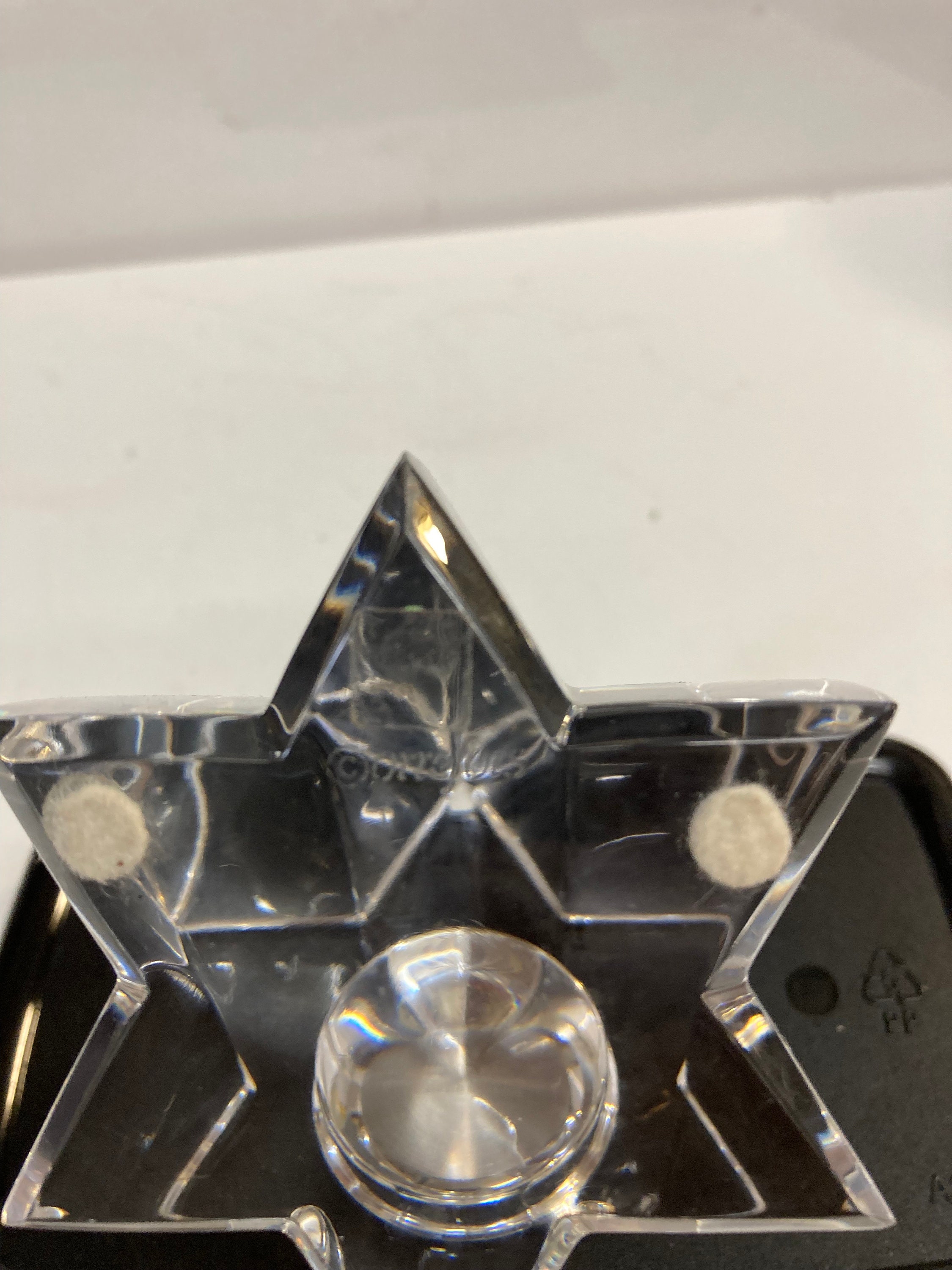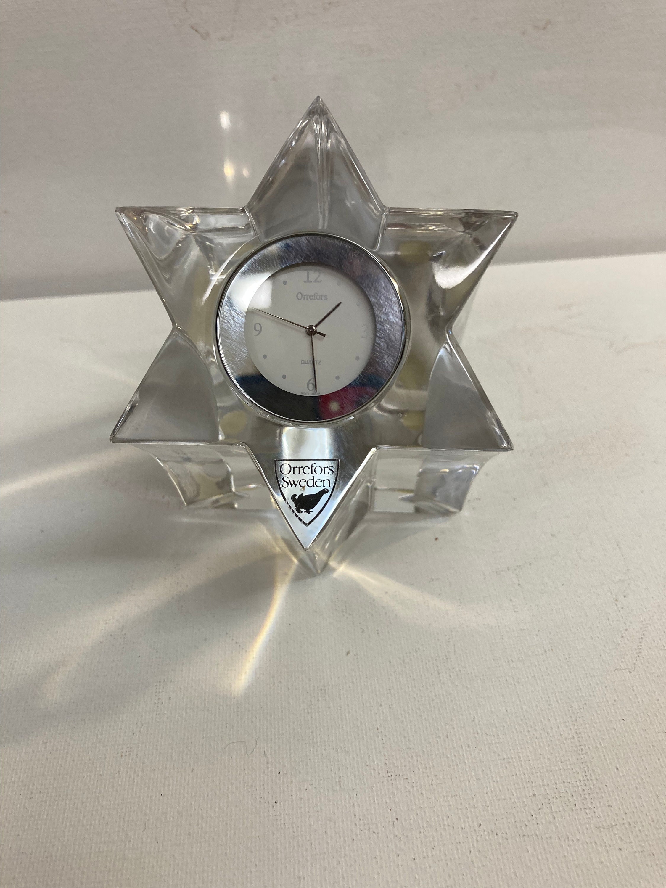 2003 Orrefors Sweden Desk Clock Glass Crystal Table Meteor Star of David