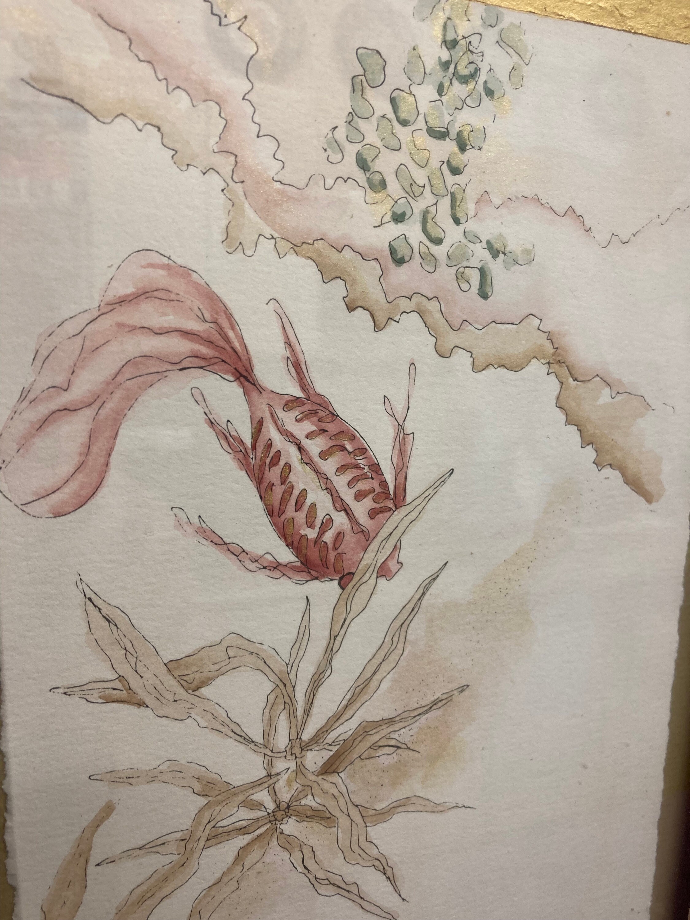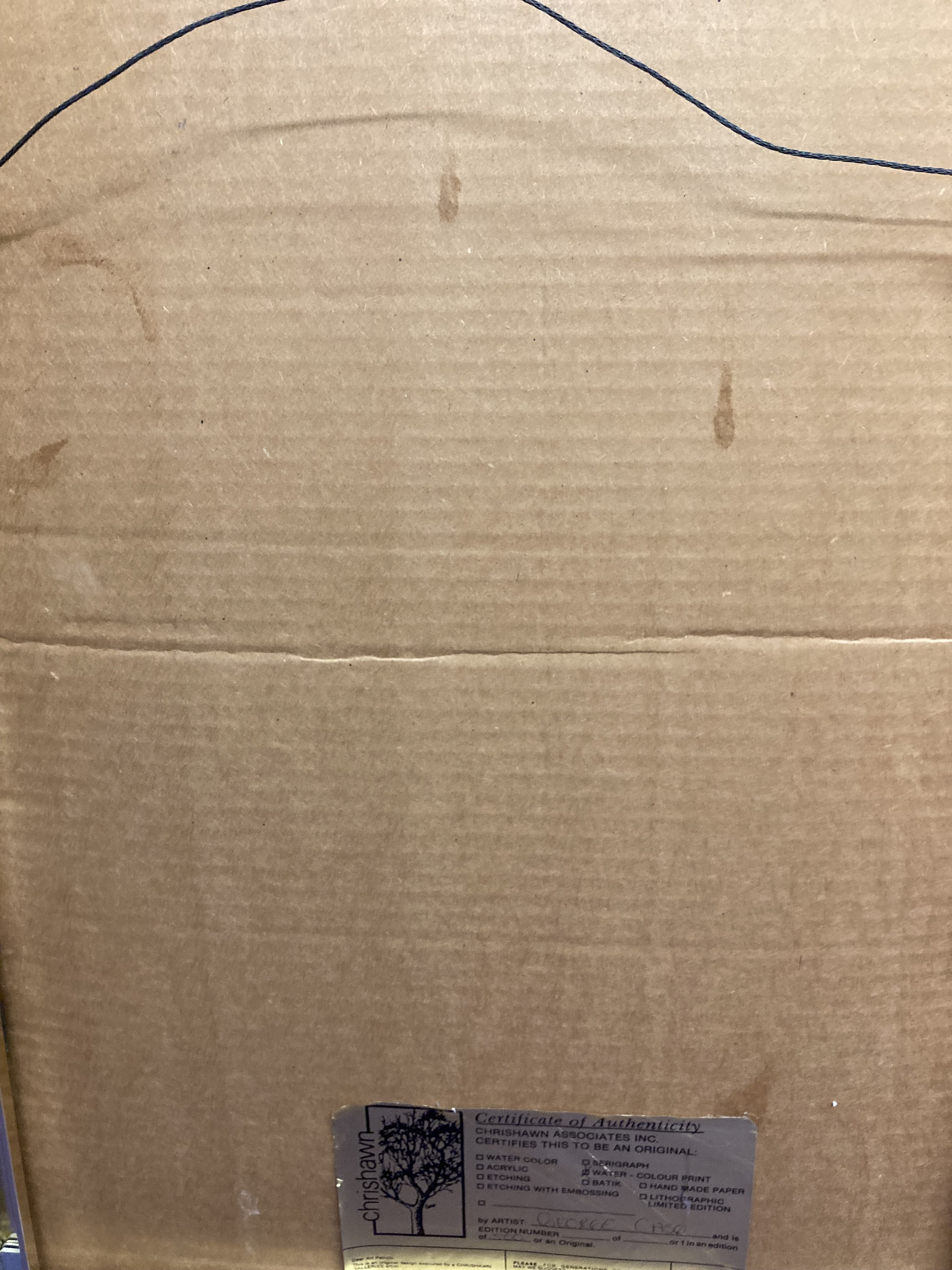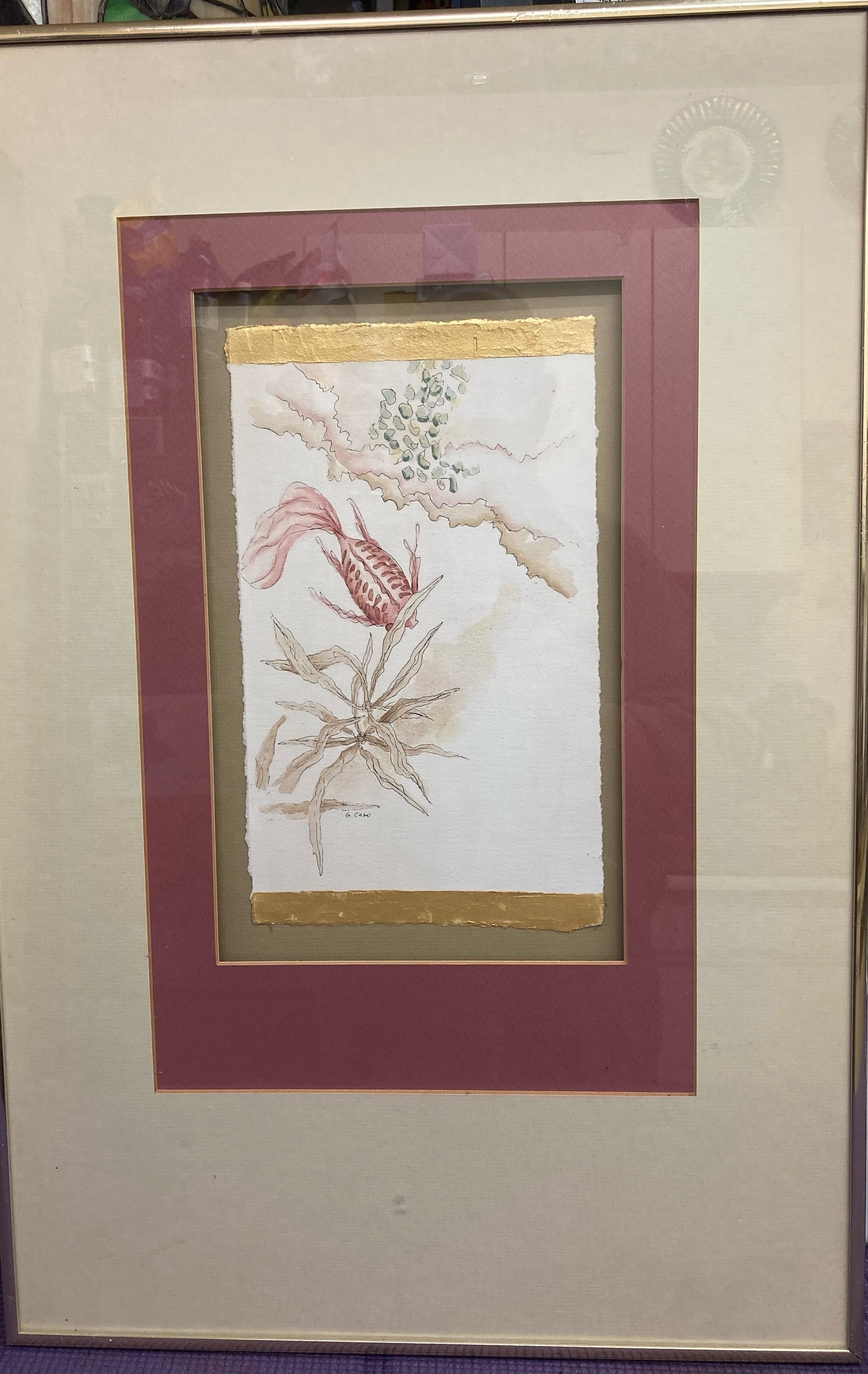 Chrishawn Studios in Florida. Gold Metal Framed and whiteand brown matting under glass.