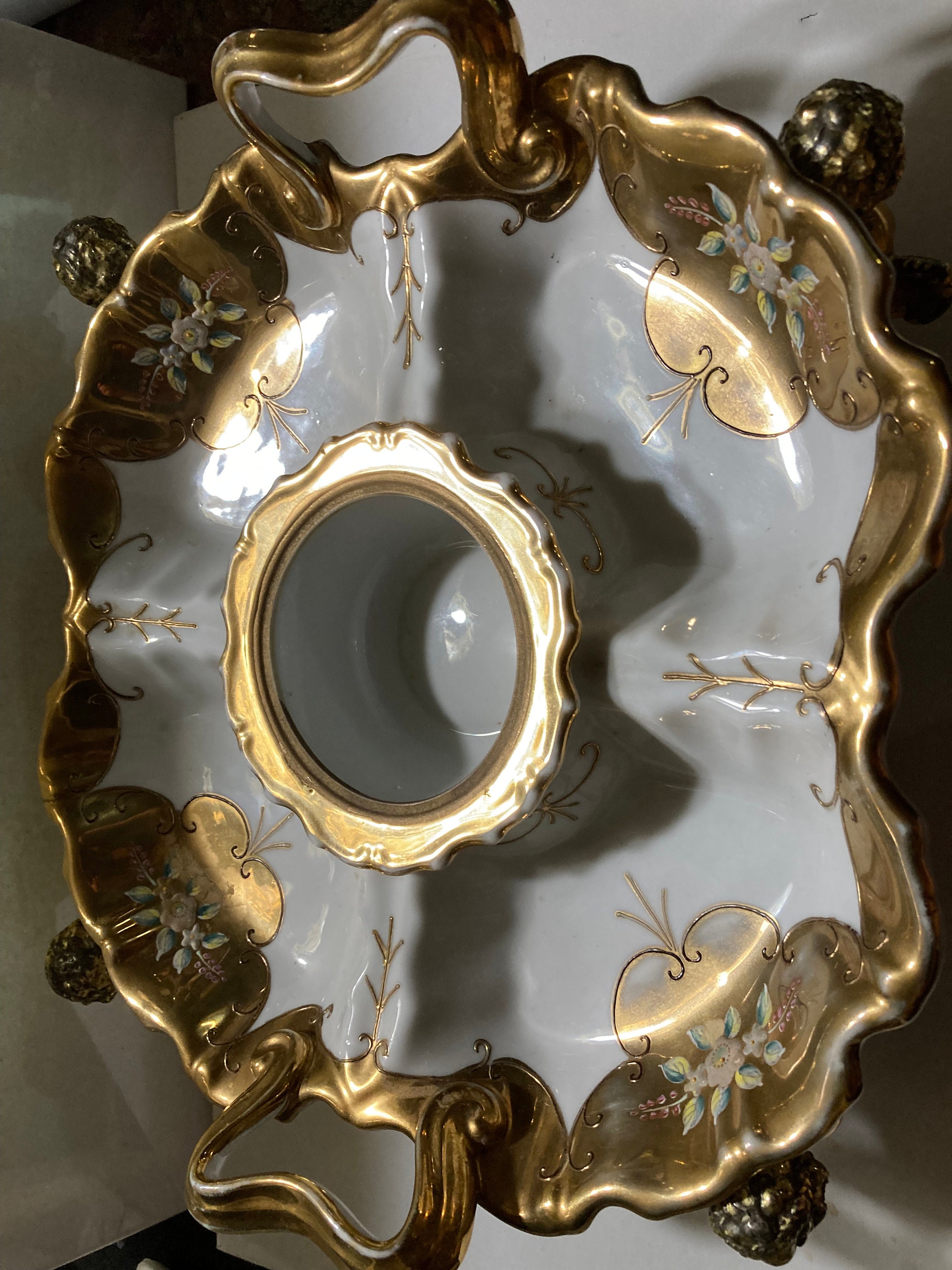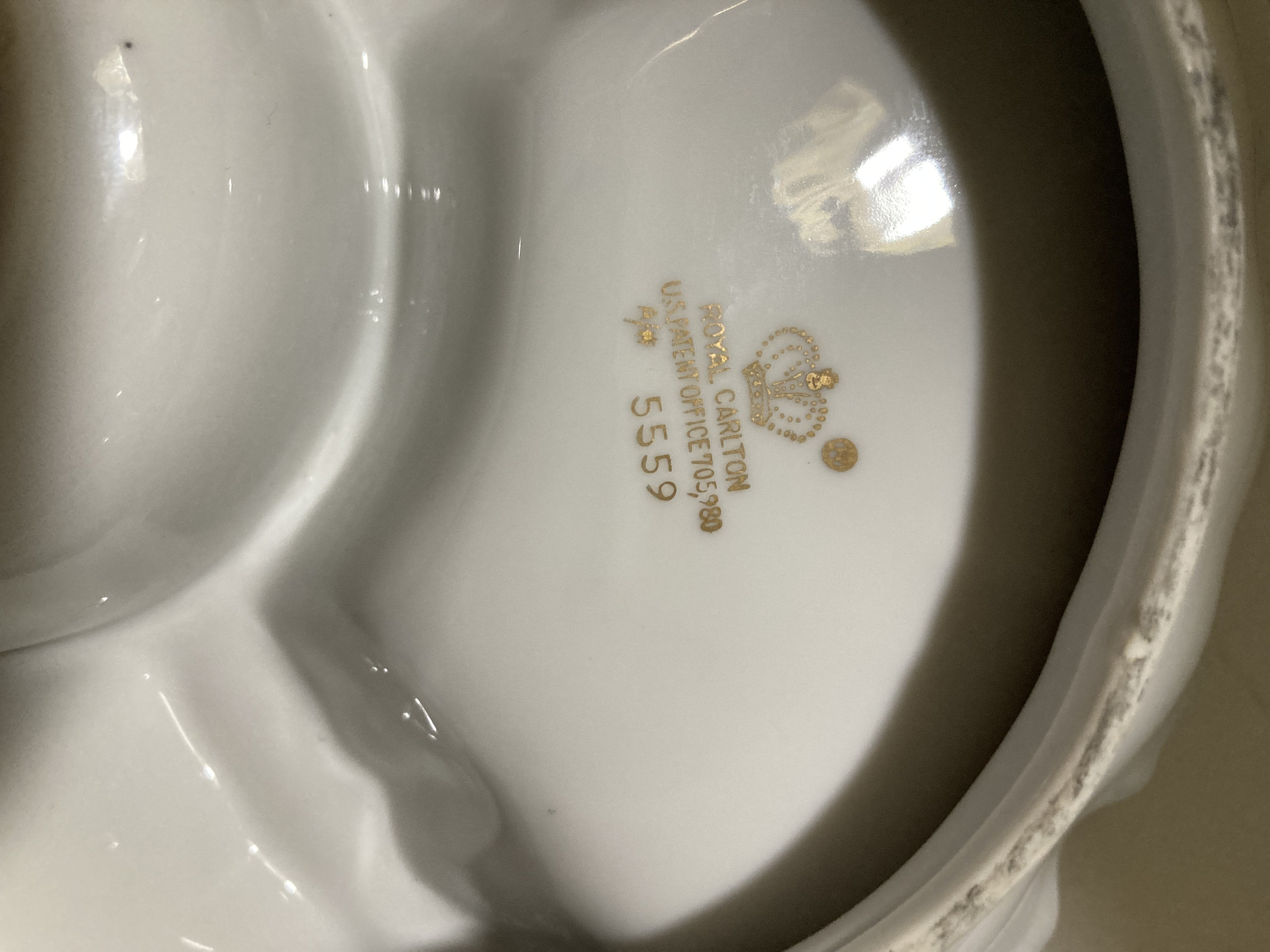 Rare Gold/White Royal Carlton Sering Dish with Metal Stand A / # 5559 U.S. Patent office 705,980
