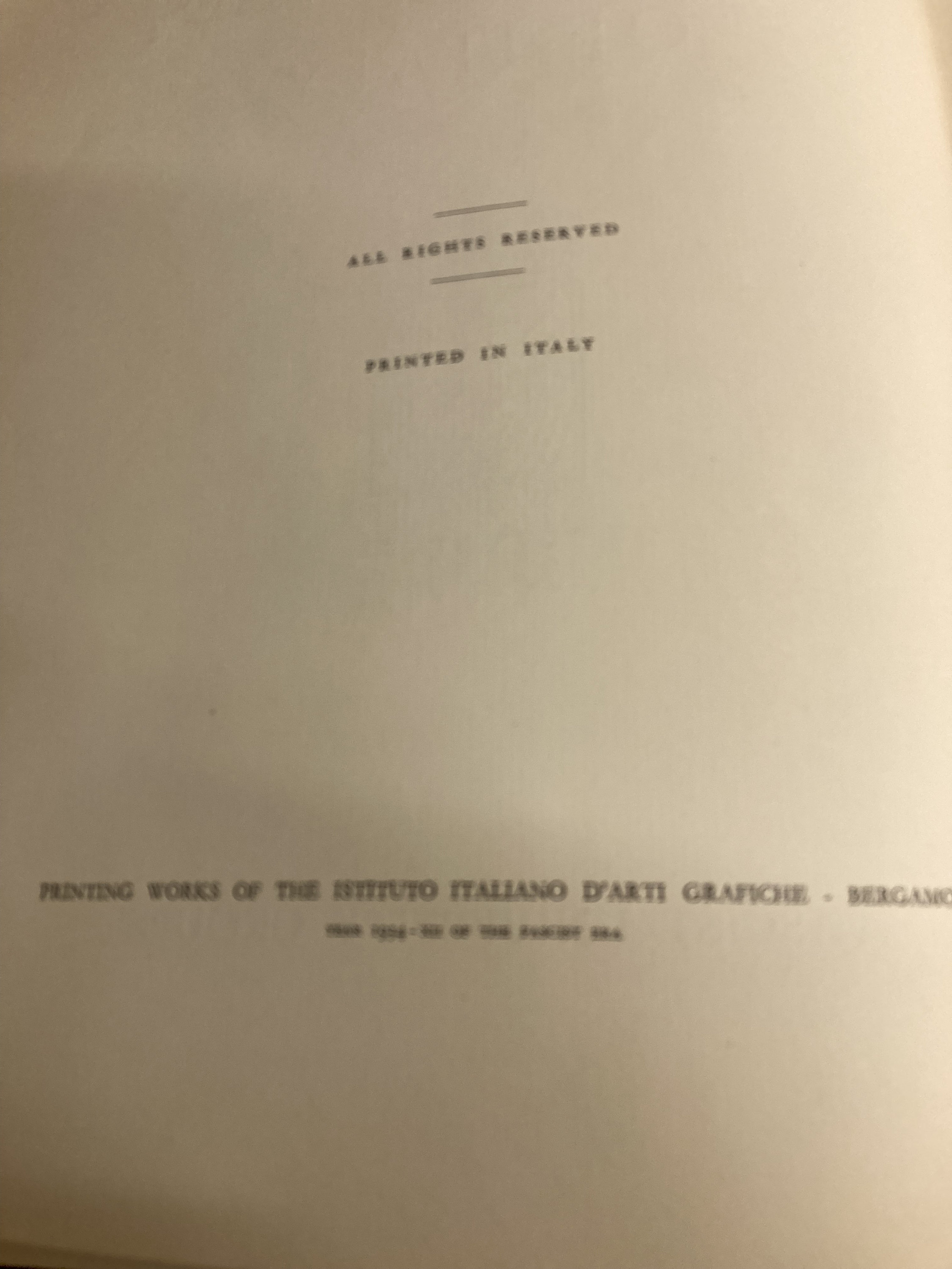 Published Year 1934 - XII of the Fascist Era. Neatly inscribed to the scholar Milton Muelder on ffep, else, Pristine, no wear.