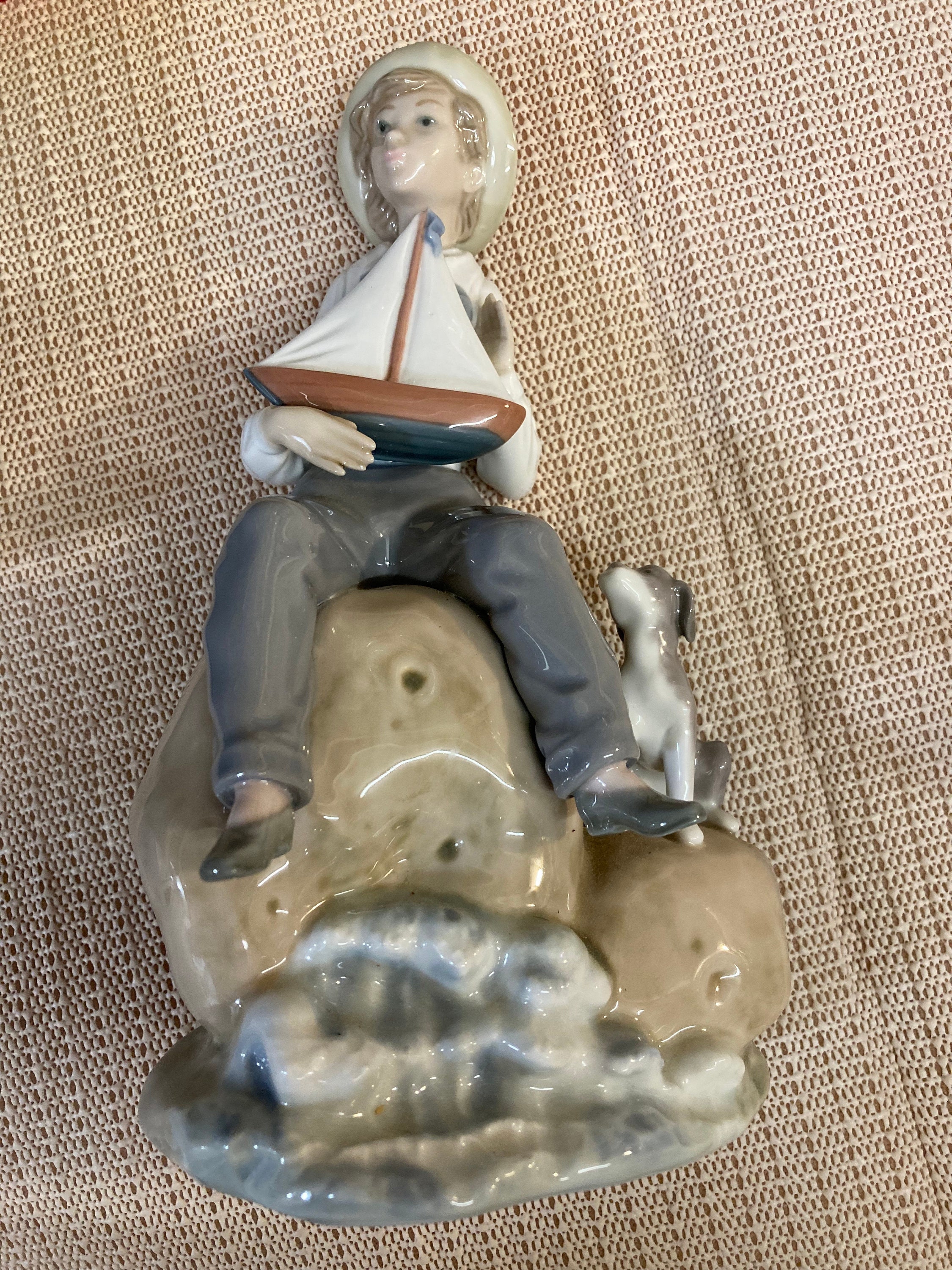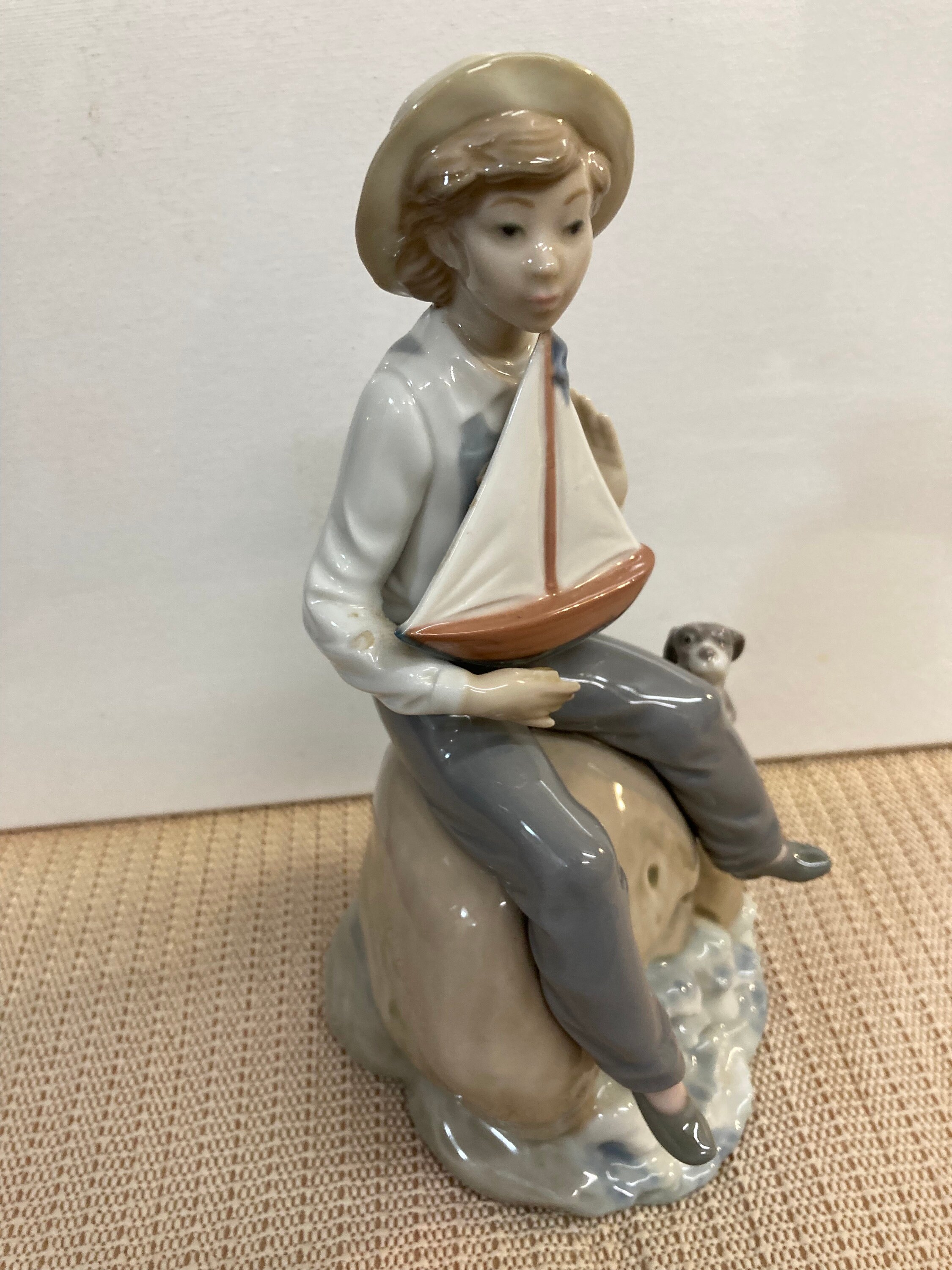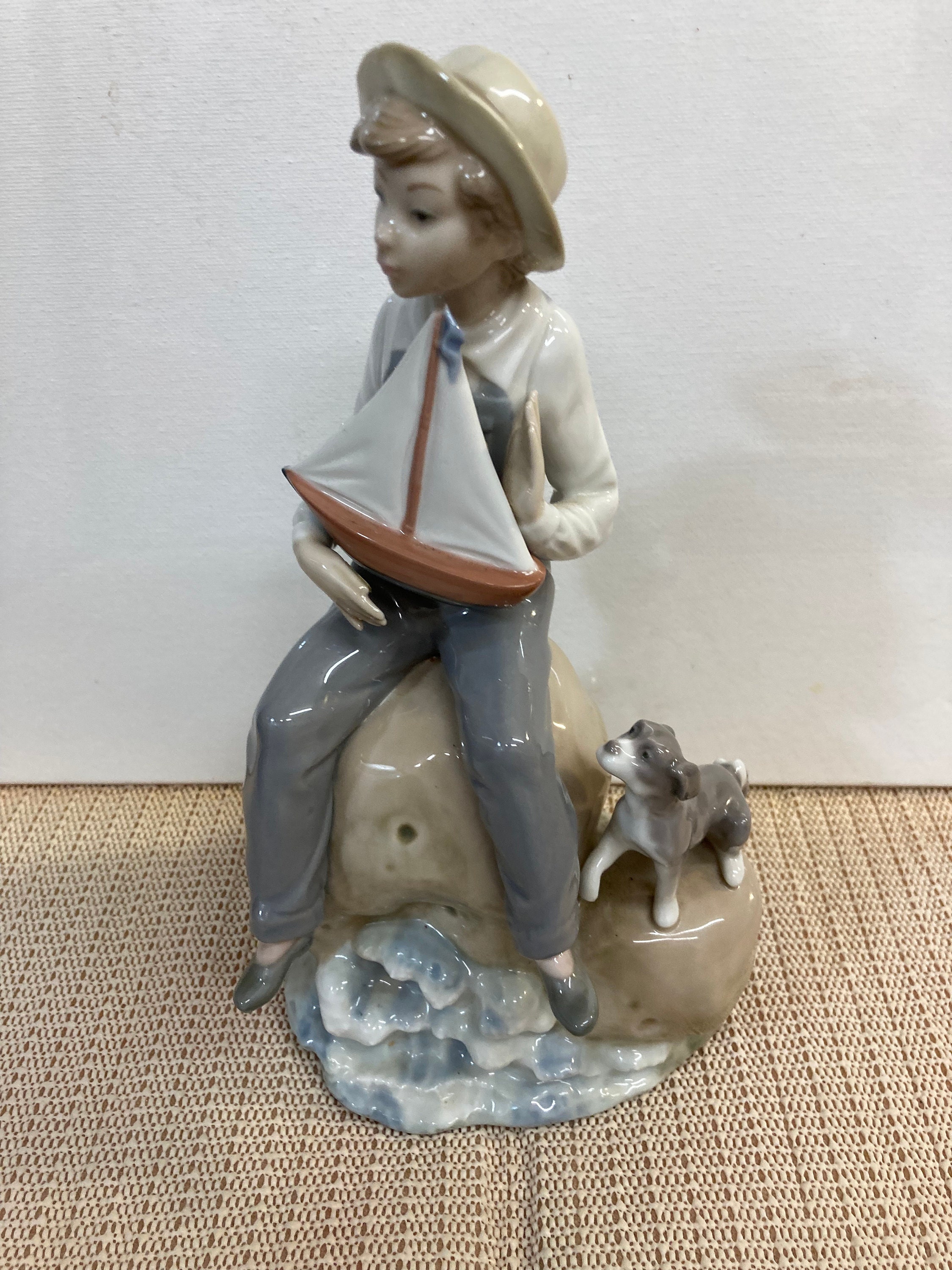 Lladro Sea Fever Boy With Boat & Dog Porcelain Figurine