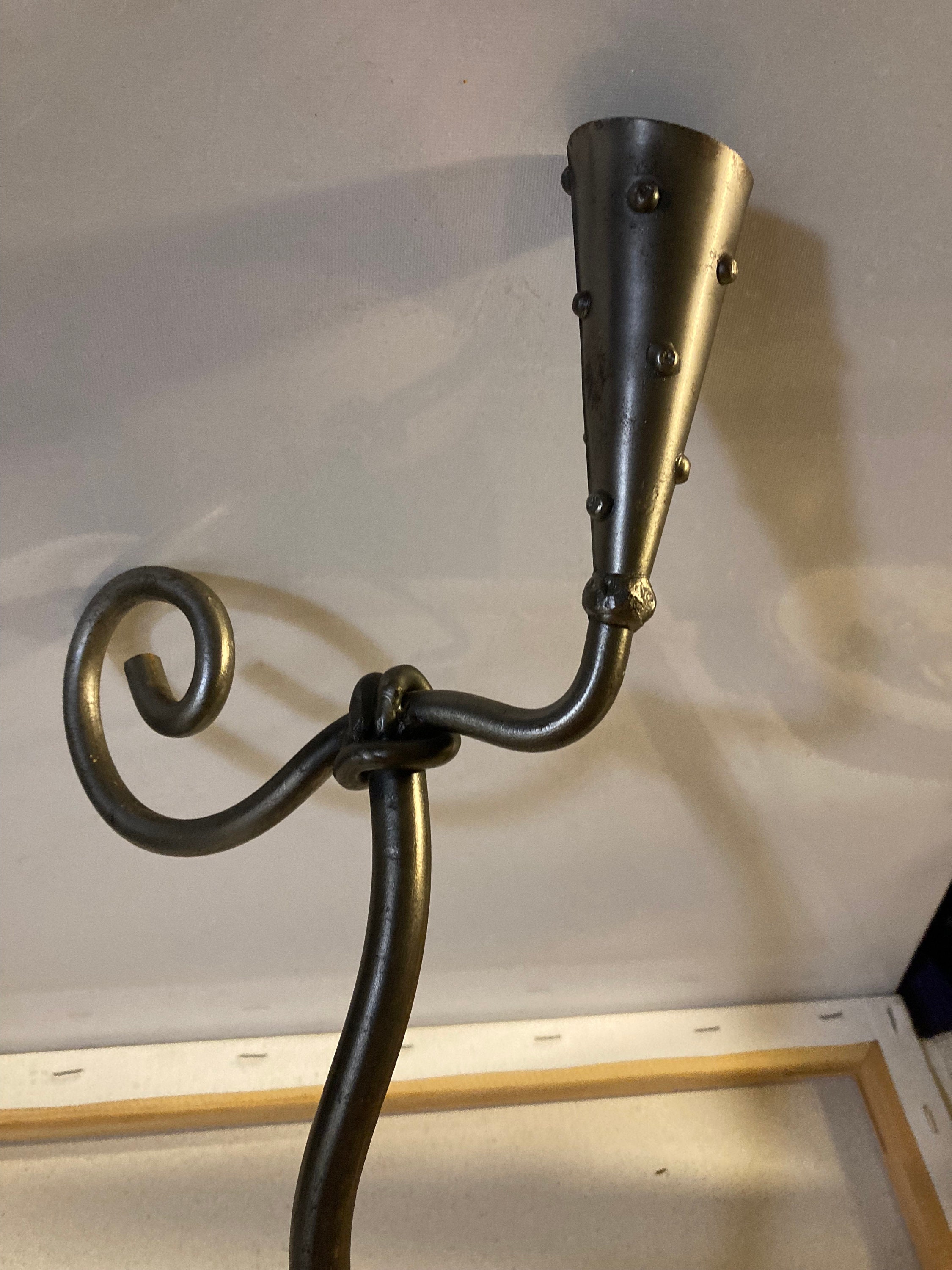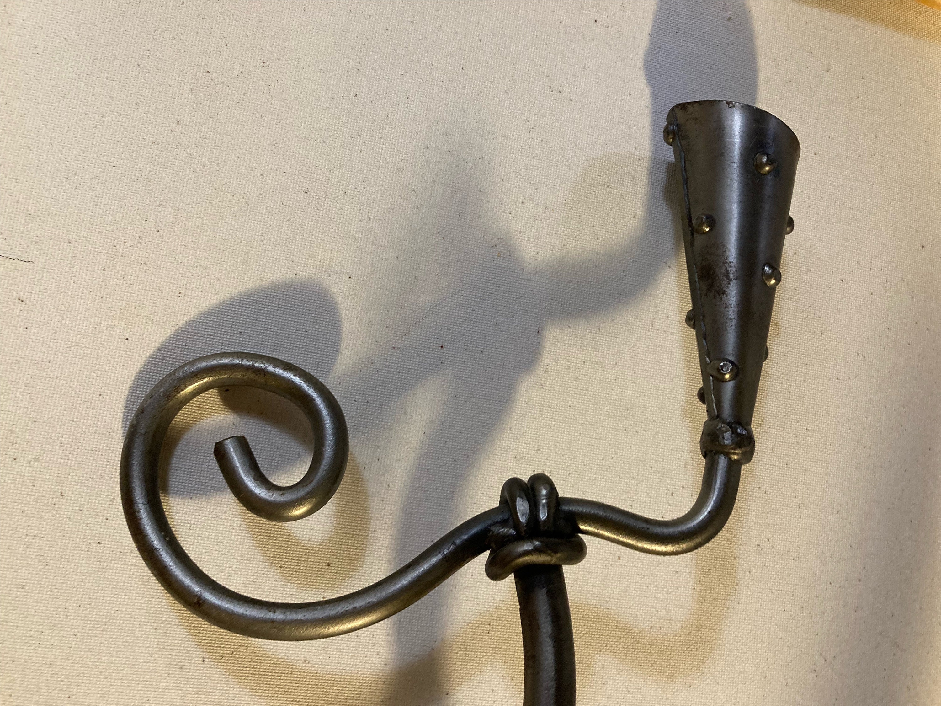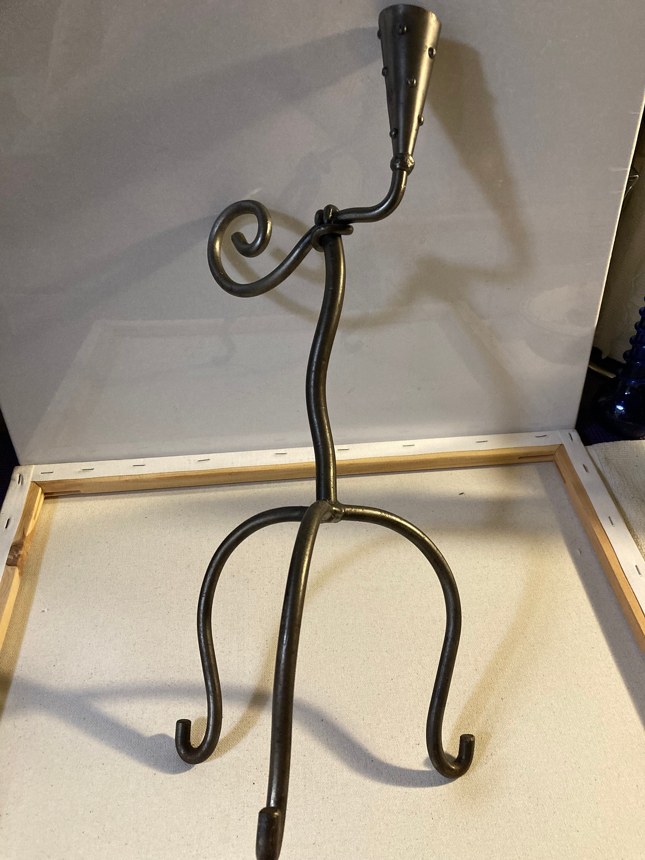 Brutalist Welded Iron CandeholderVintage Handmade Solid Iron SculptureMid Century Modern Brutalist Handmade Wrought Iron Curl 1960s19" tall x 6.5" wide x 6.5" deep