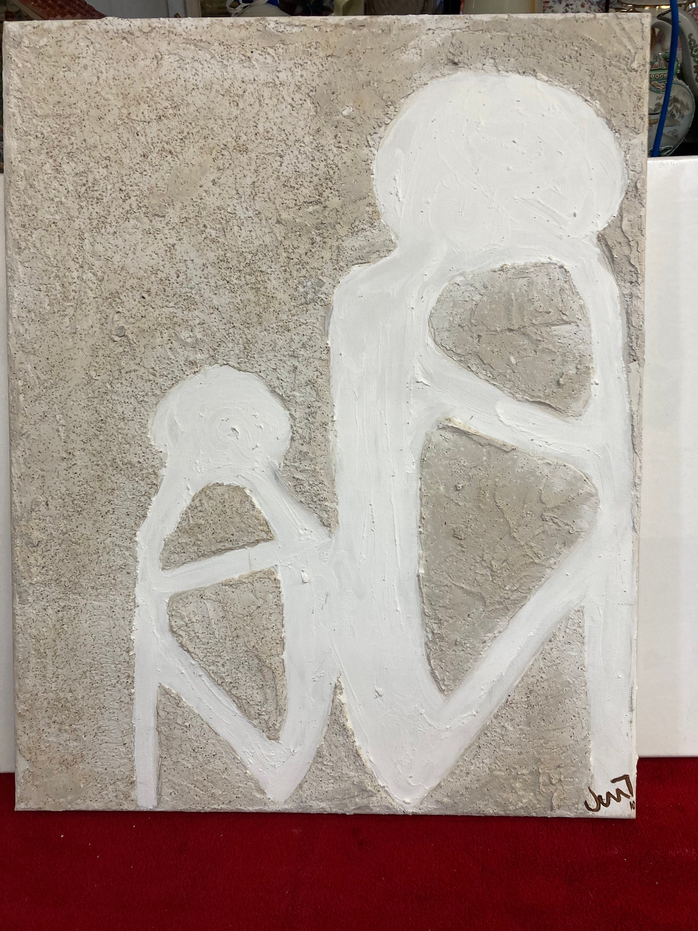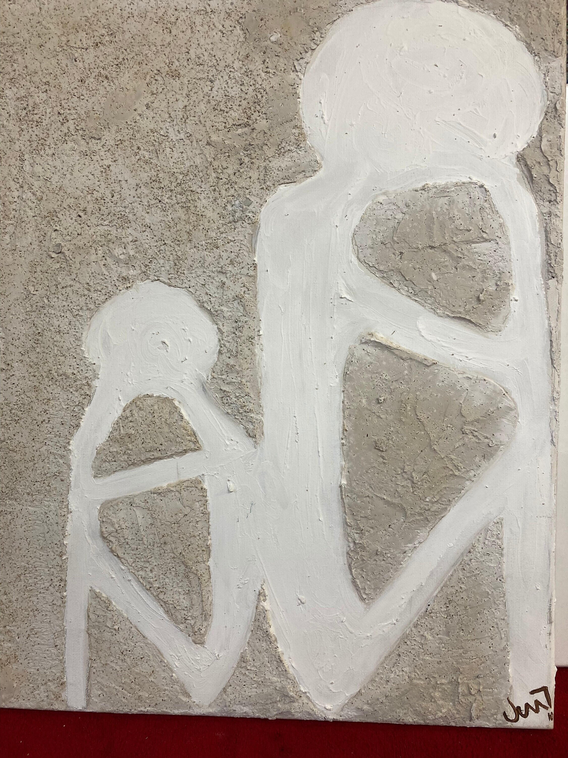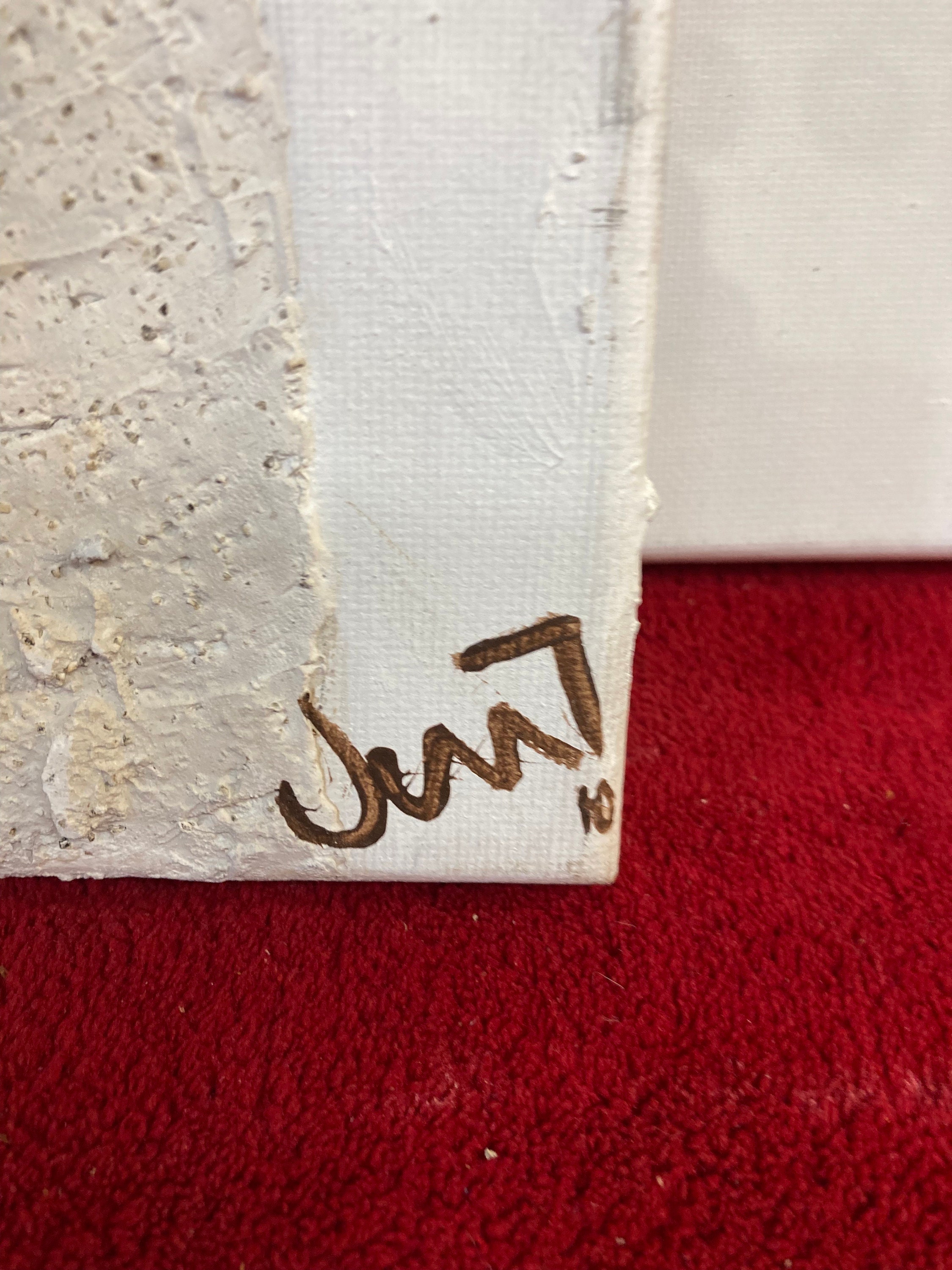 Two Hand Painted Abstract Oil, Graphite & Plaster Line Paintings