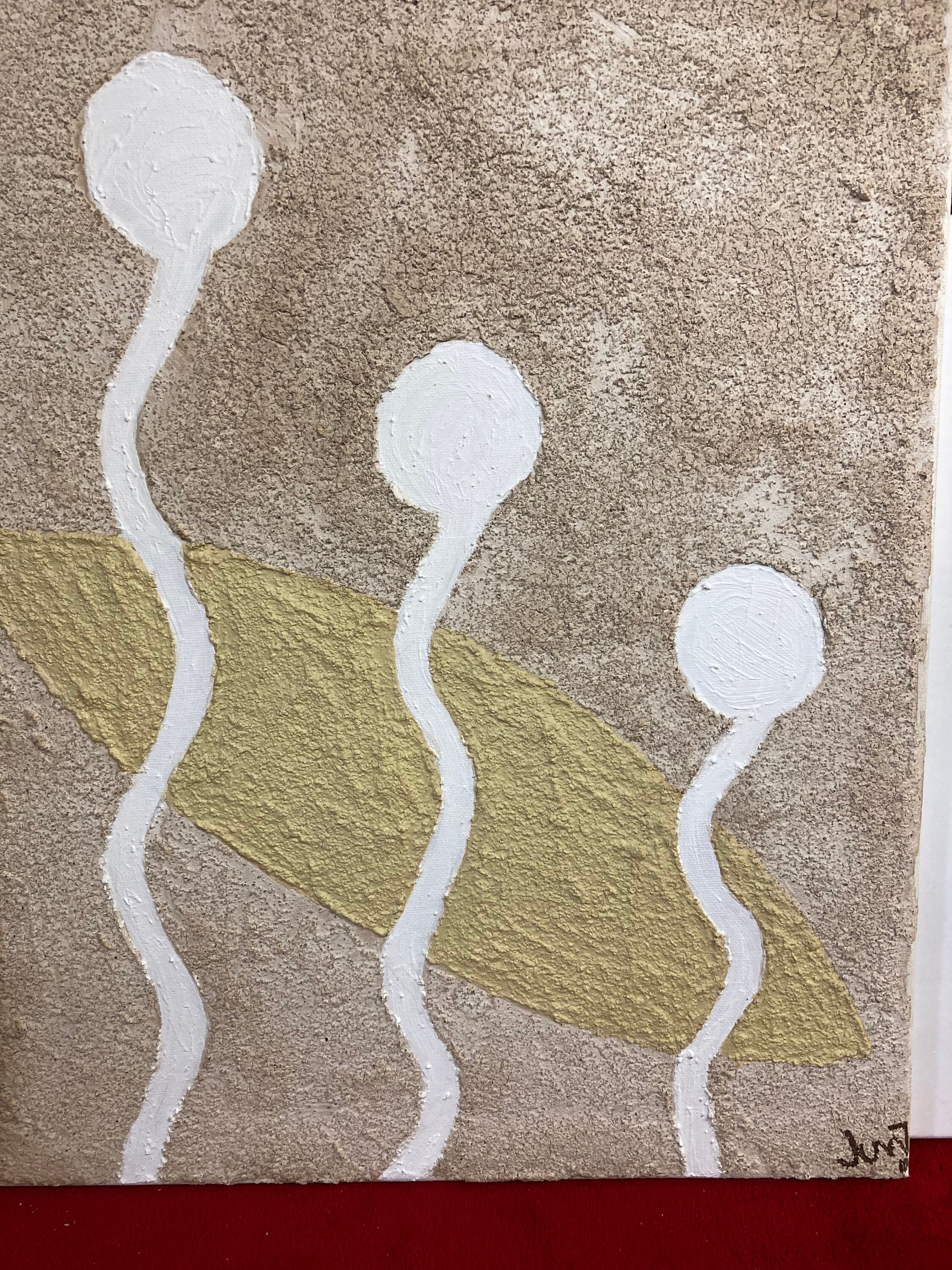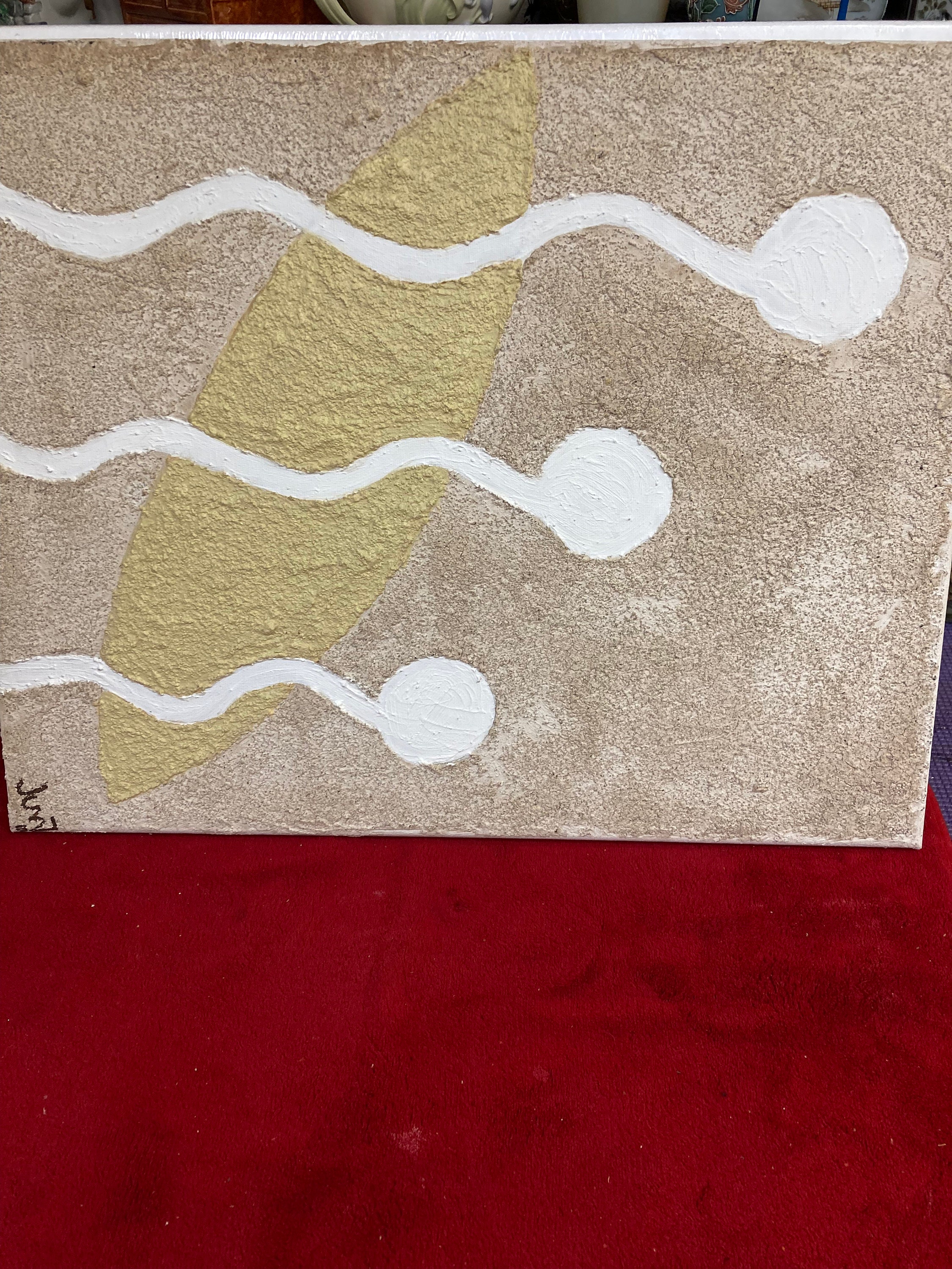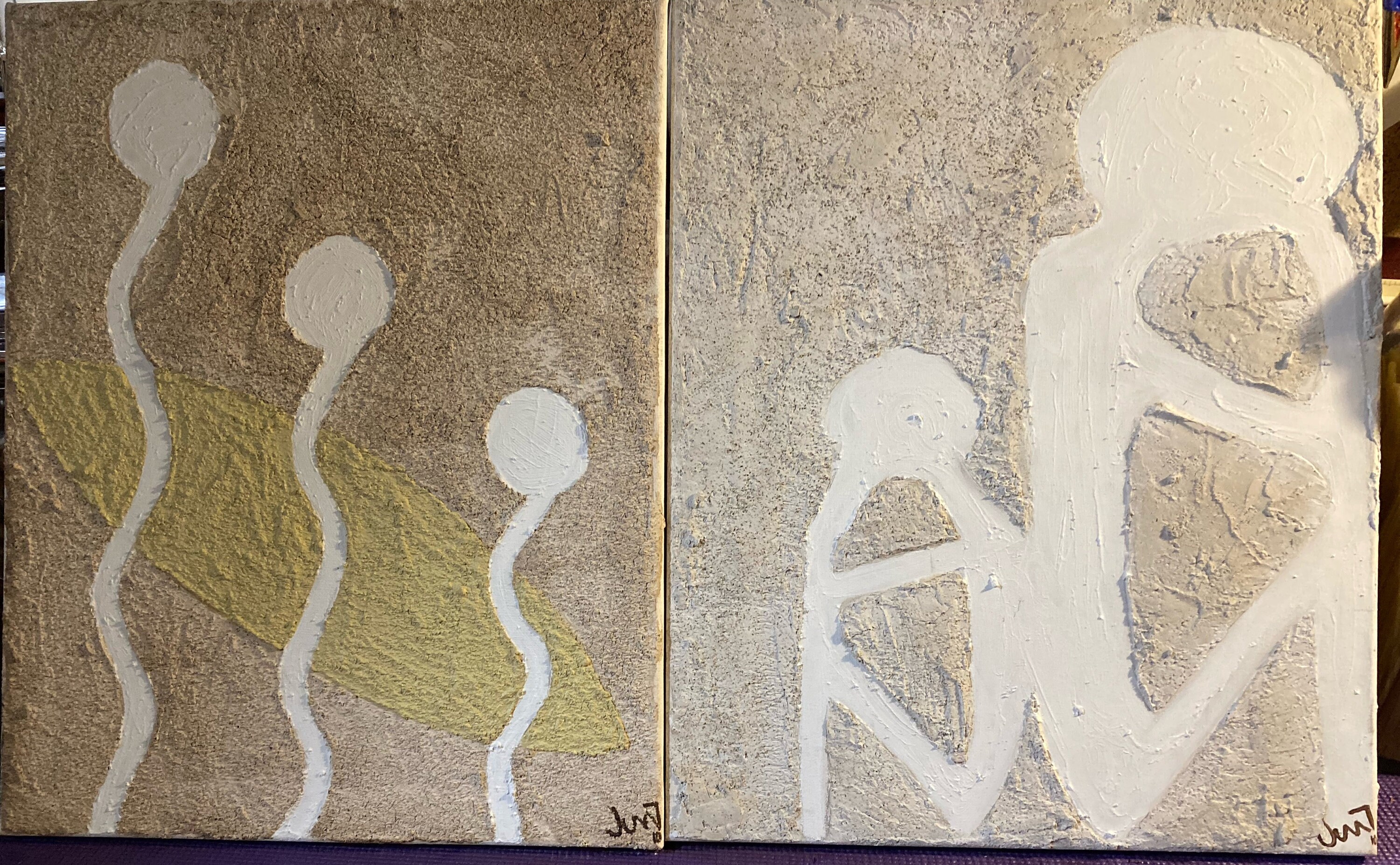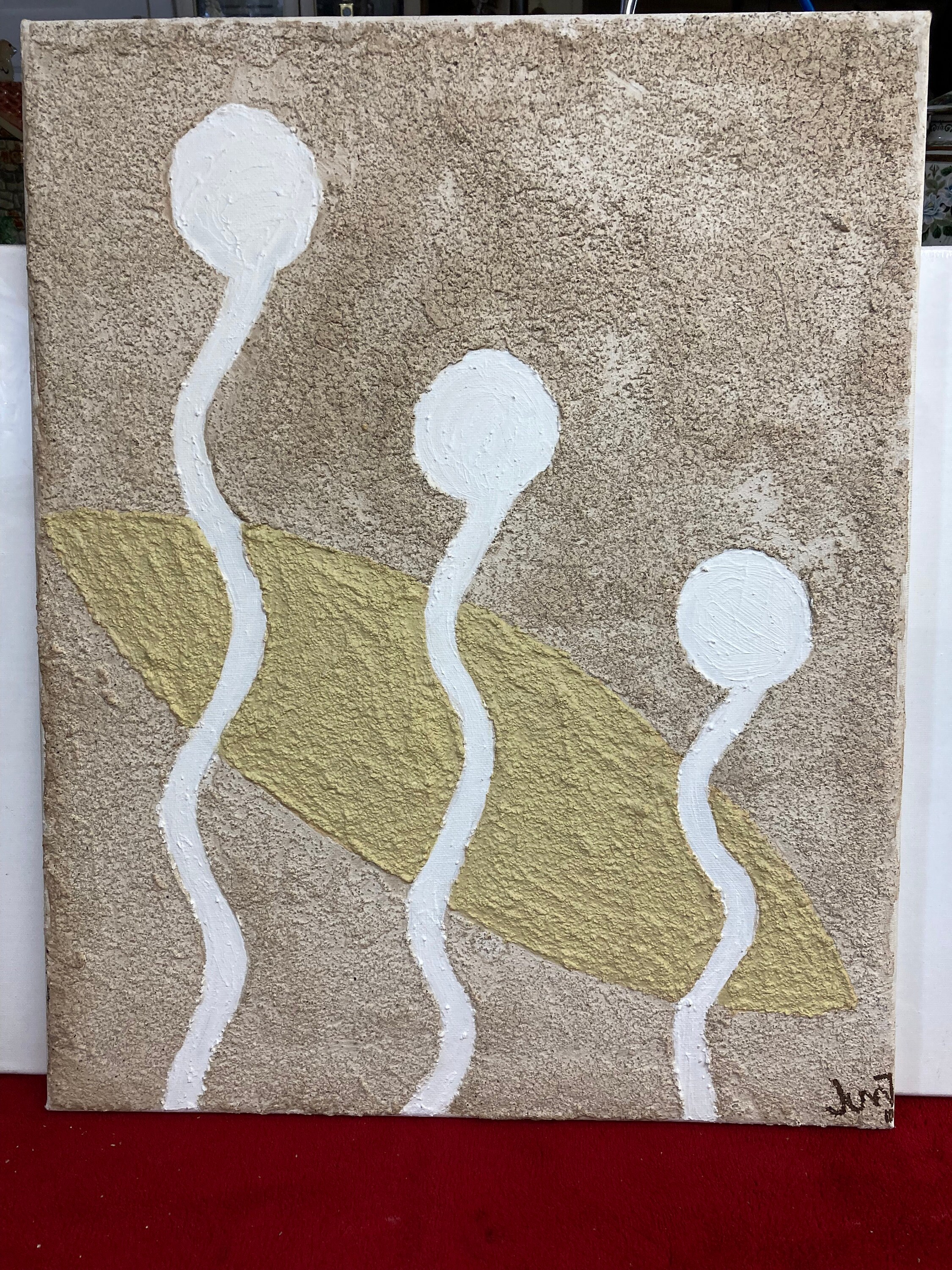 Two Hand Painted Abstract Oil, Graphite & Plaster Line Paintings