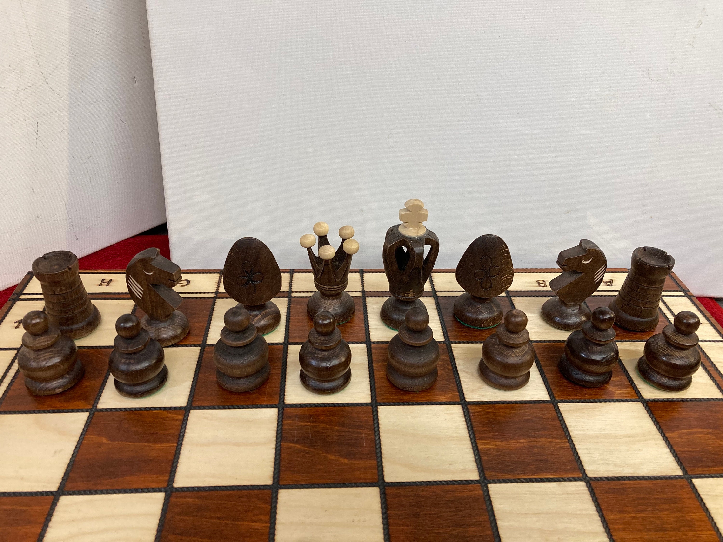 Chessboard size: 18.50" wide x 9" ( closed) tall x 2" deep. Pieces 1. 34" to 3. 3/4"
