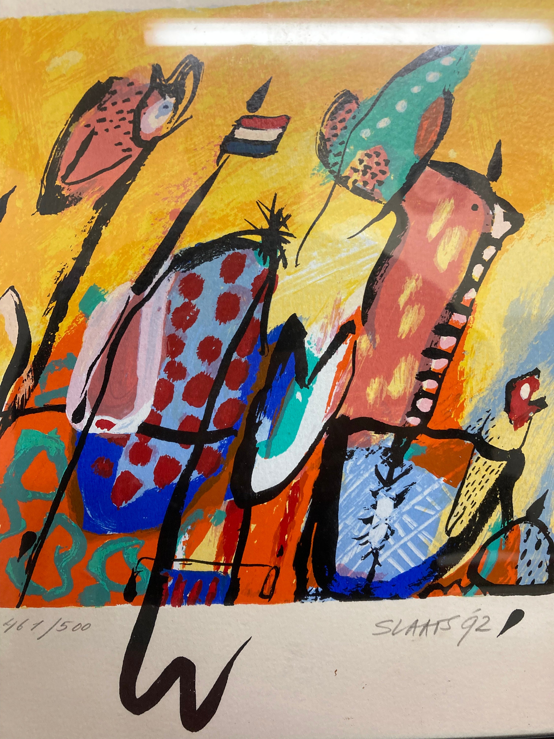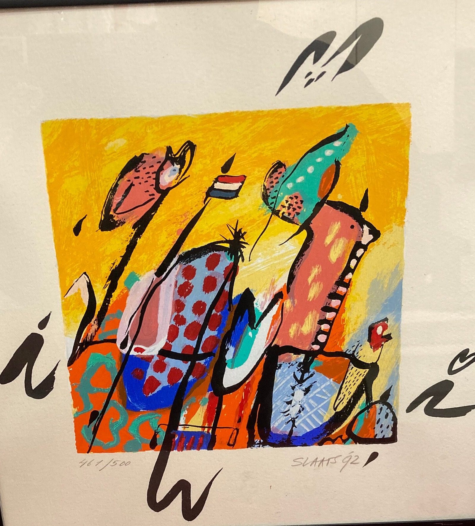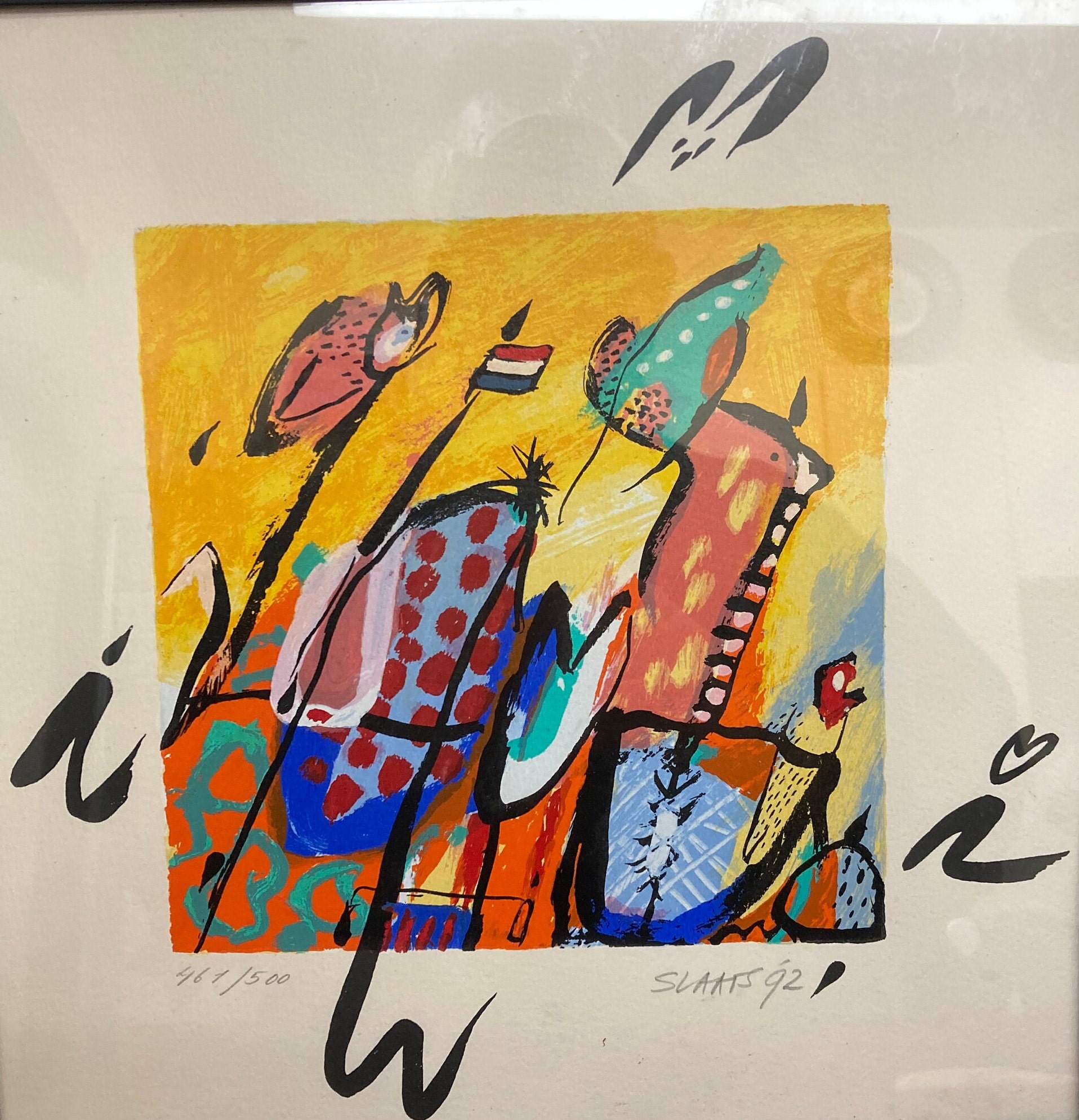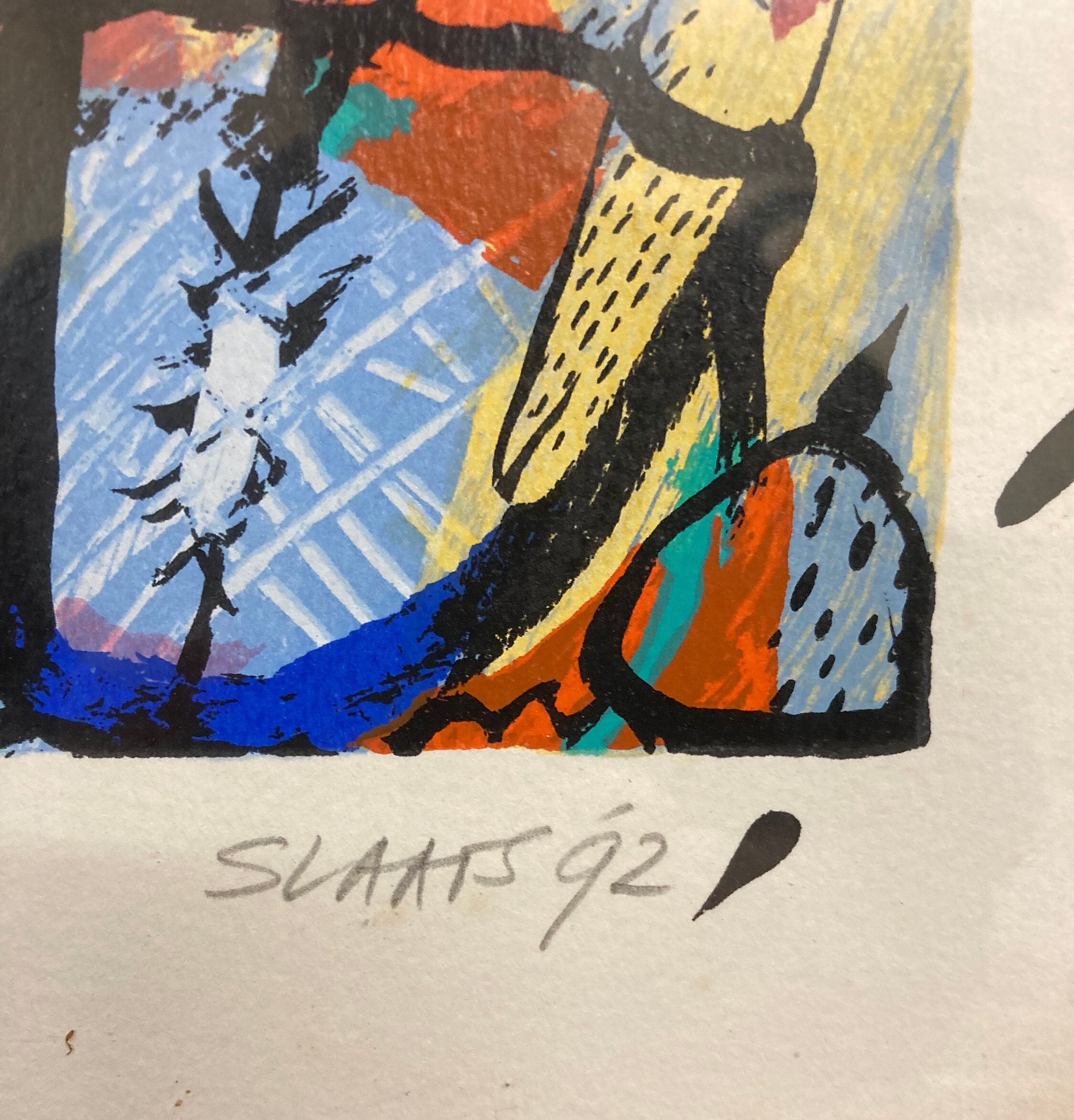 Abstract PaintingSigned and Numbered Painting by Slatts '92Signed : Slatts' 92Limited .Numbered :461 /500Material: PaperNOT Framed Measurement: 12 x 12 x 1