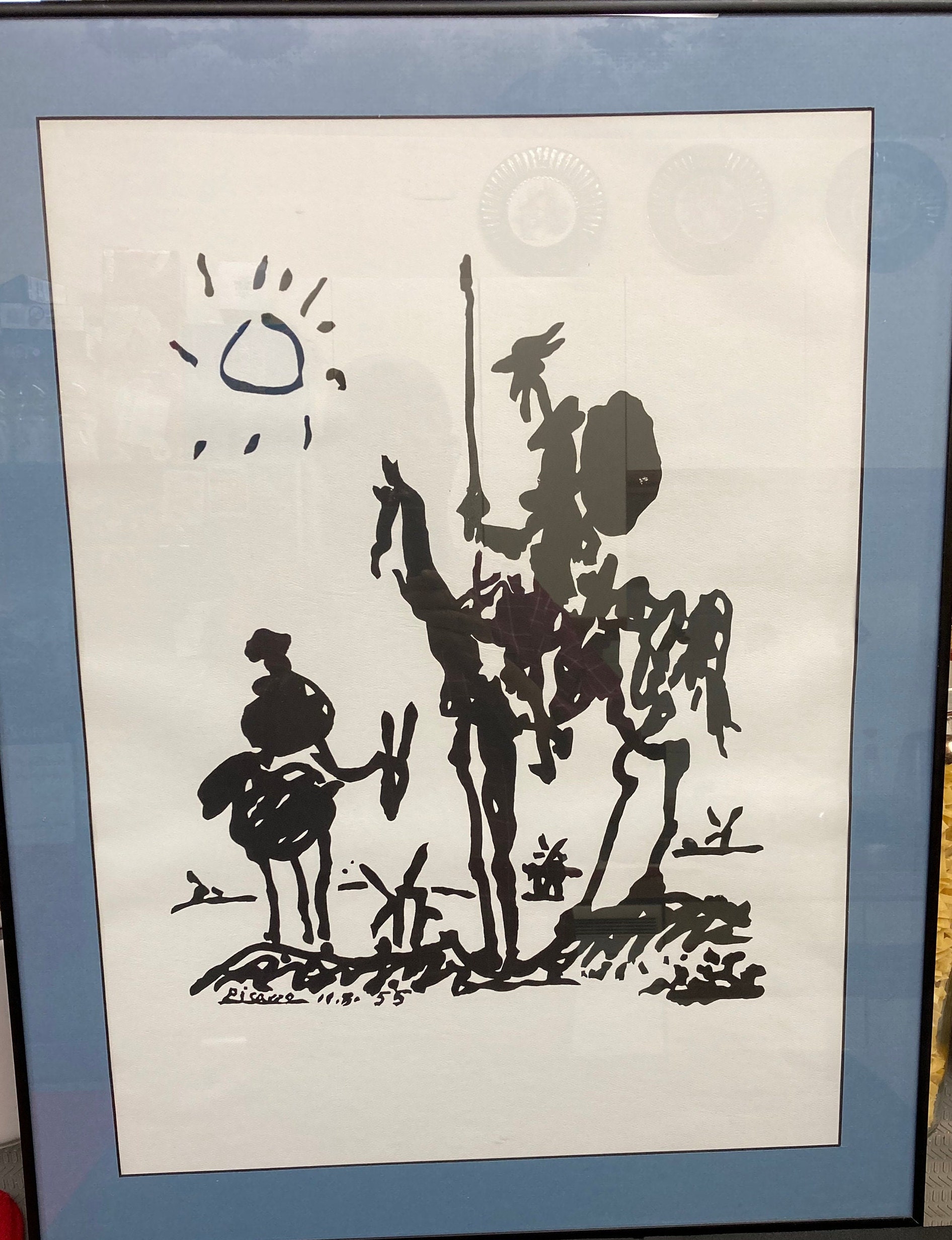 Vintage Print of " Don Quixote De La Mancha " By Pablo Picasso.The paper measure about 23 inches length X 17 inches width . The metal frame measure about 27 inches length X 21 inches Width .Excellent vintage condition