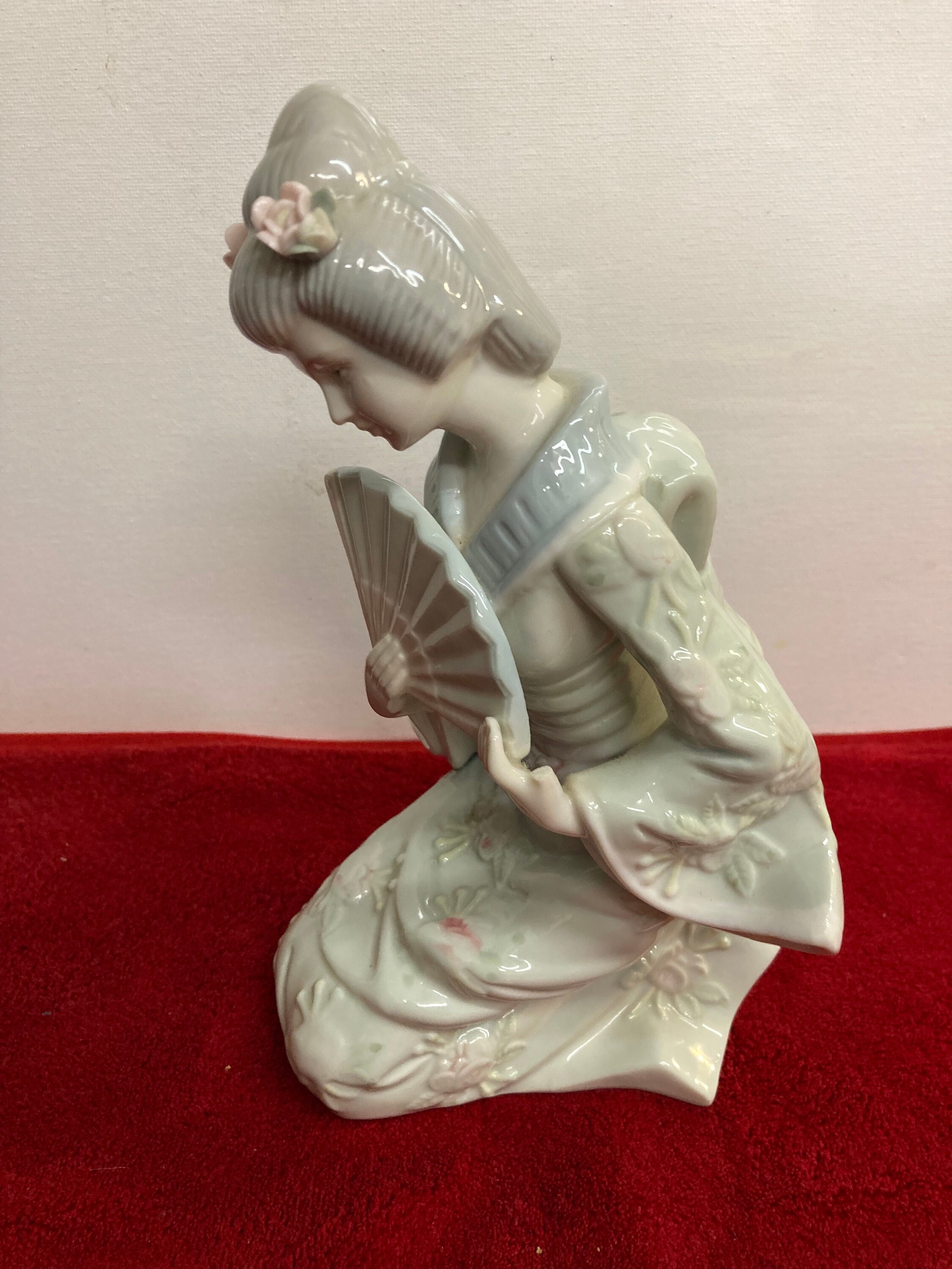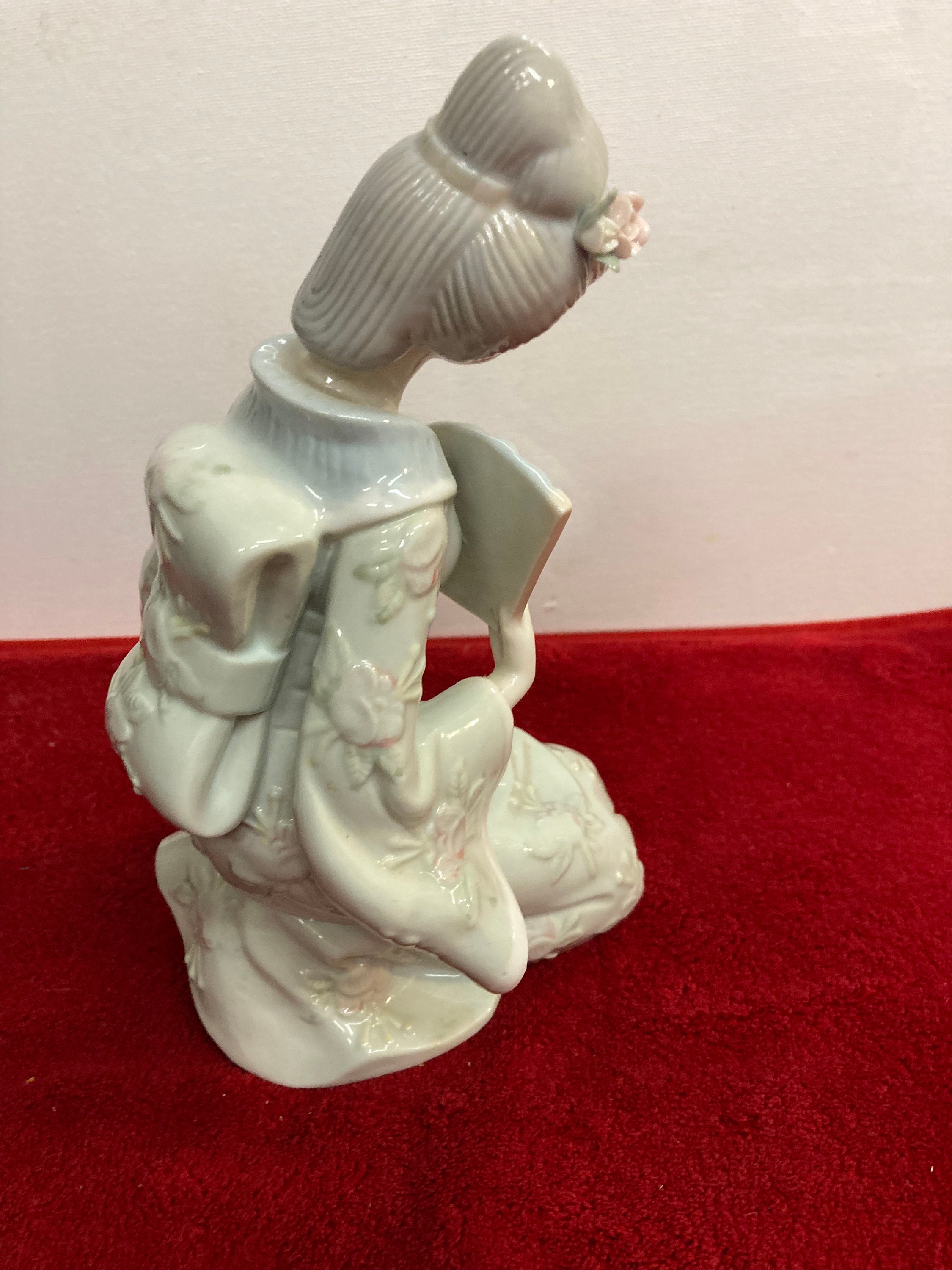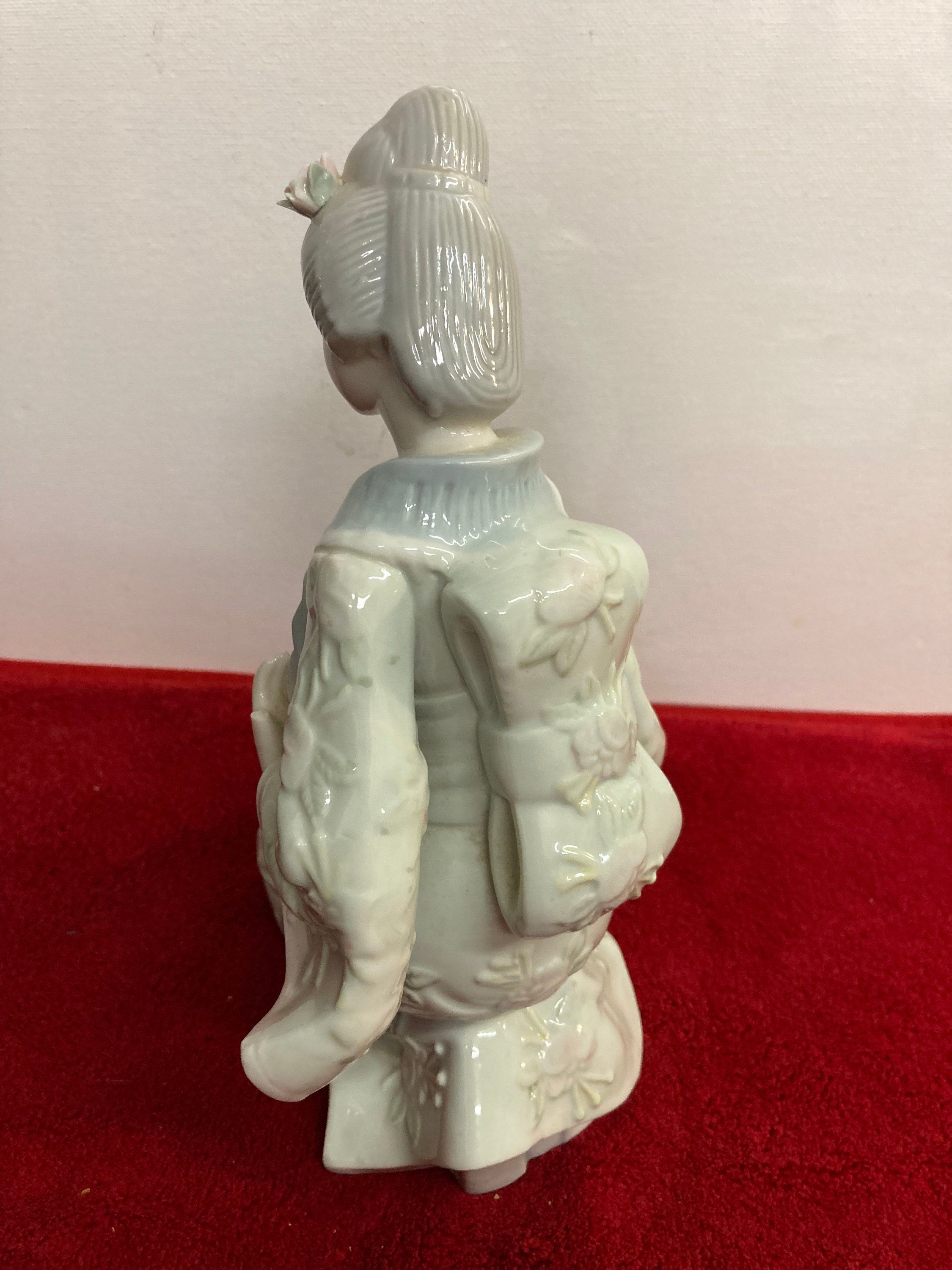 Royal Crown JAPANESE GEISHA GIRL Arnart Imports Inc.VINTAGE PORCELAIN An exquisite porcelain figurine. Excellent clean condition Light jade green & gray. 8.5" tall x 6" wide. 5" deep