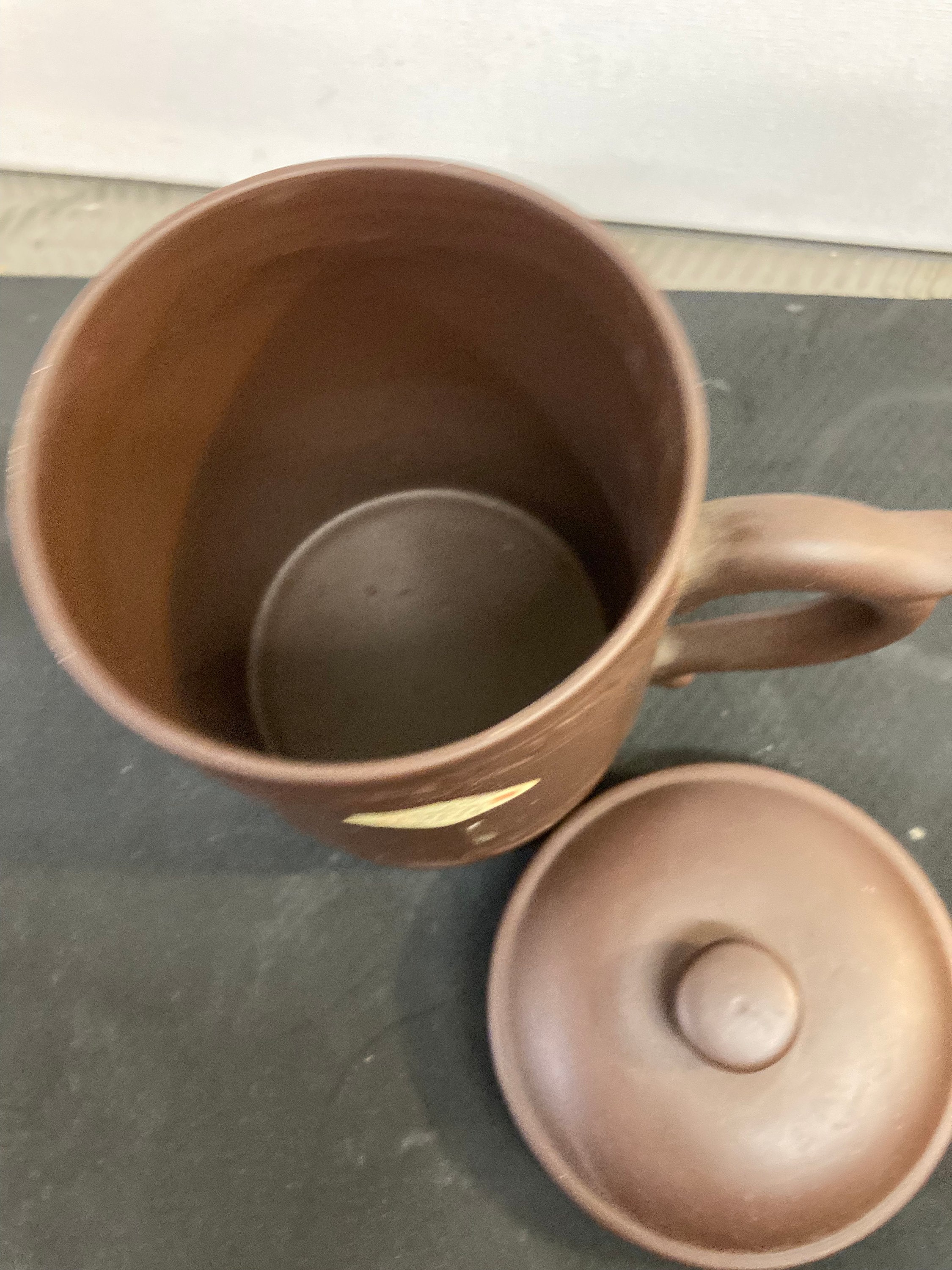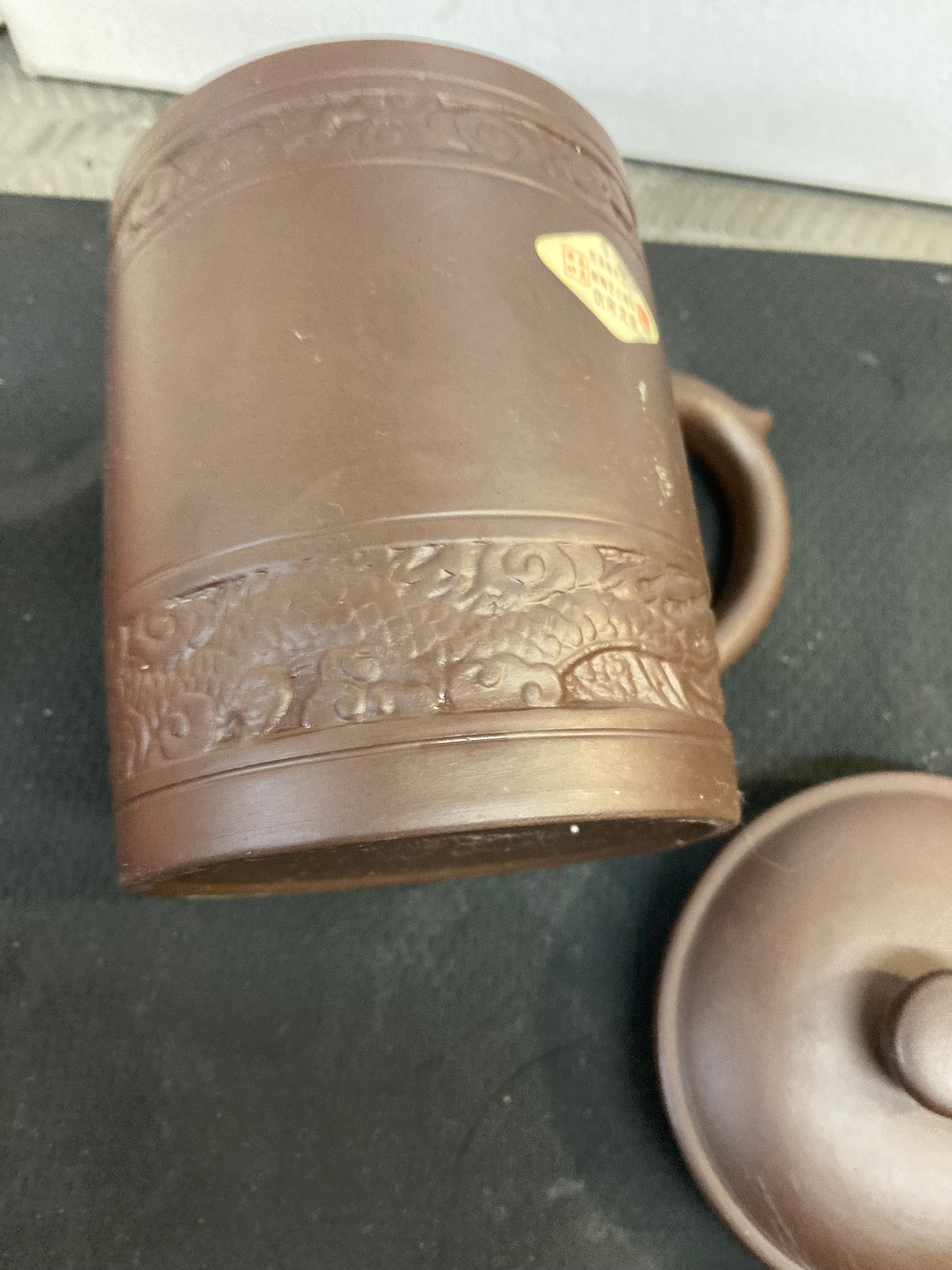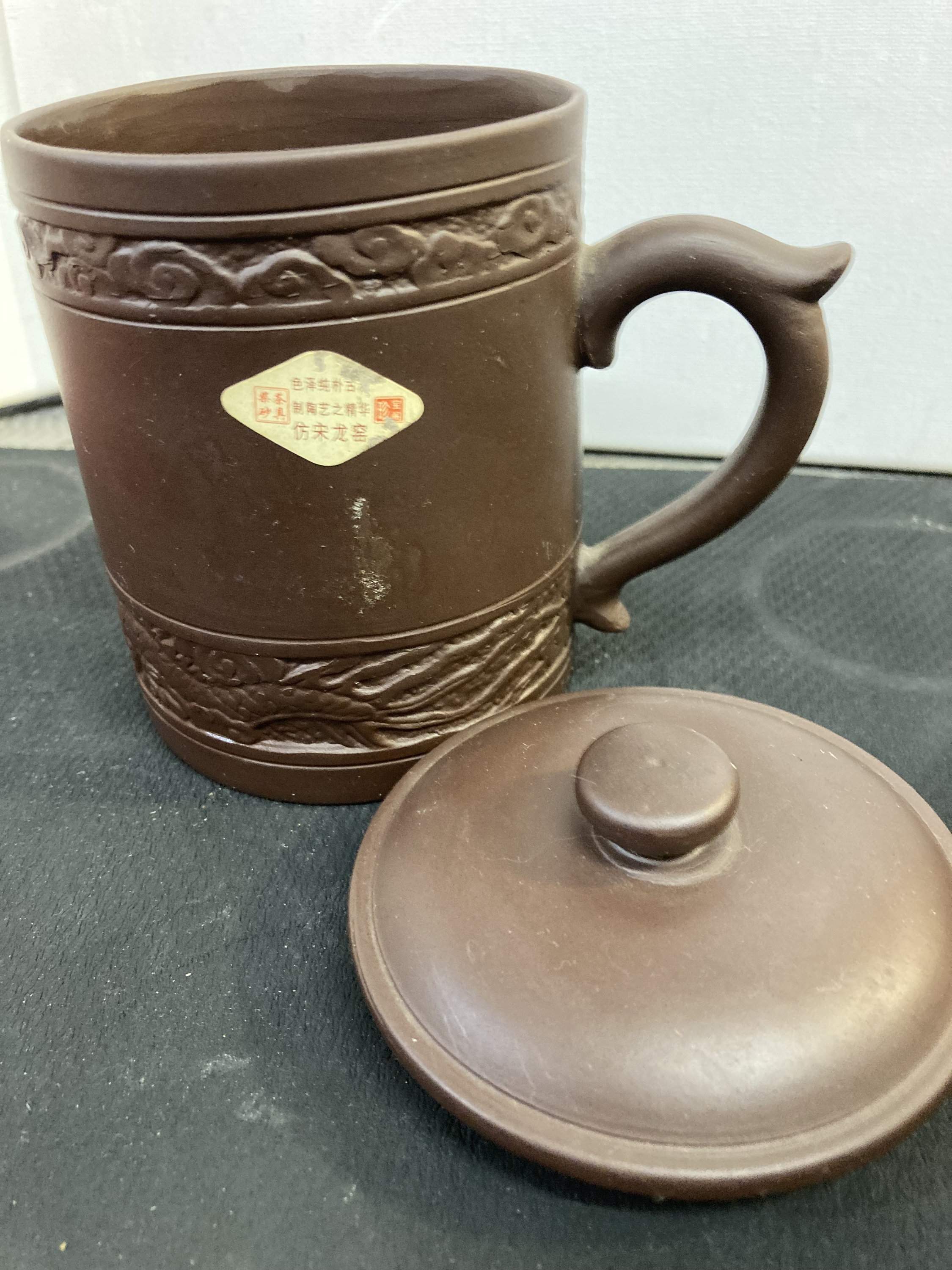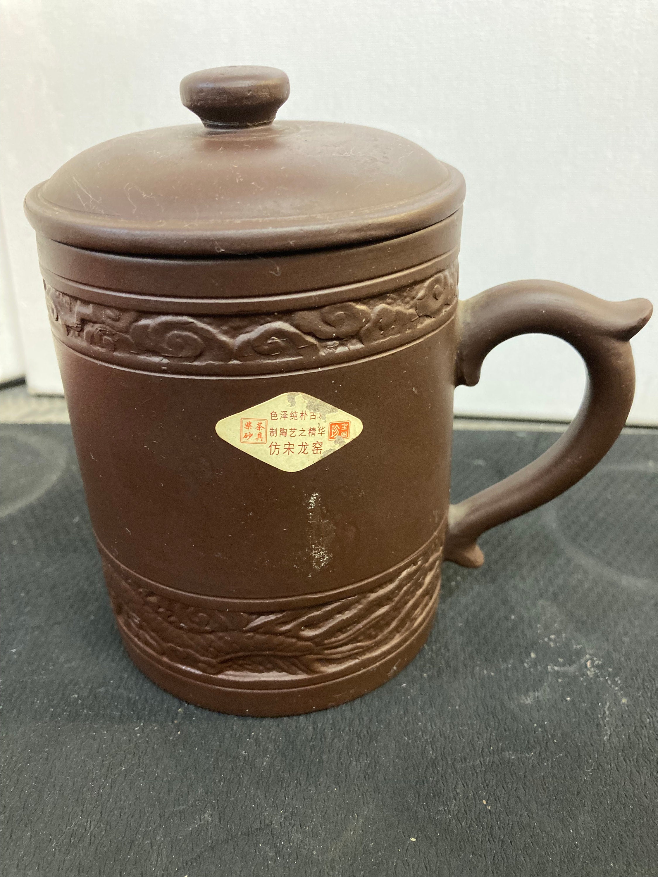 Chinese Clay Tea Mug - Embossed Dragon - Dark Brown